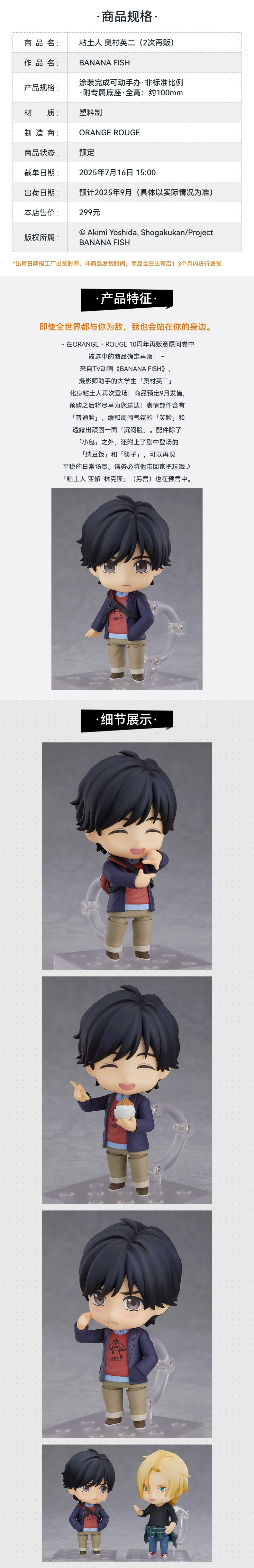 【GSC积分兑换】粘土人 奥村英二 BANANA FISH