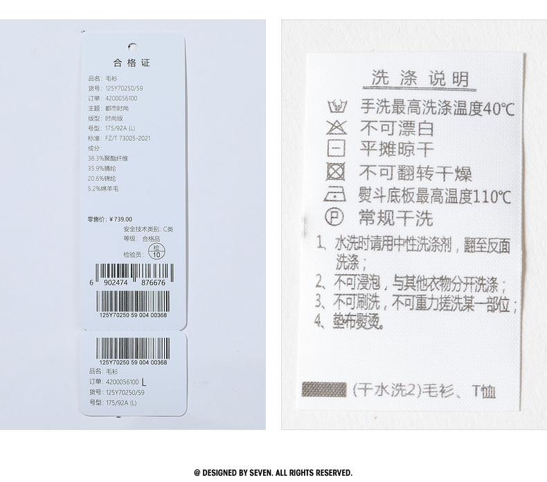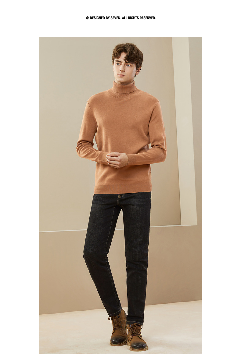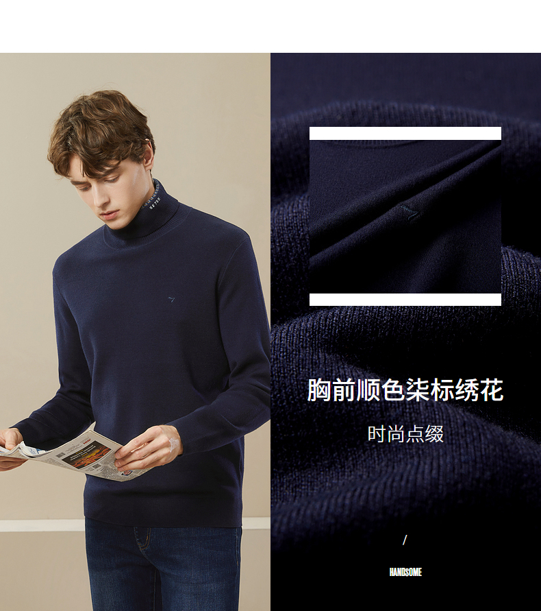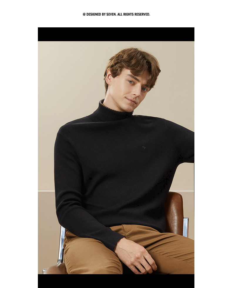 【可机洗针织衫】柒牌男装高领毛衣秋冬新款含羊毛防静电保暖毛衫 125Y70250