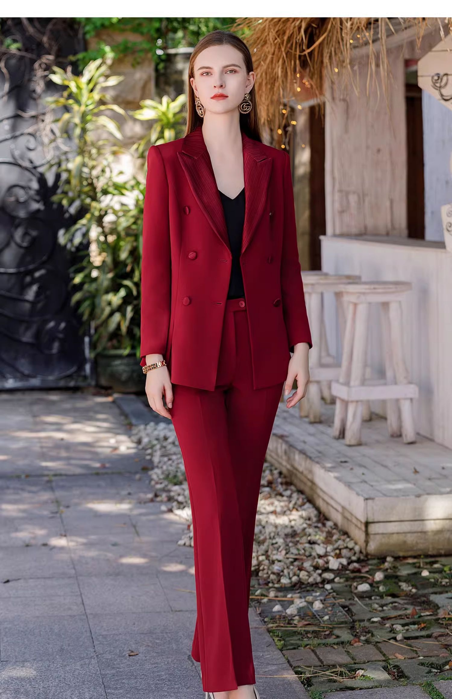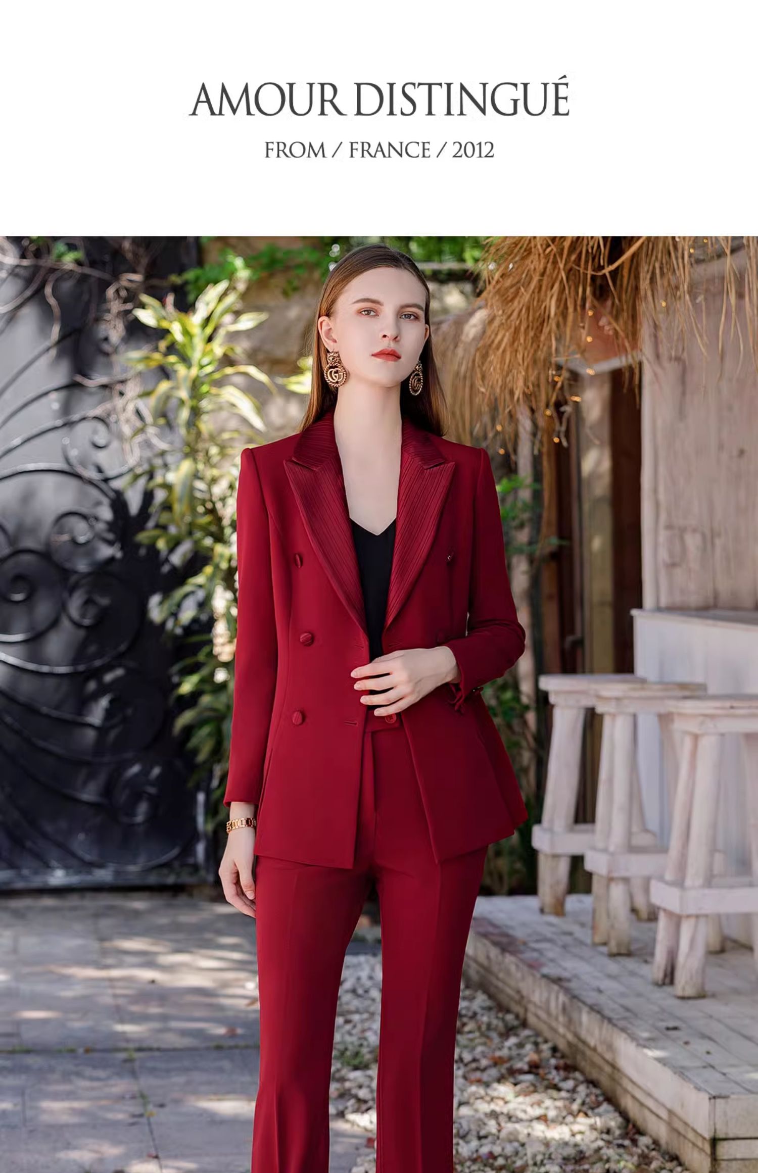 IWY/伦巴红主持人正装红色高级感西装外套女职业套装气质御姐工作服西服CP1877