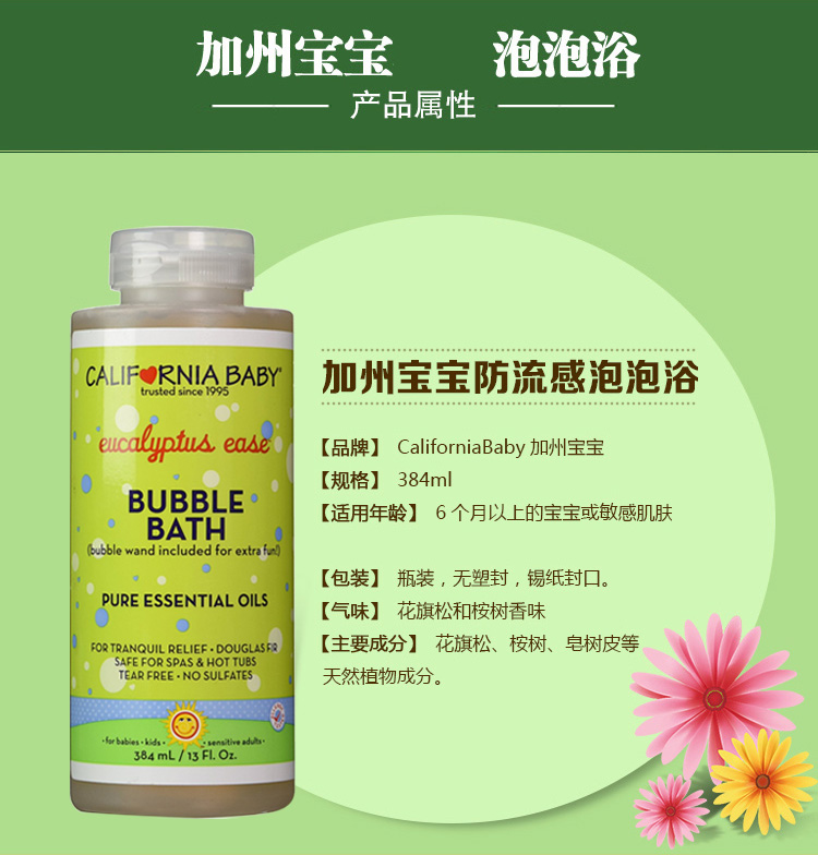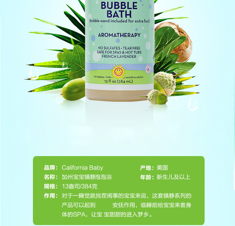 【保税仓】美国California Baby加州宝宝舒缓泡泡浴384ml