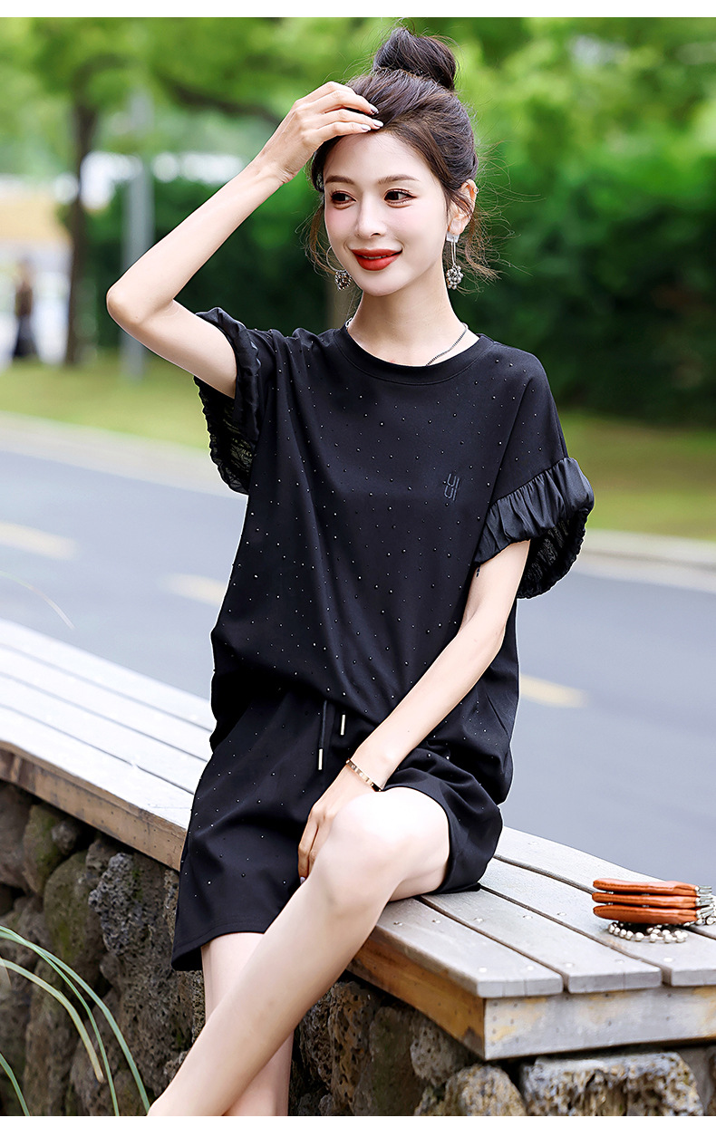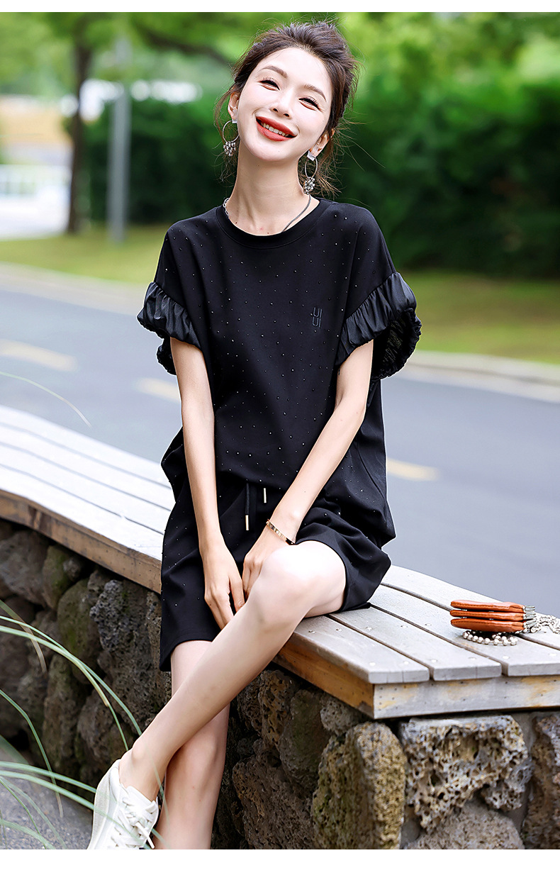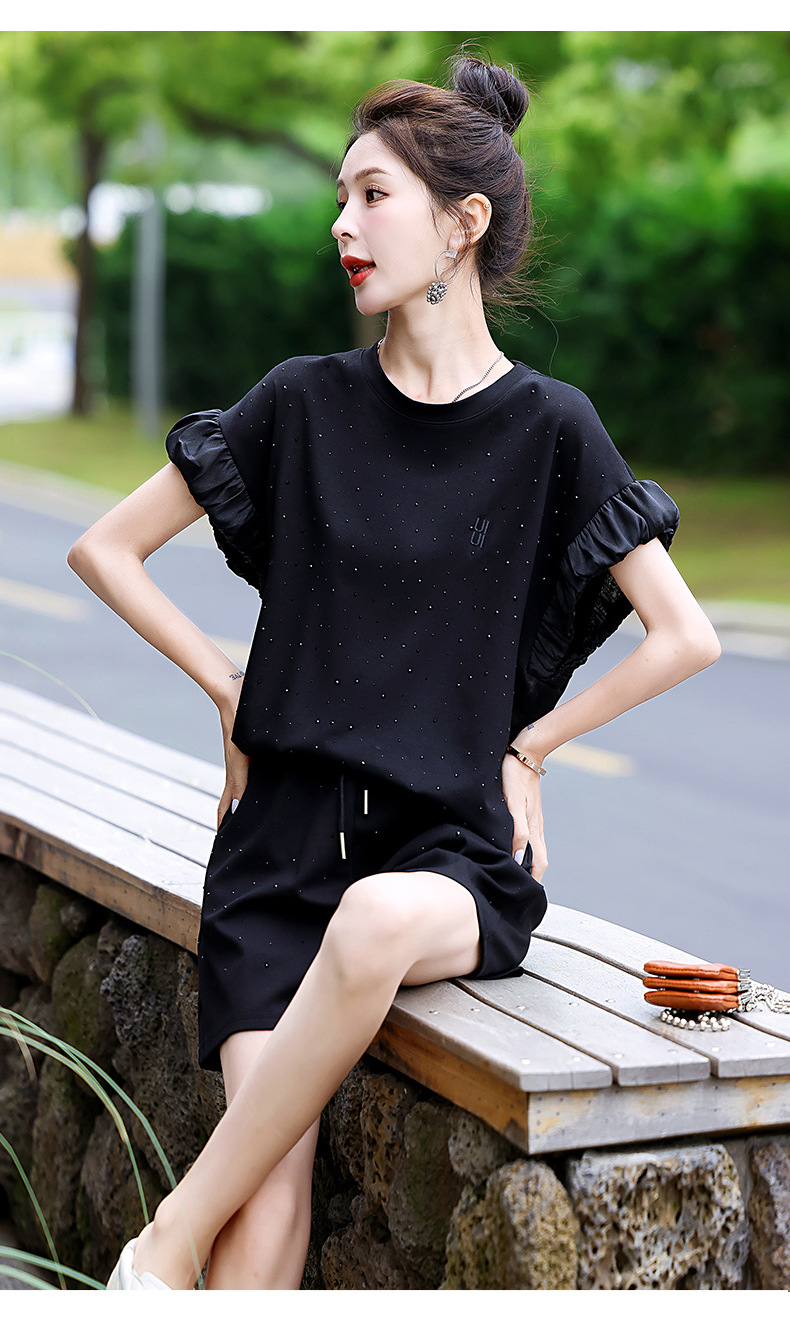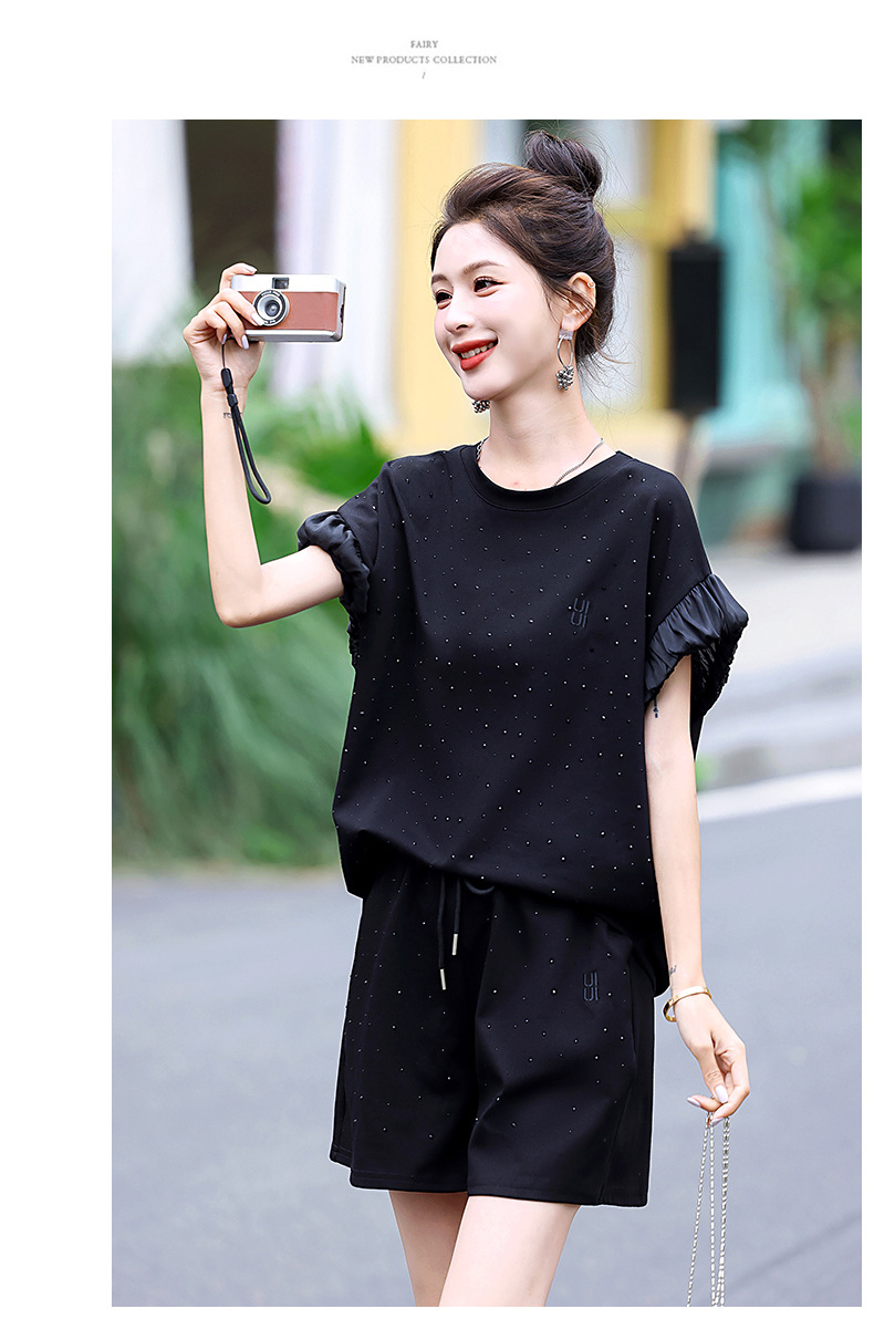 休闲运动短裤套装,时髦减龄显瘦洋气两件套HR-ASLZ675