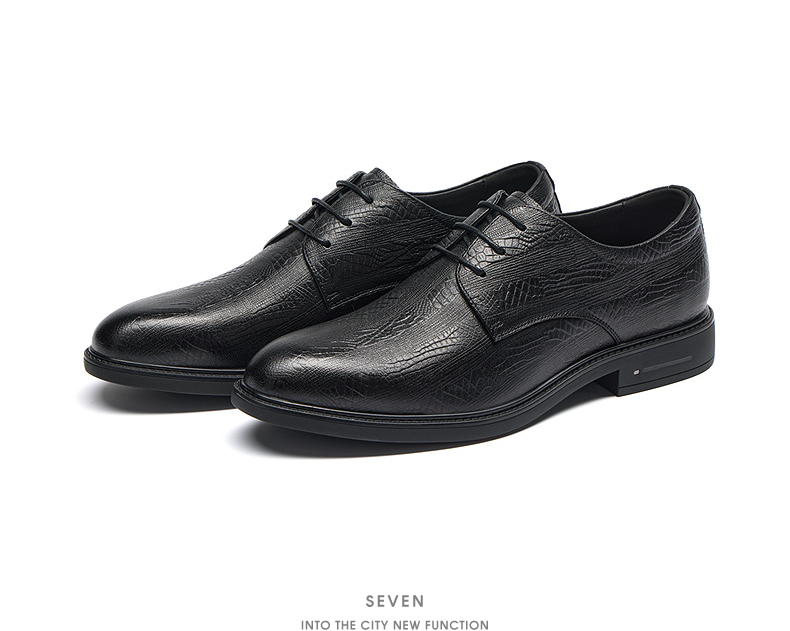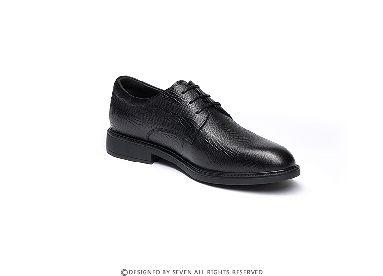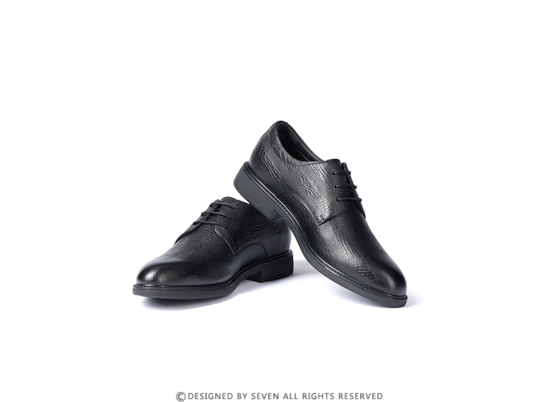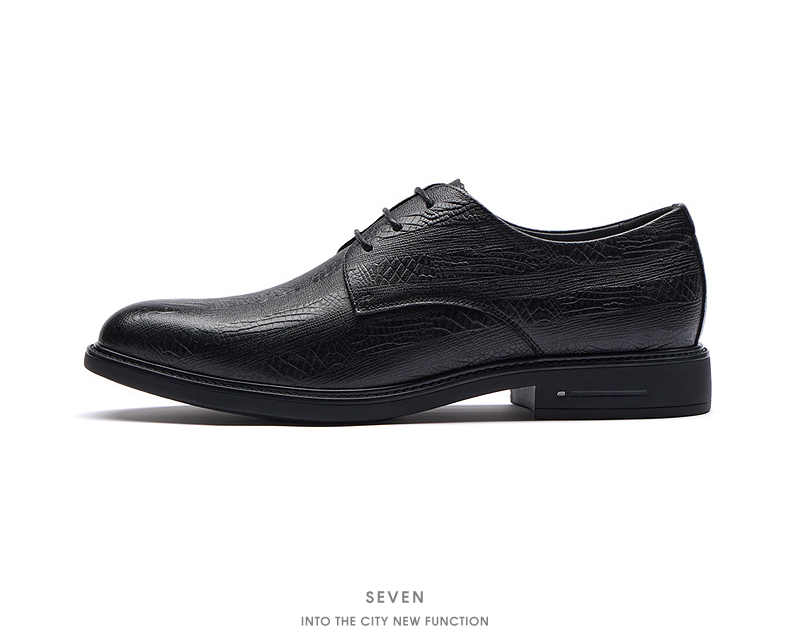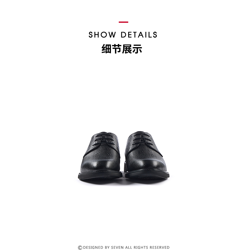 柒牌男士商务正装皮鞋上班宴会西装鞋真皮透气圆头系带黑色德比鞋 127X70270