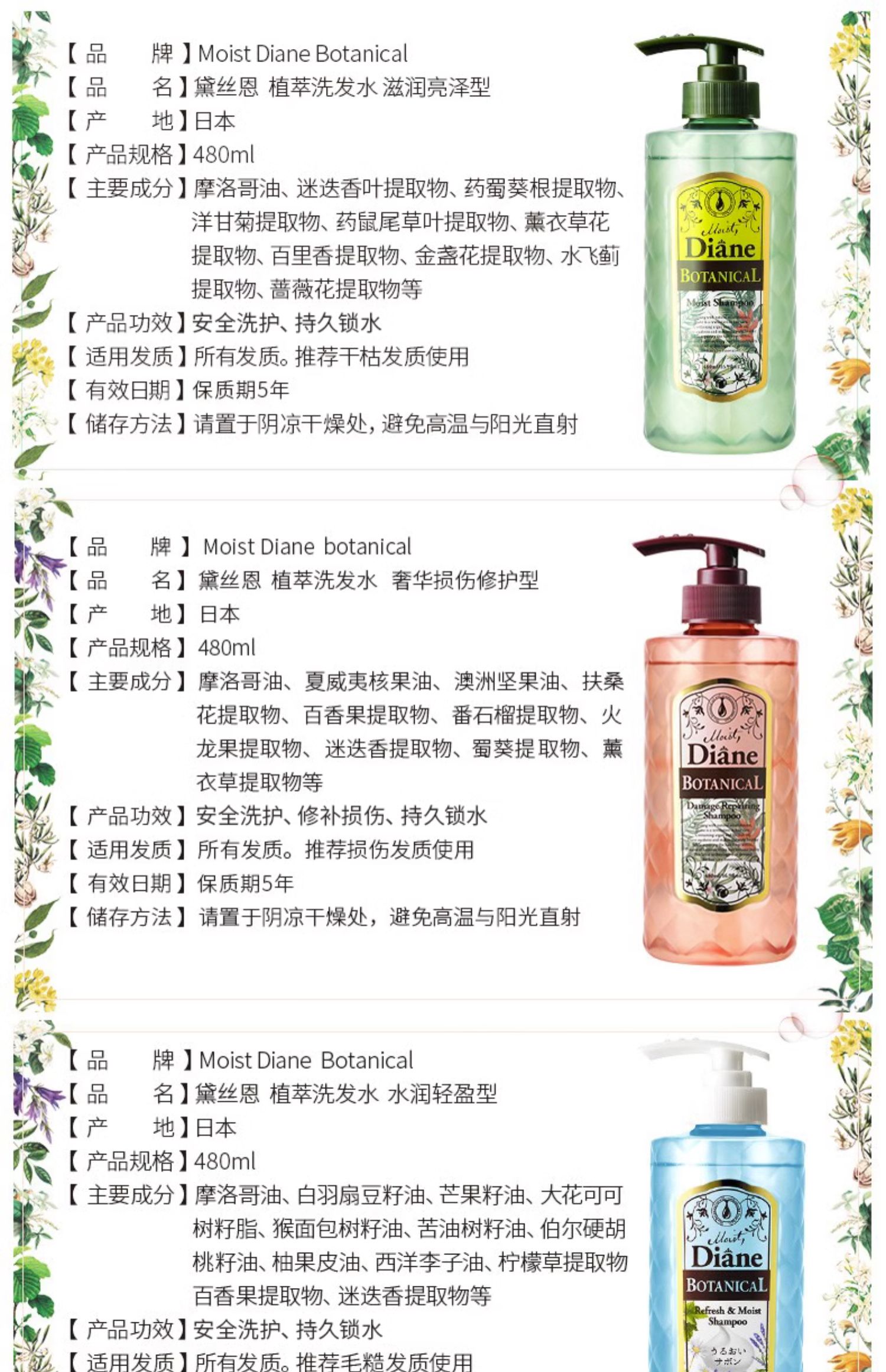 黛丝恩植萃洗发水/护发素480ml 滋润亮泽型洁净舒爽解决发尾干涩 112532/112533