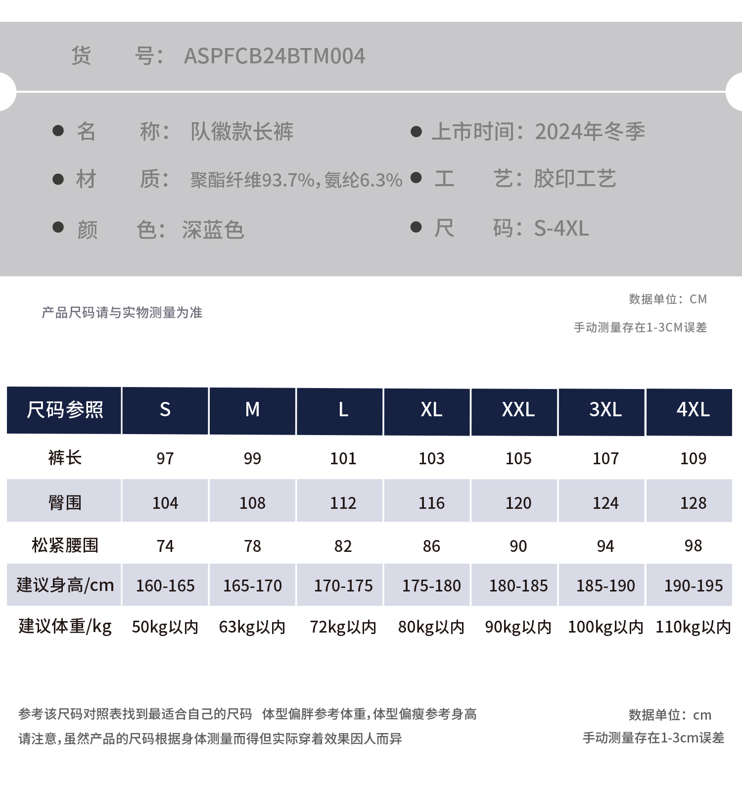 【官方正版】巴塞罗那俱乐部丨巴萨深蓝队徽款长裤足球迷运动裤子