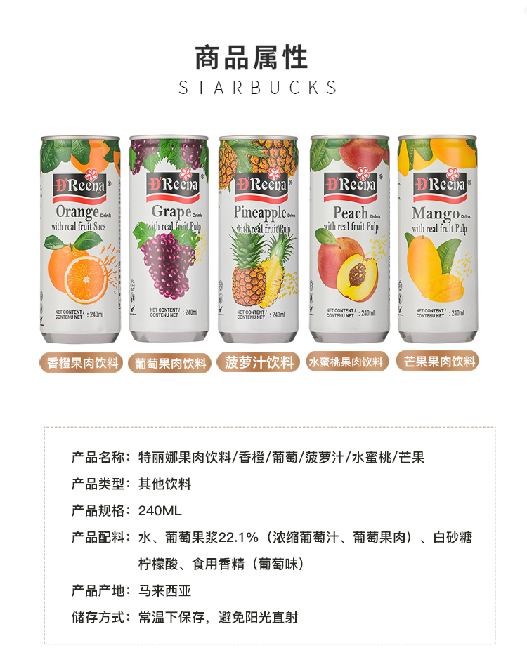 马来西亚特丽娜果汁饮料系列240ml 多口味可选 原汁原味 023184/023185/023186/023187/023188