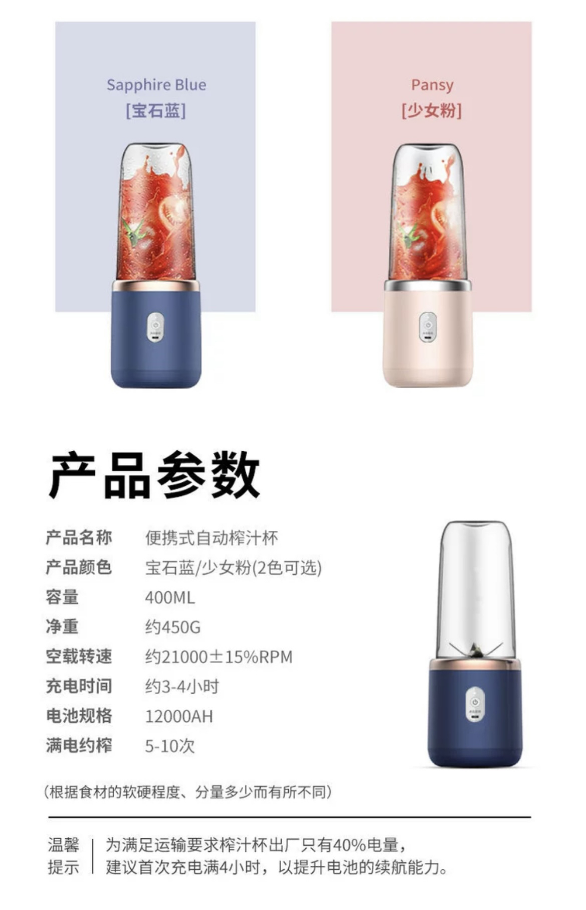 跨境新款榨汁机携带式充电小型家用果汁杯学生全自动多功能榨汁杯