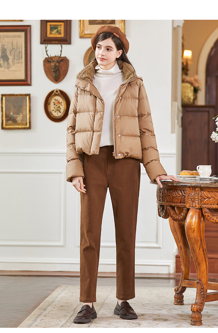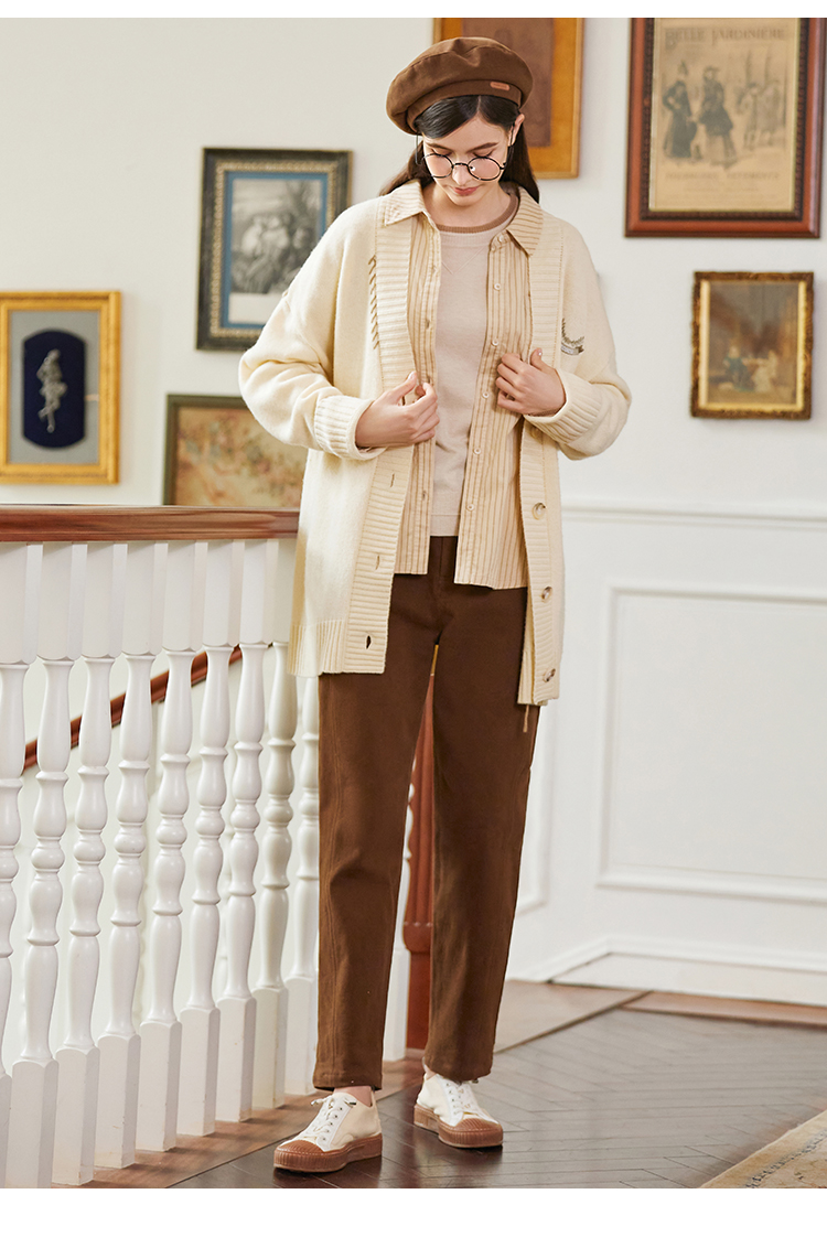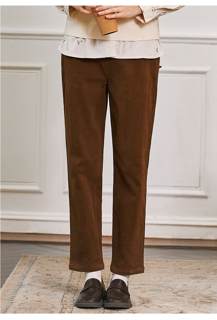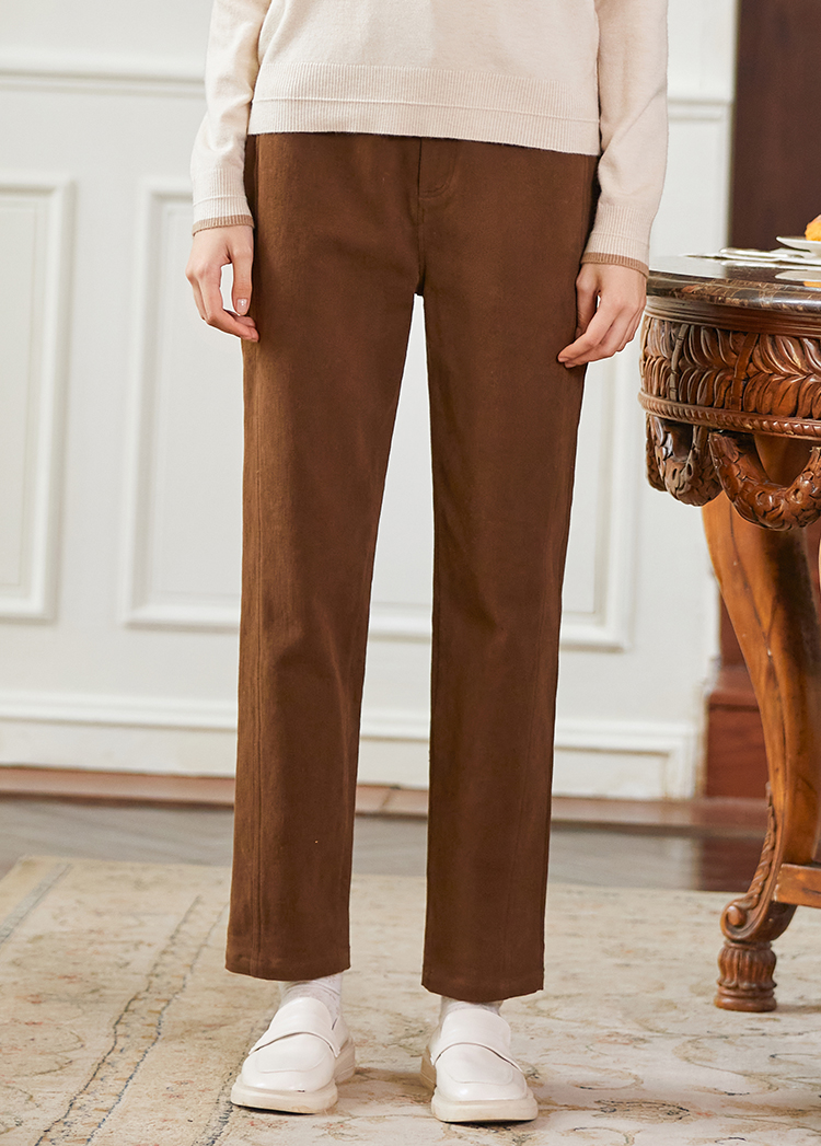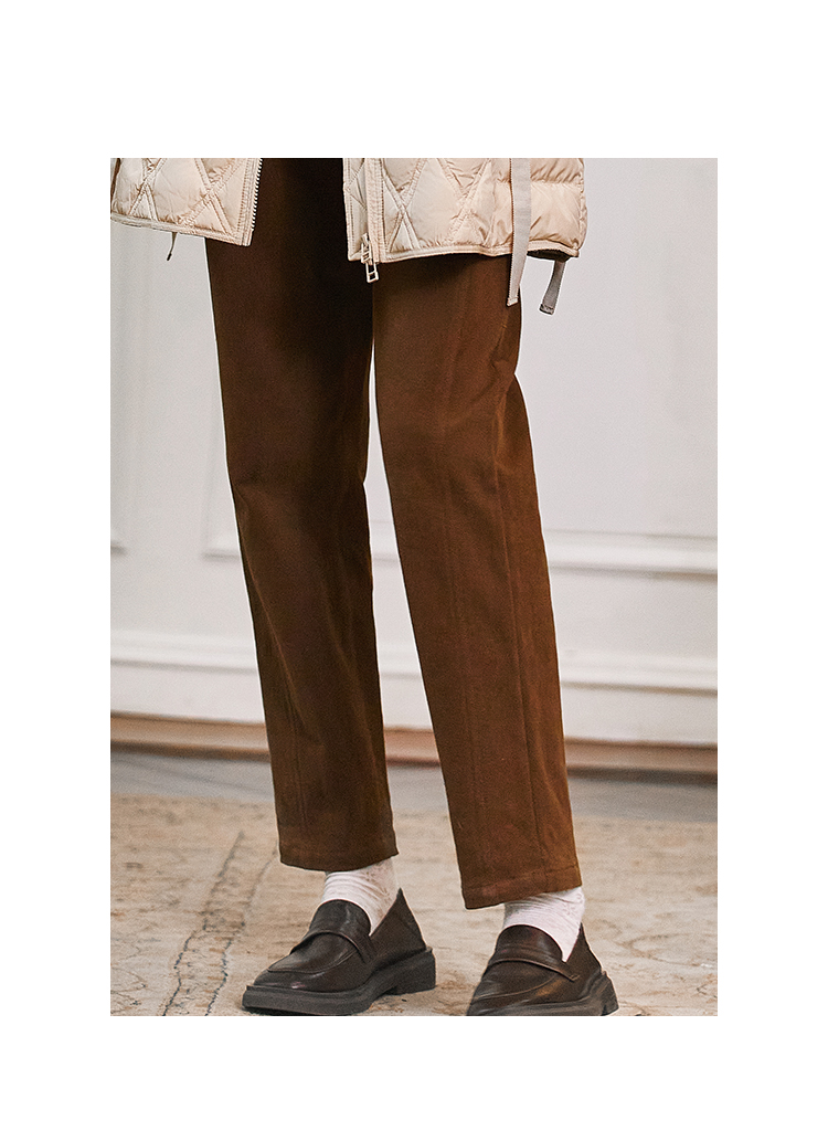 Famecoco范可儿秋冬撞色双腰头休闲长裤女FAB8GA002