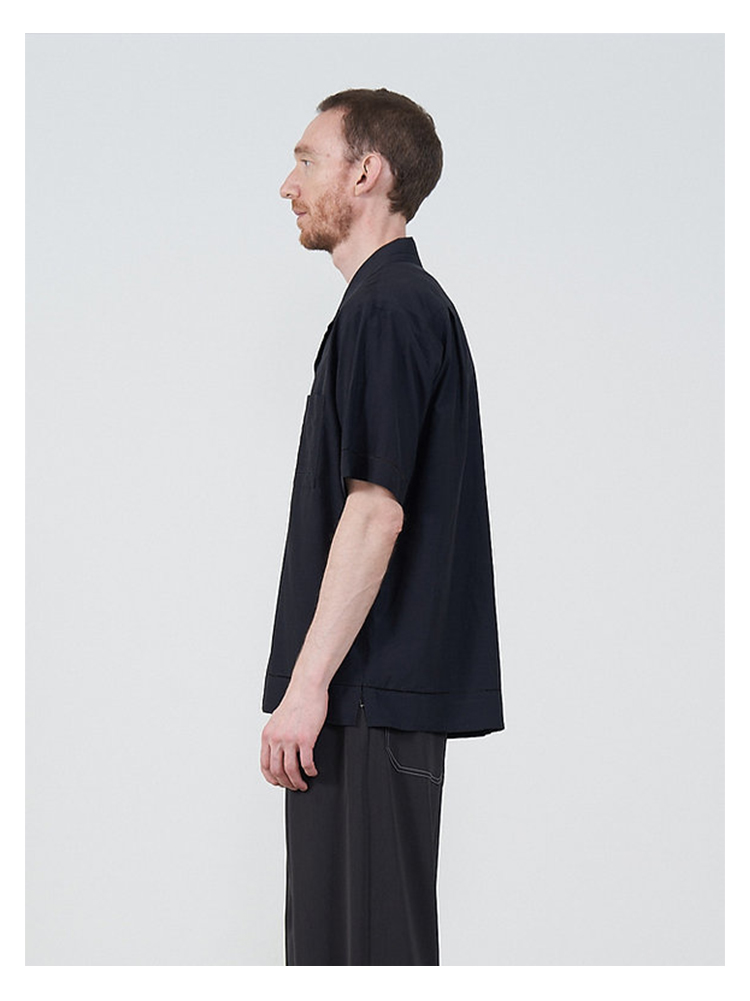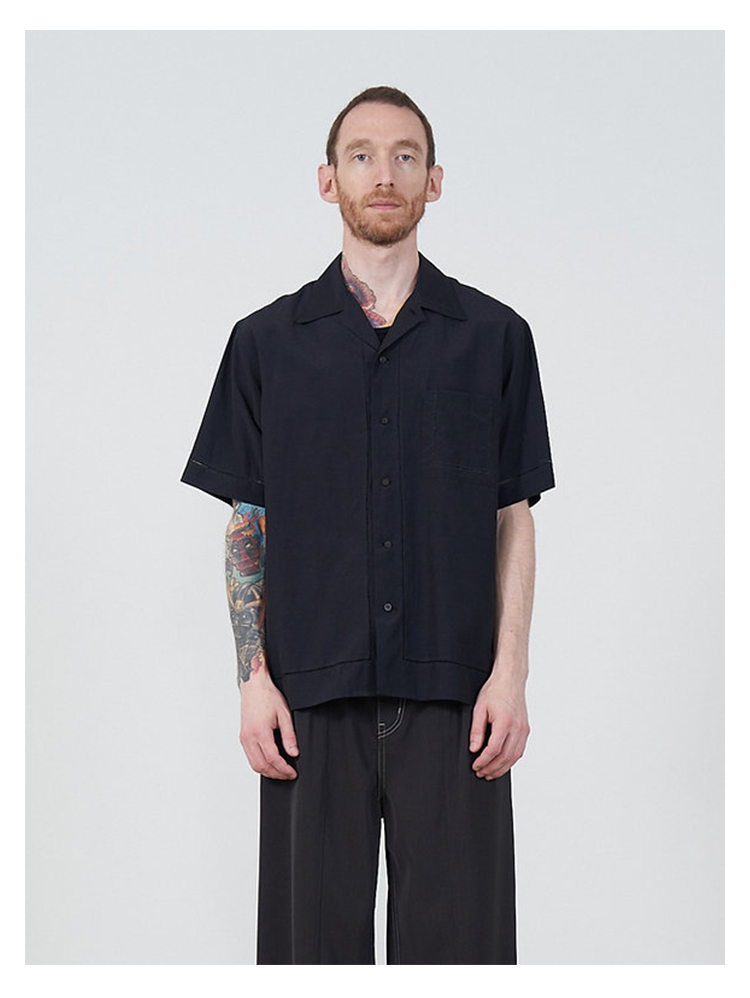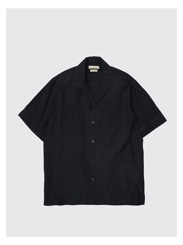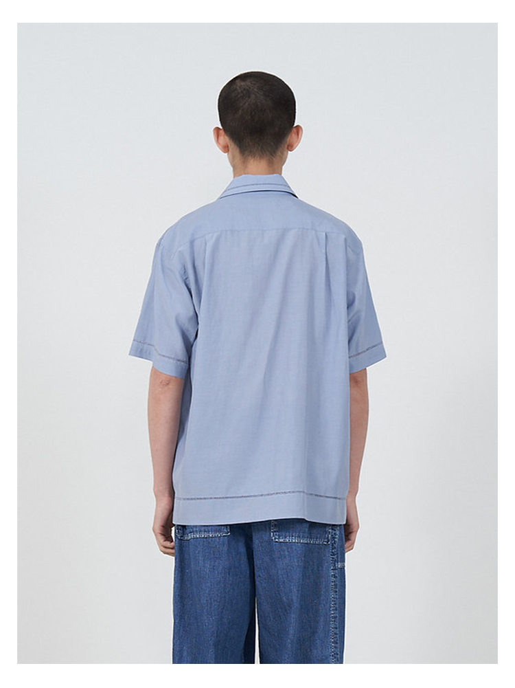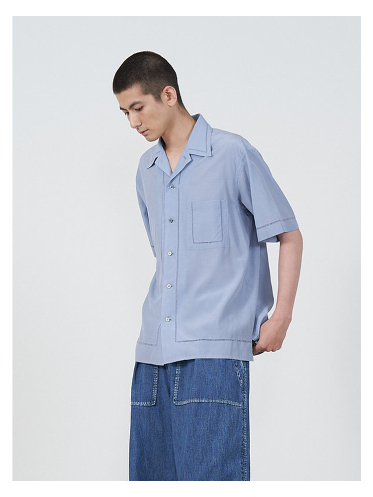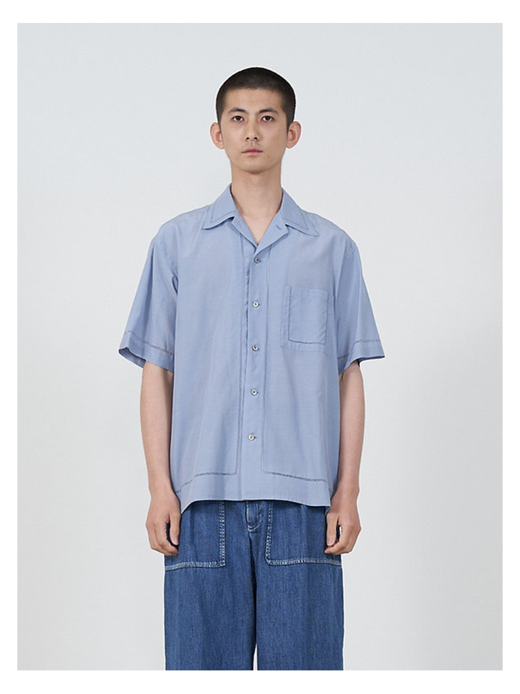YOKE EMBROIDAREY OPEN COLLAR SHIRT 有机棉丝混纺休闲短袖衬衫