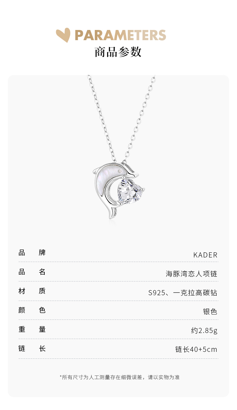 KADER卡蒂罗 海豚湾恋人项链 S925银轻奢纯欲风穿搭趣味灵动造型设计锁骨链 浪漫闪耀璀璨款配饰精致百搭 送闺蜜同款女生
