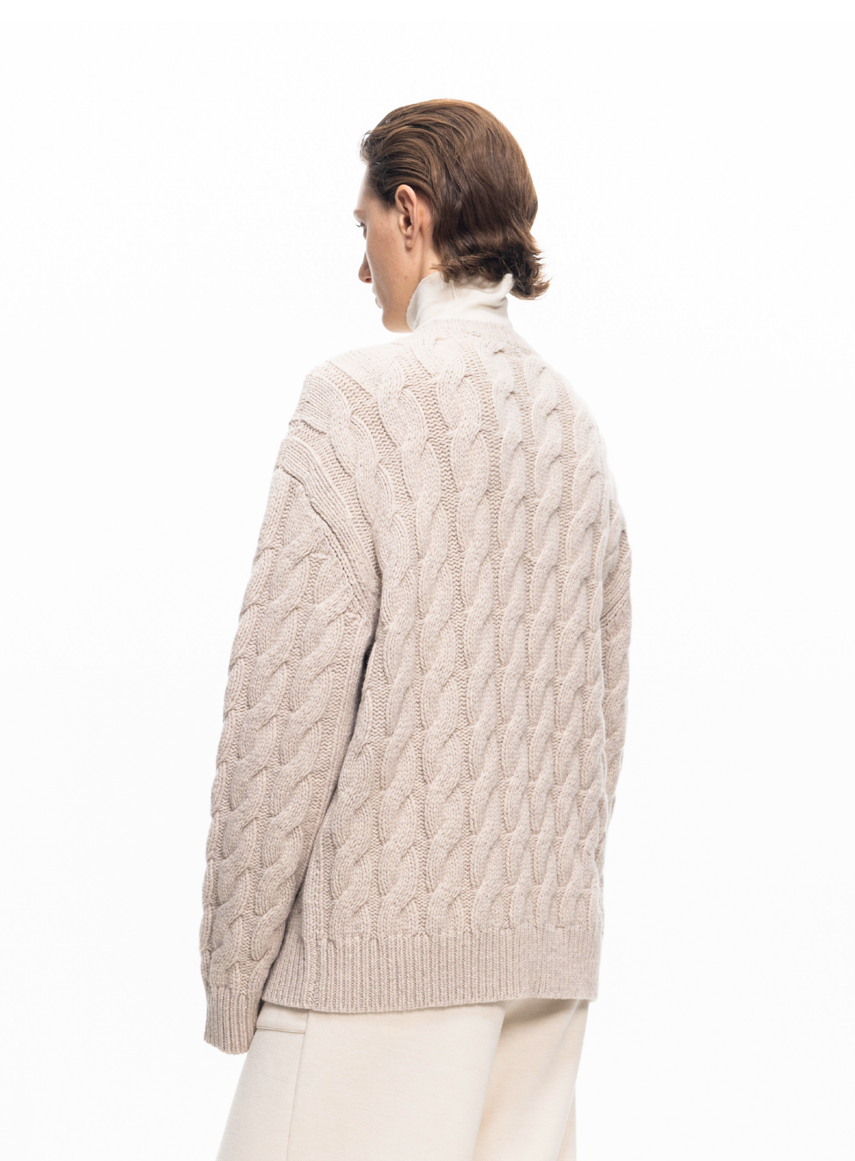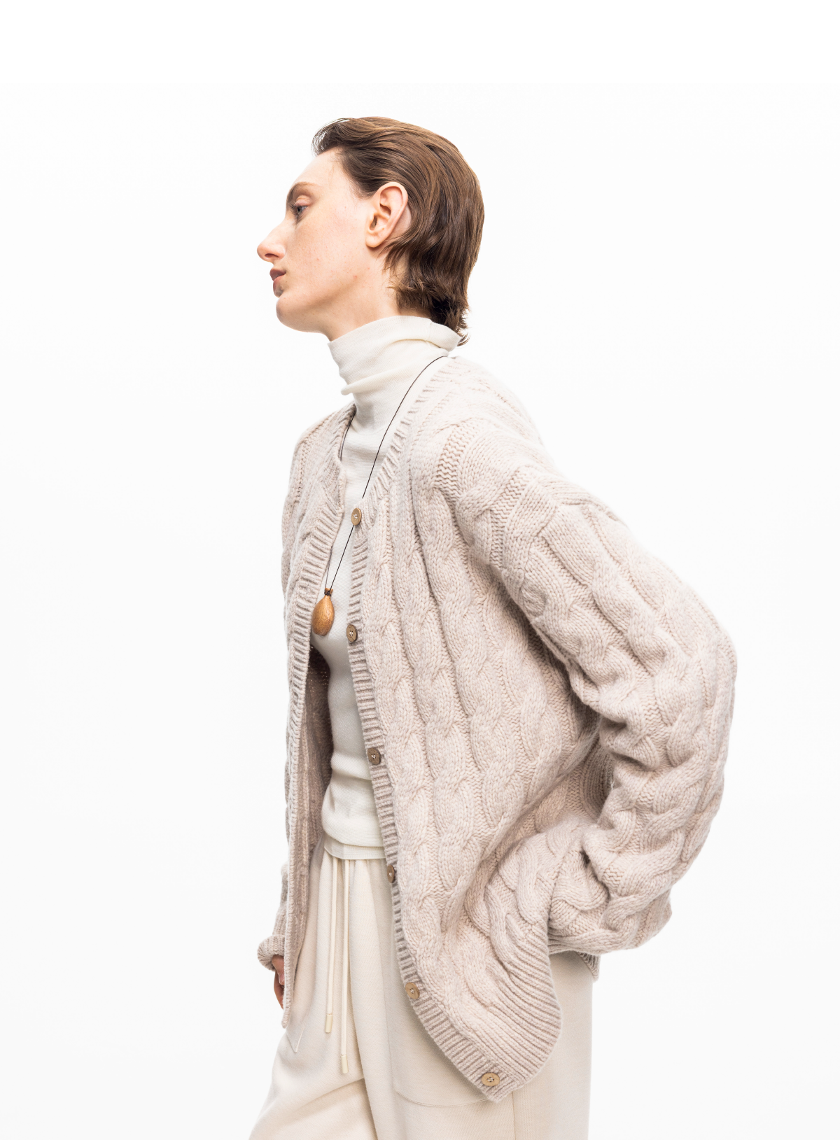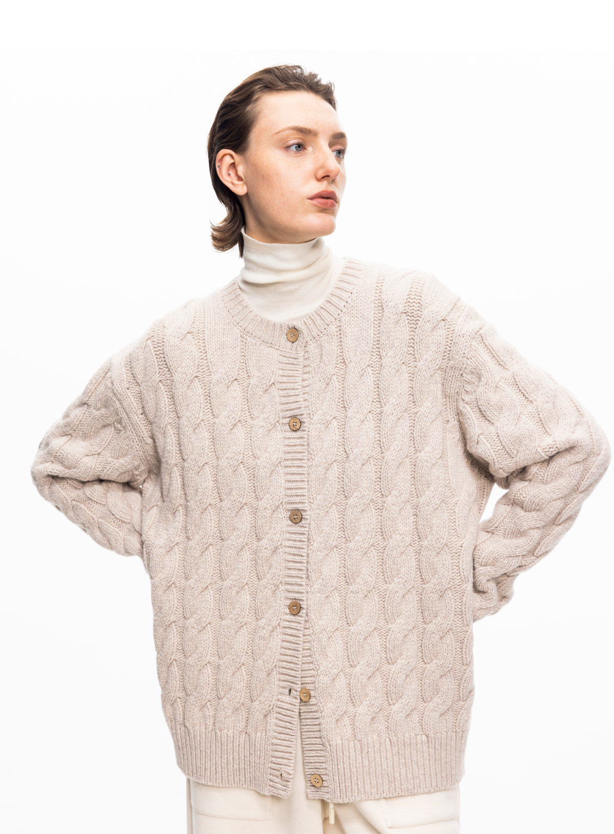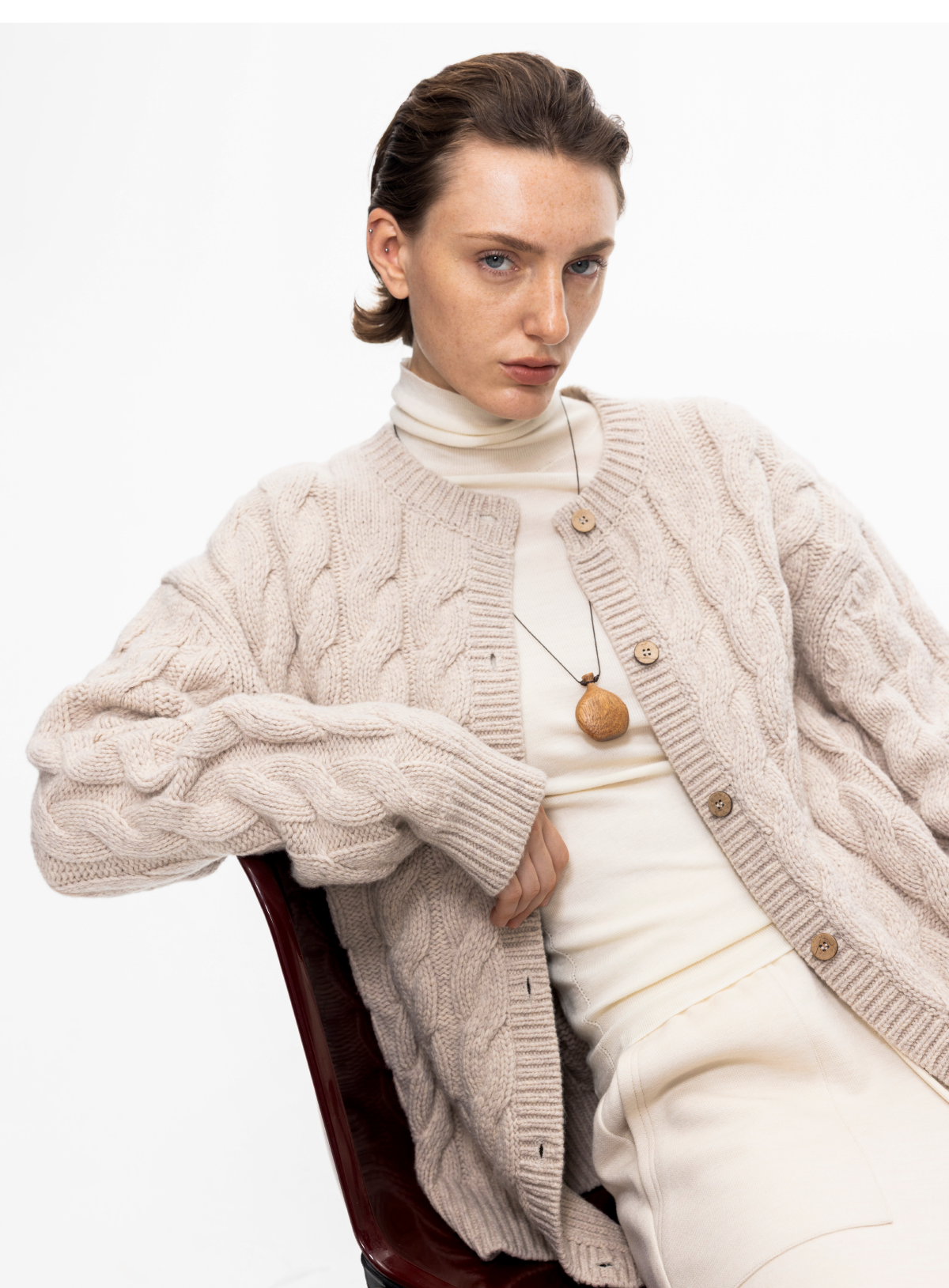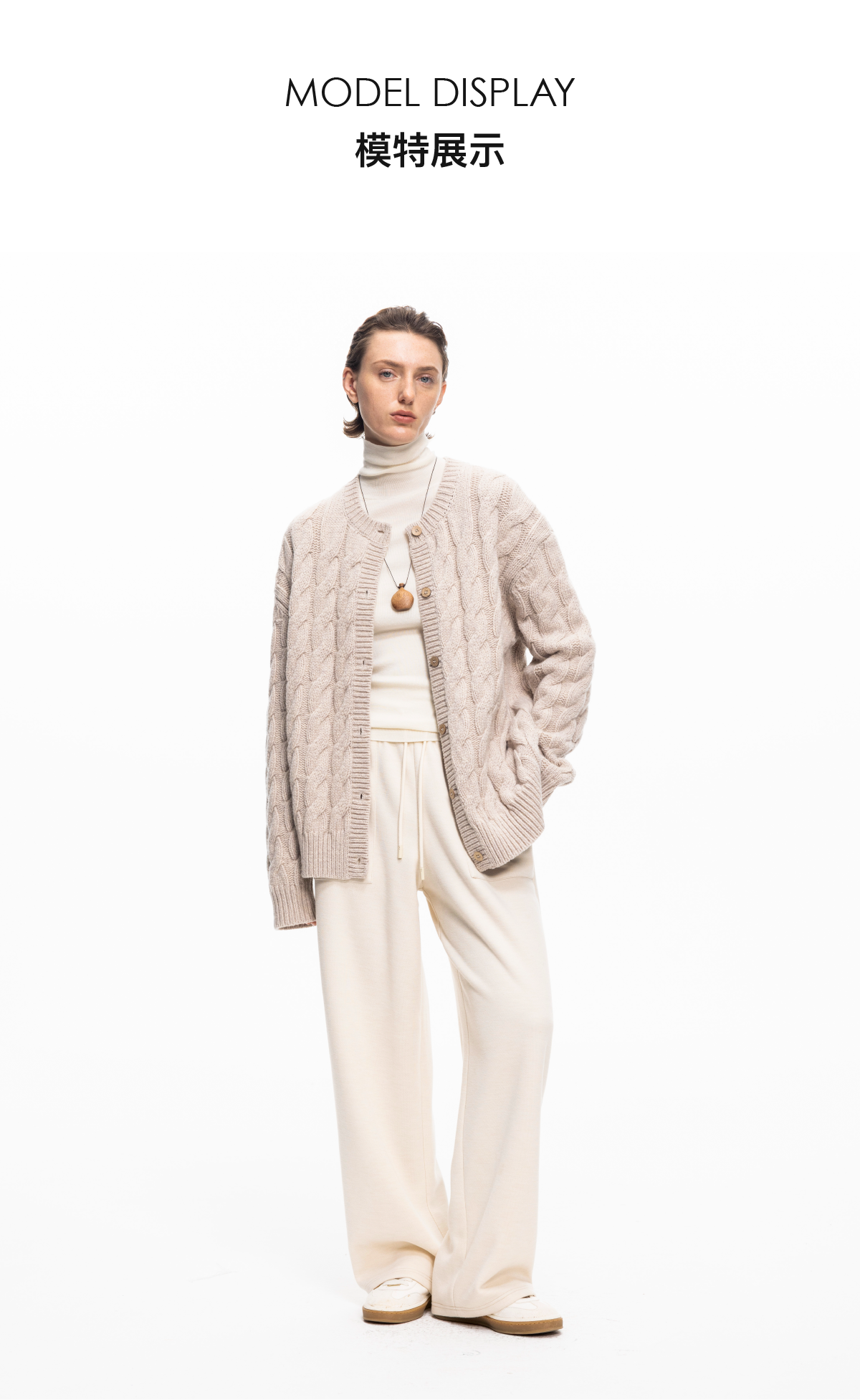 LIYIHAN 2025秋冬新款老钱风羊毛针织衫杏色小众设计感开衫毛衣女
