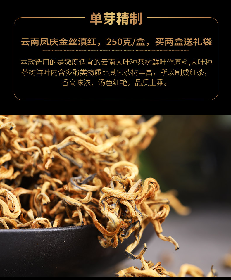 93 金丝滇红 250克盒装 云南凤庆古树金丝滇红茶 全嫩芽新品凤庆红茶