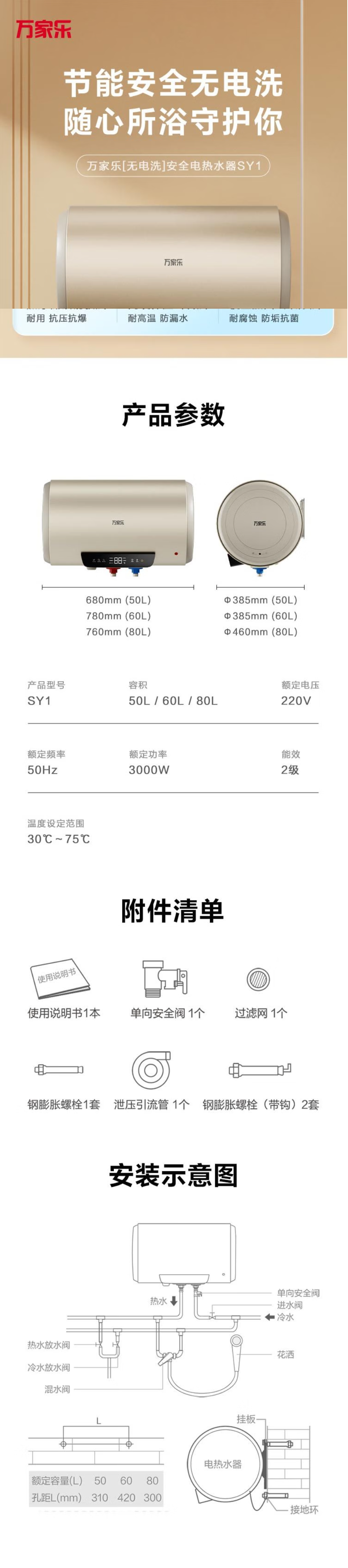 万家乐(510505)无电洗 节能 电热水器D60-SY1