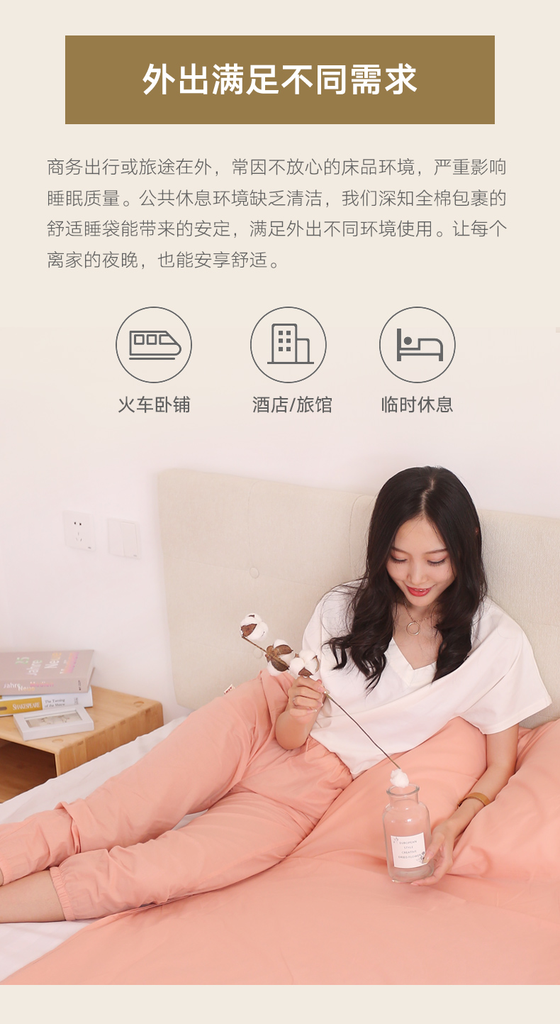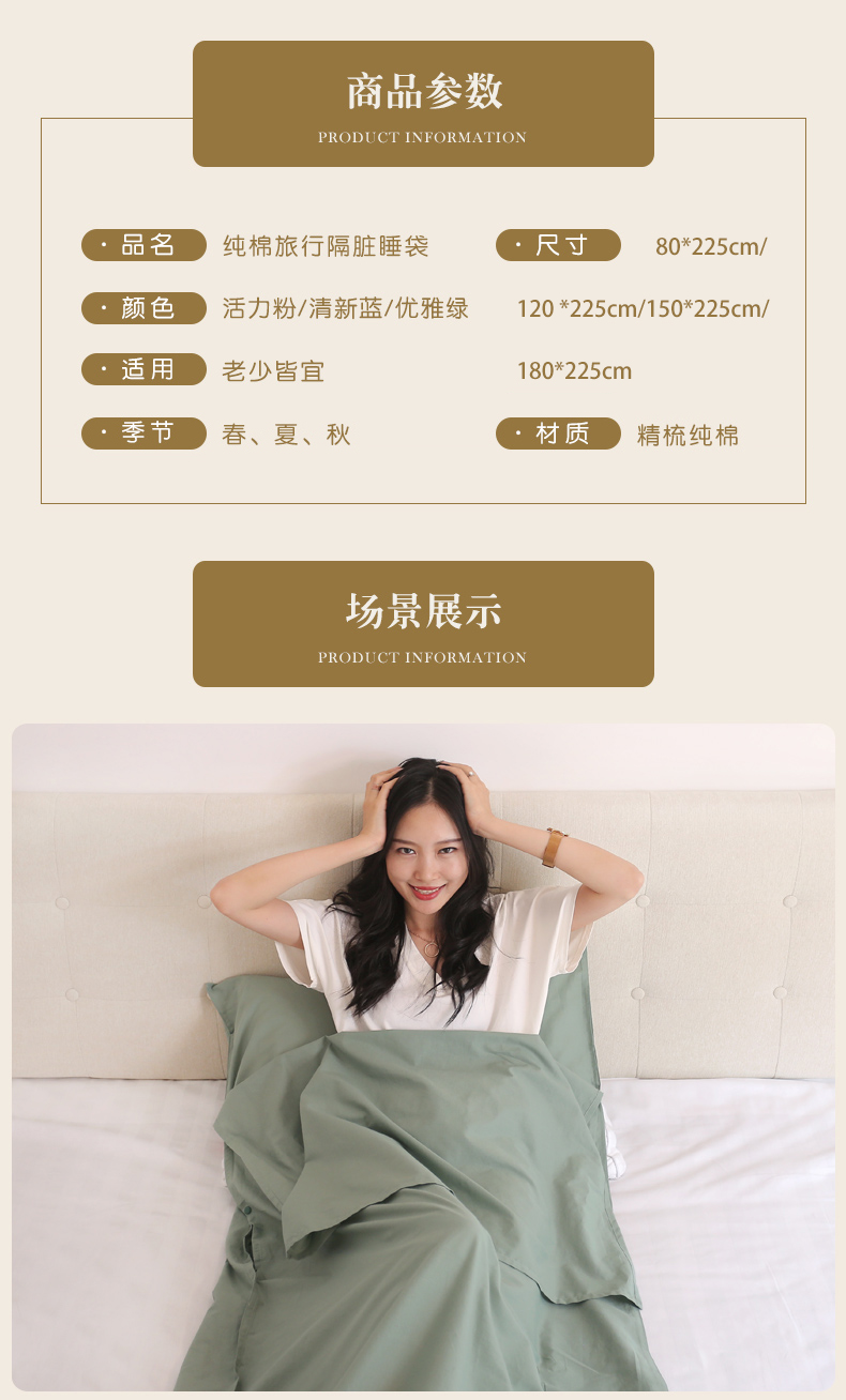 [全尺码]龙之涵全棉旅行睡袋 酒店火车必备隔脏睡袋单人双人差旅出行必备隔脏神器