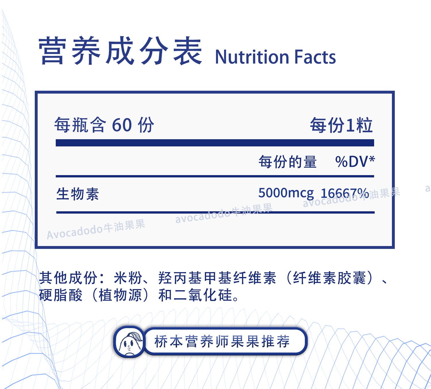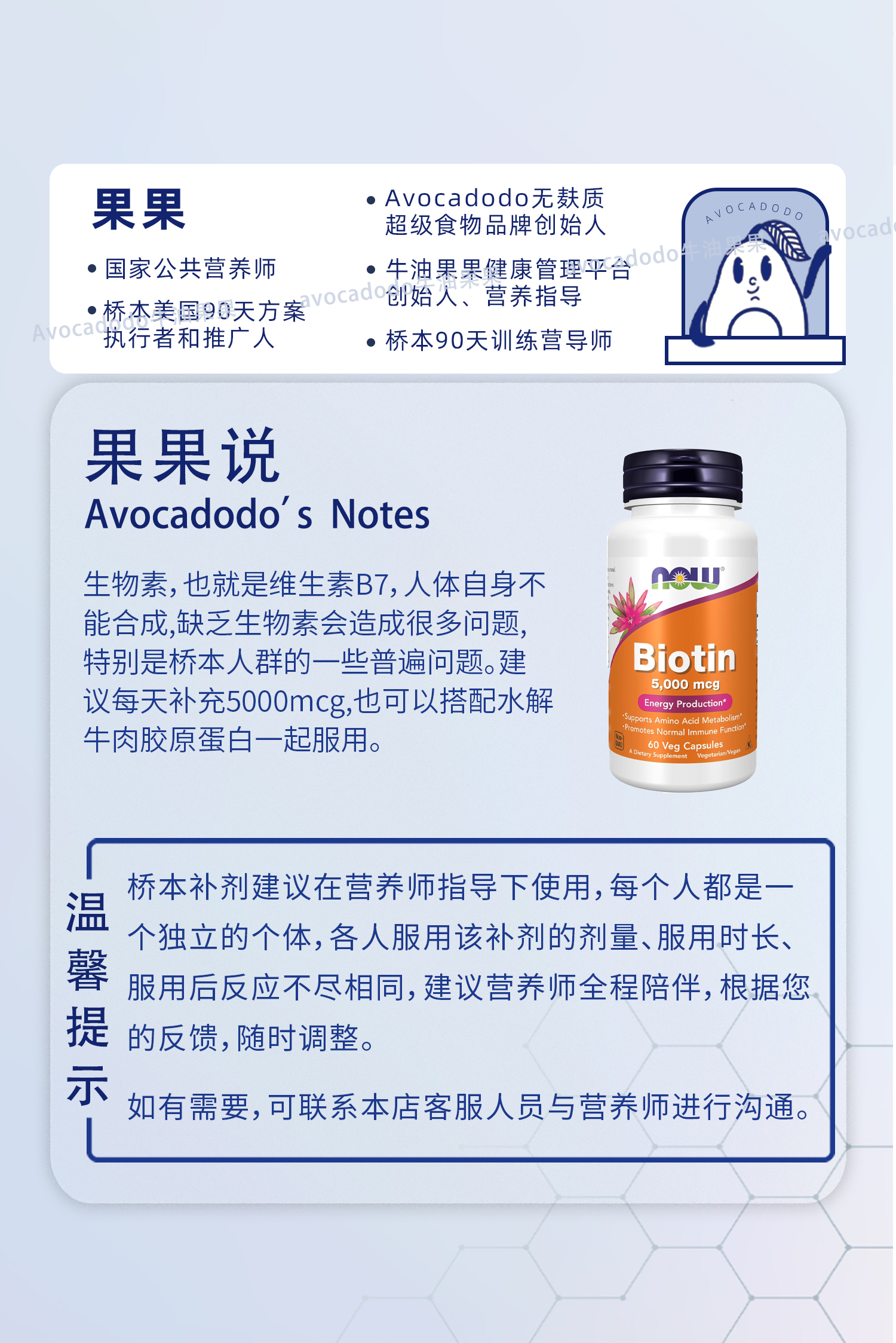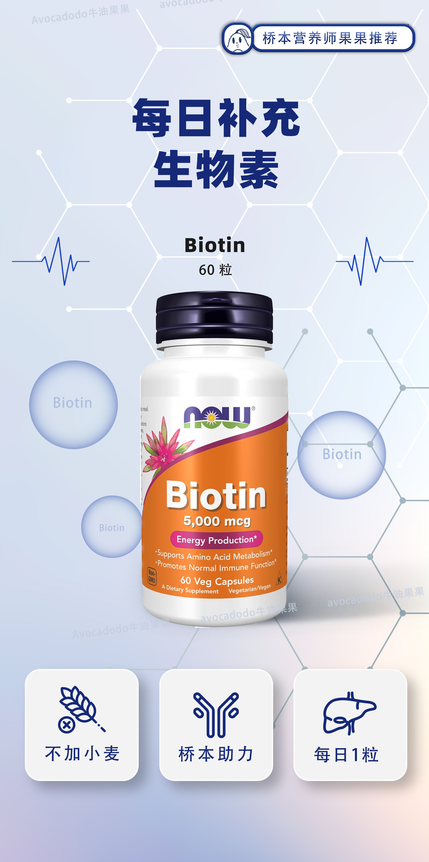 保税仓发货NOW诺奥生物素5毫克120粒维生素B7呵护头发指甲牛油果果桥本