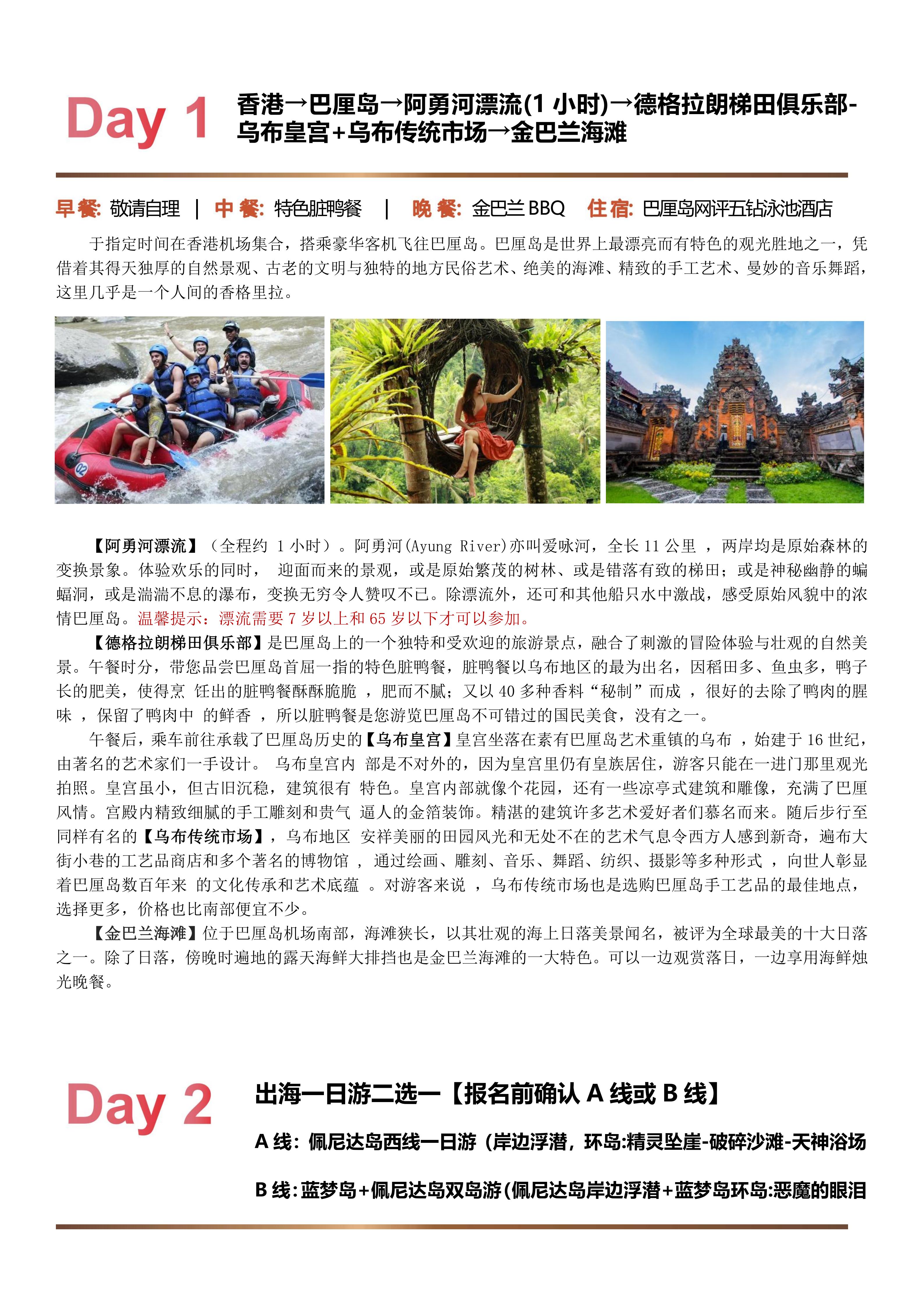 【春节、寒假】<巴厘岛6天5晚-深起港止(15人小团)>阿勇河漂流、佩妮达岛出海、梯田俱乐部、悬崖公路、情人崖、金巴兰海滩、乌布皇宫+传统市场