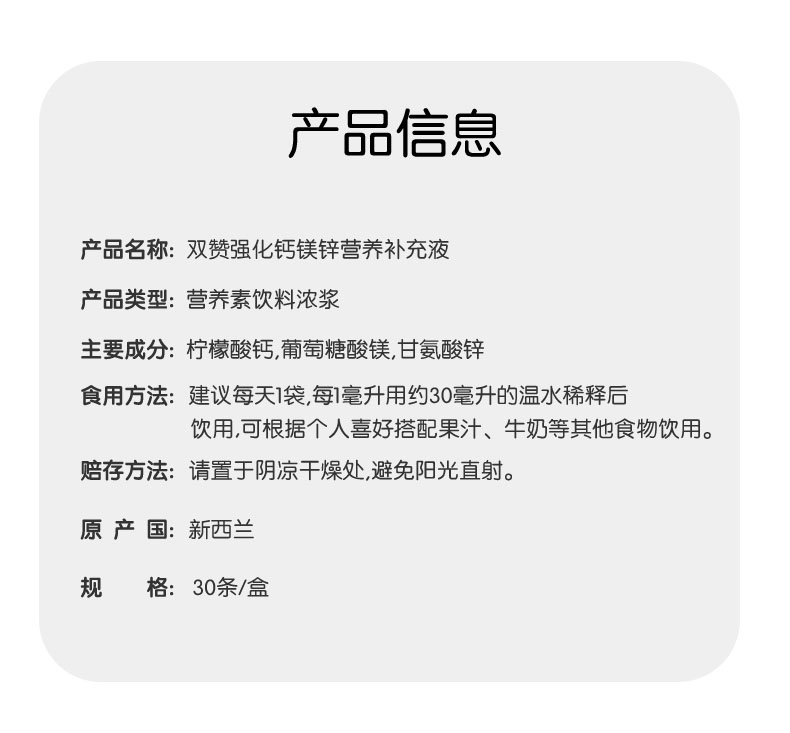 双赞强化钙镁锌营养补充液300ml(10ml*30)(2025.10.20到期)