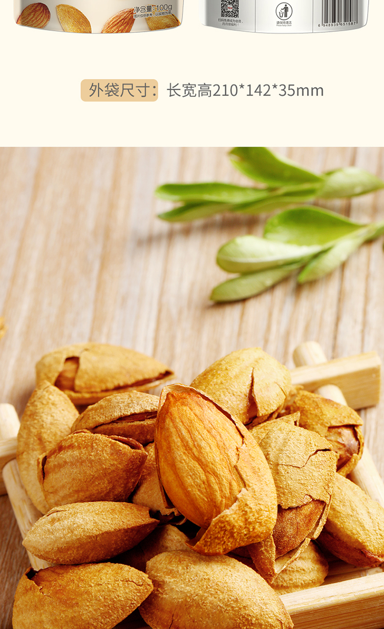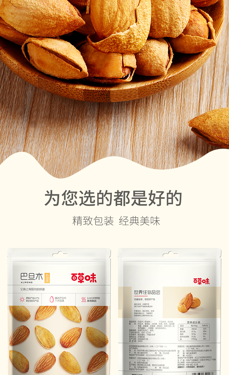 百草味 每日坚果炒货 干果休闲零食扁桃仁 手剥特产奶油味巴旦木100g/袋