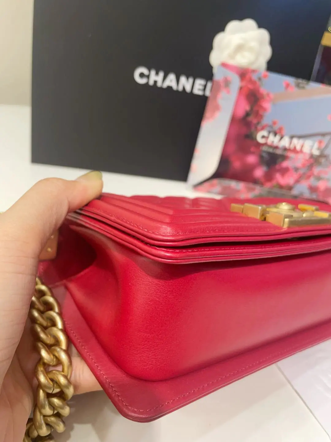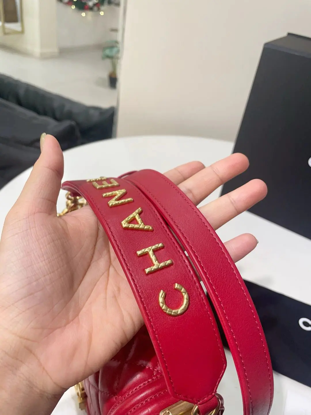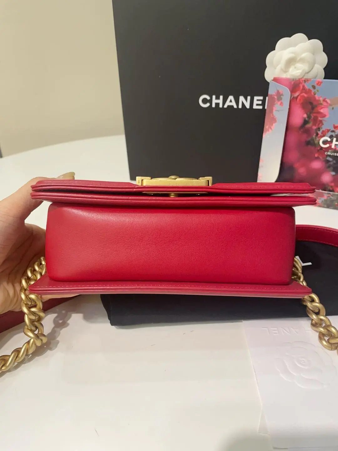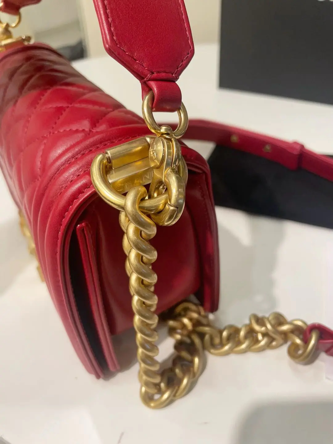 【商品详情】正品二手 Chanel Leboy 2020早秋系列限定红金 手柄 小号 斜挎包👜98新 20*12 镭射30开 全套配件:票 卡 说明书 防尘袋 盒子。限定款。
