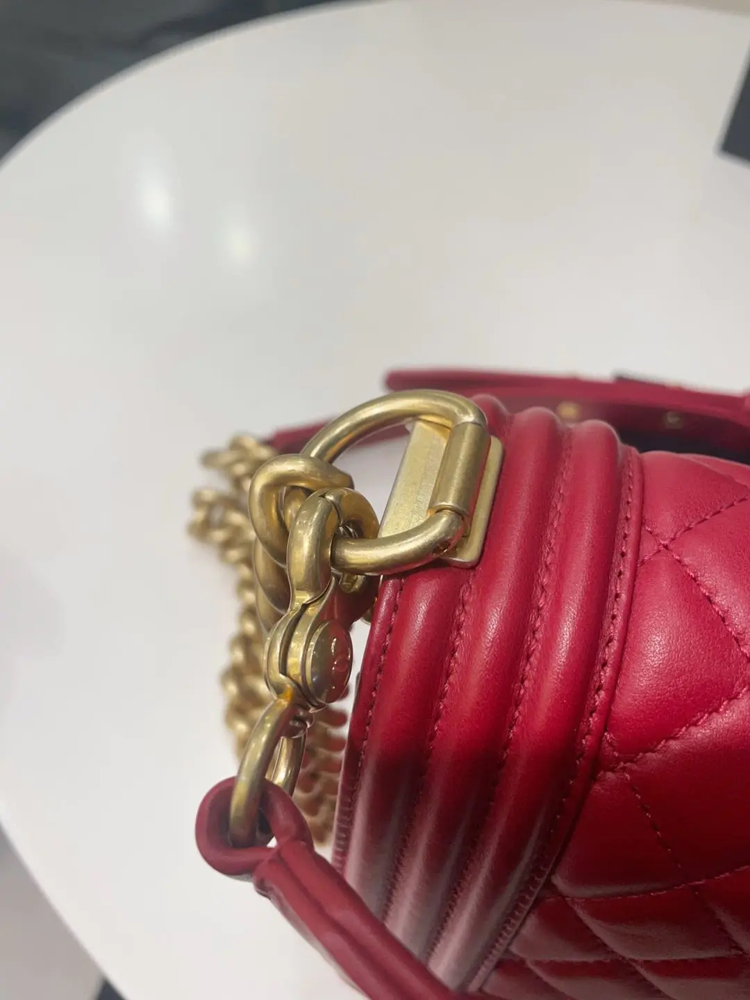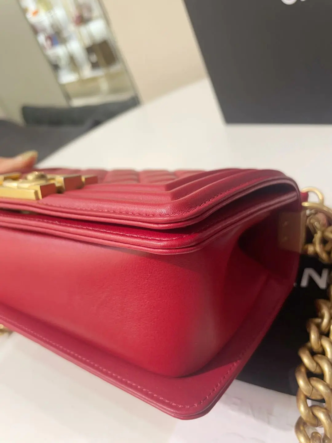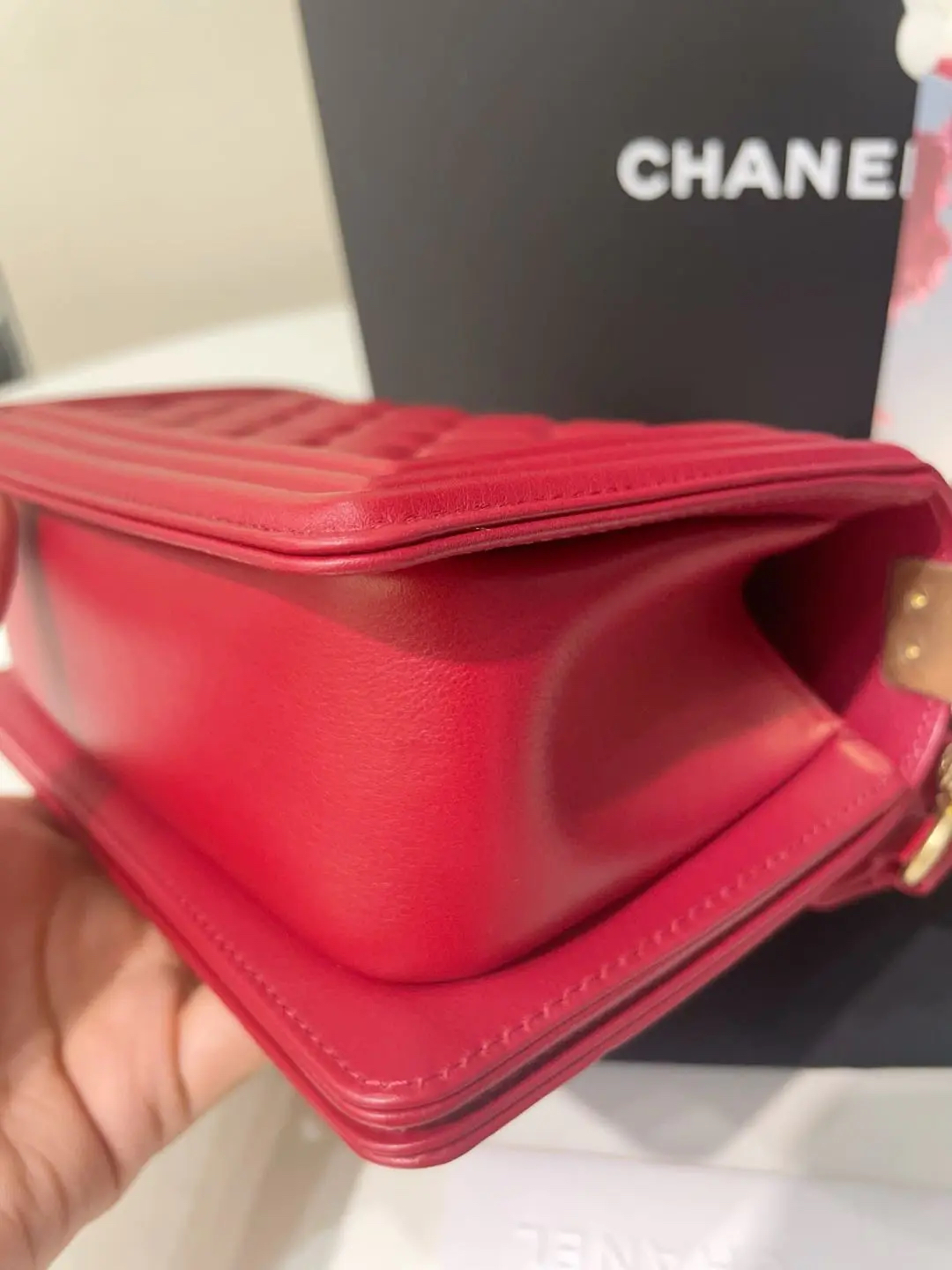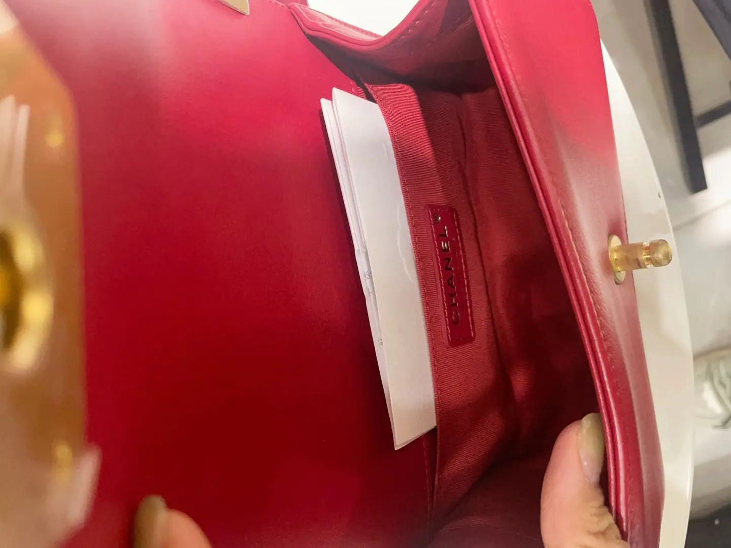 【商品详情】正品二手 Chanel Leboy 2020早秋系列限定红金 手柄 小号 斜挎包👜98新 20*12 镭射30开 全套配件:票 卡 说明书 防尘袋 盒子。限定款。