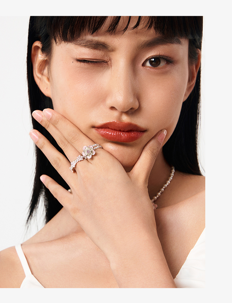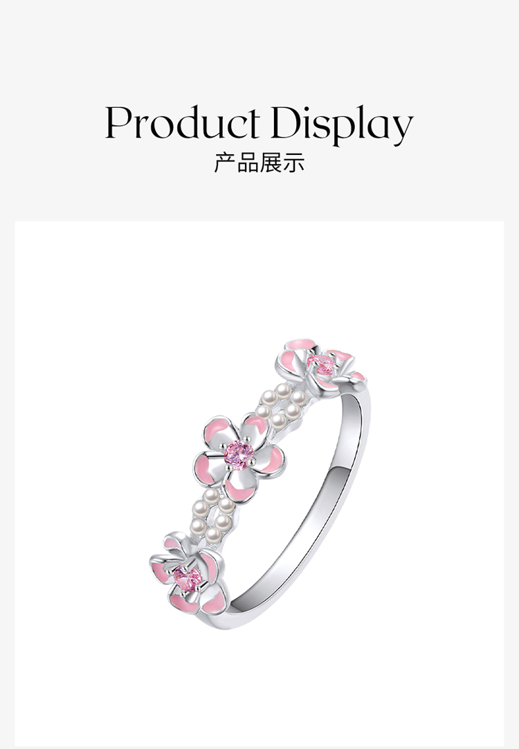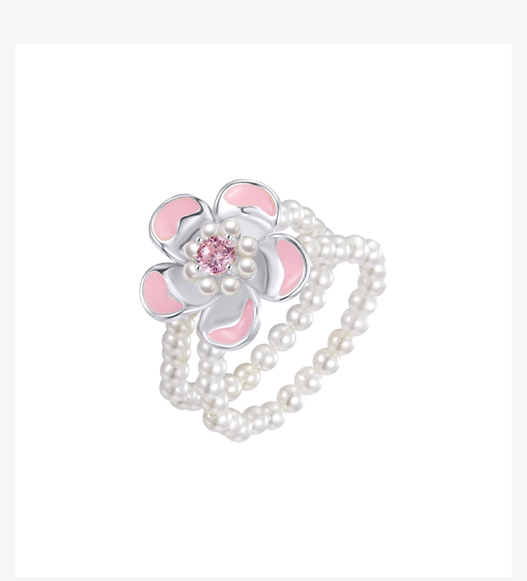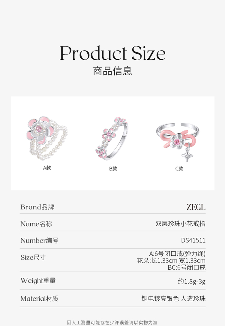ZEGL设计师花系列法式人造珍珠花朵戒指女小众设计指环开口食指戒