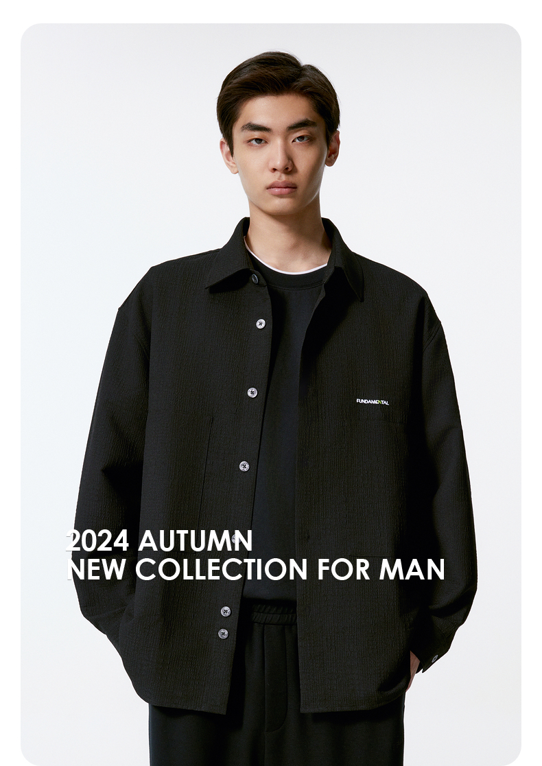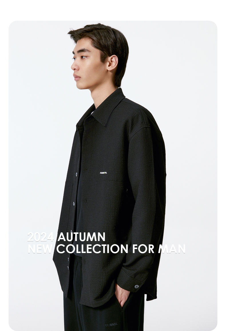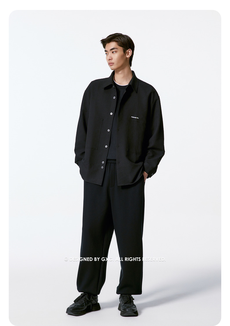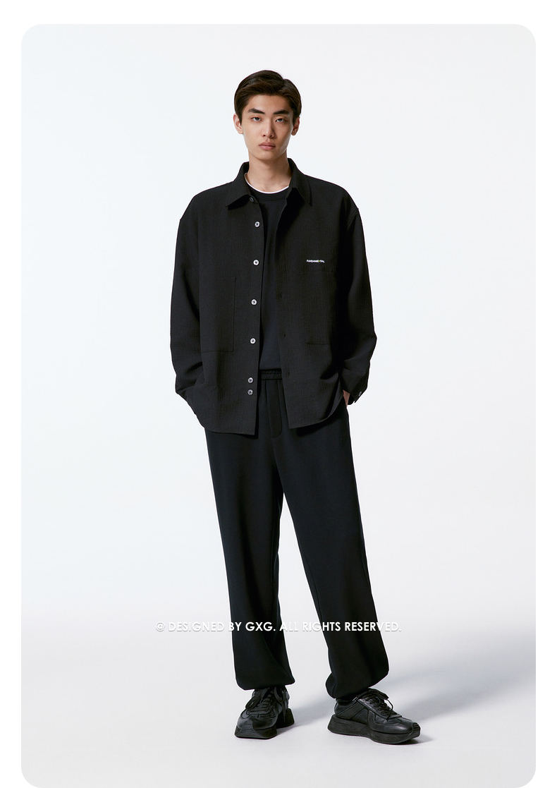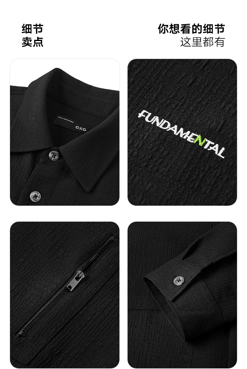 GXG男装 黑色肌理感撞色绣花长袖衬衫外套24年秋季热卖G24X033021