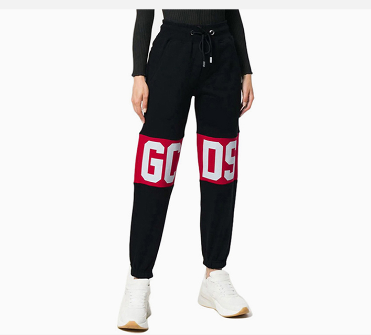 GCDS 女士字母徽标印花棉质休闲运动裤 黑色 ACC94U030037 BLACK
