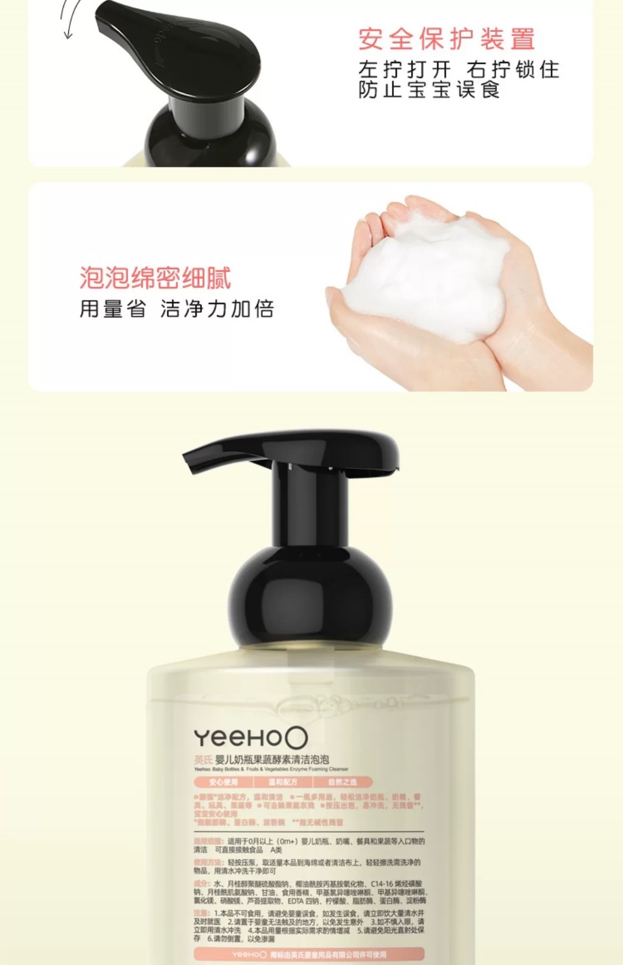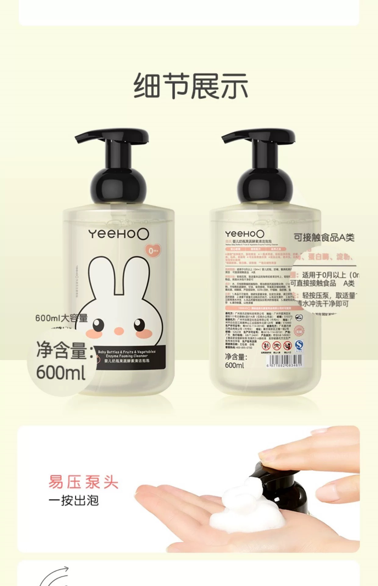 英氏 婴儿奶瓶果蔬酵素清洁泡泡600ml “买一瓶送一瓶” 实🉐2瓶