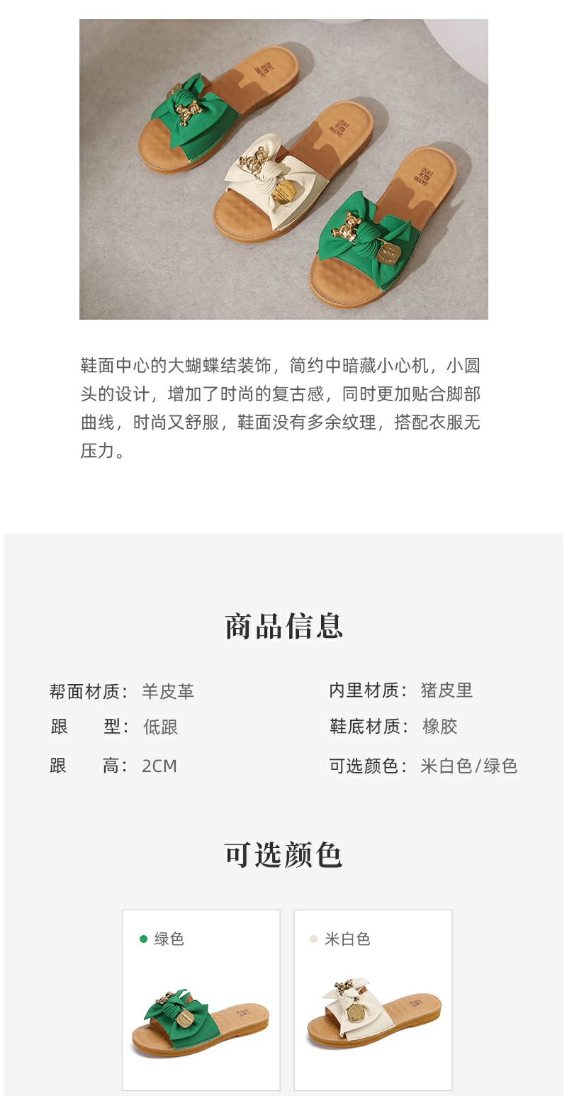 西村名物蝴蝶结拖鞋女外穿2022年夏季新款甜美舒适沙滩鞋T22BJ25001