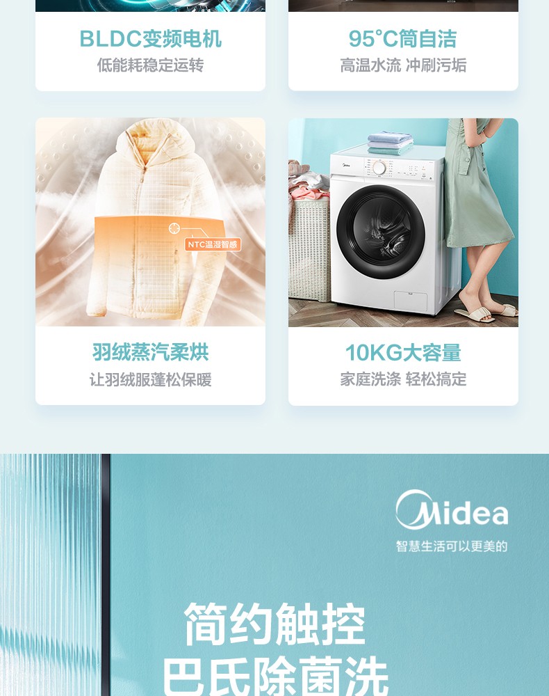 【臻实惠】美的(Midea)10公斤滚筒洗衣机全自动家用洗烘一体机 智能变频大容量 羽绒蒸汽柔烘干低噪以旧换新 MD100V11D