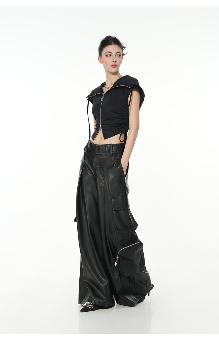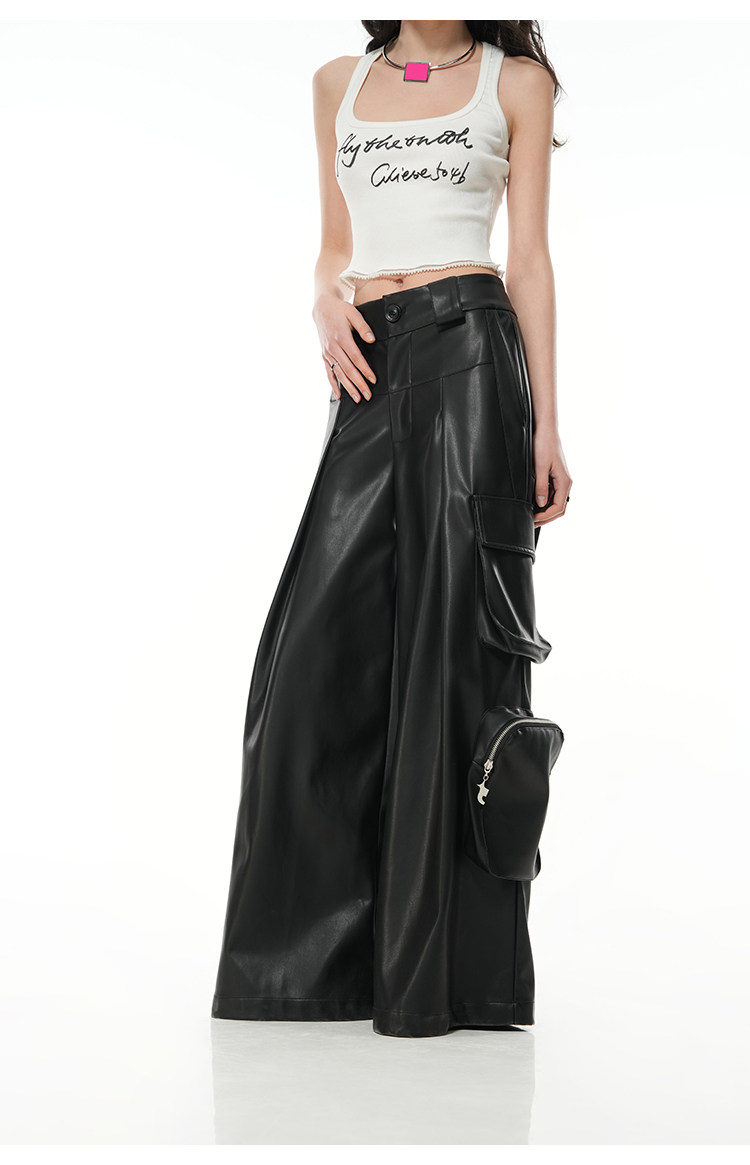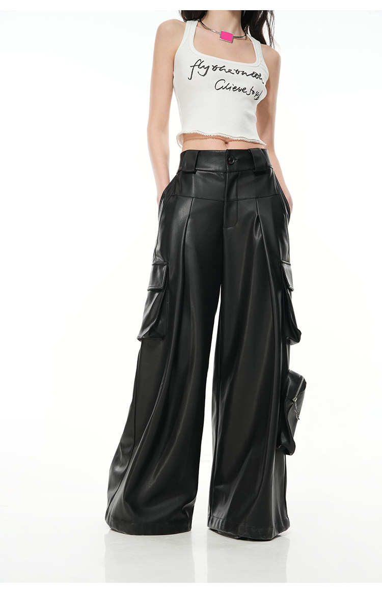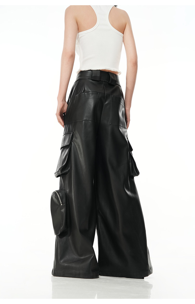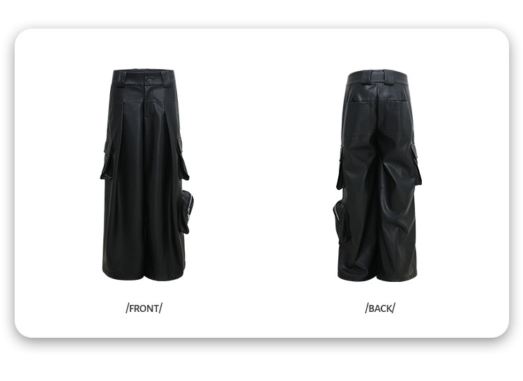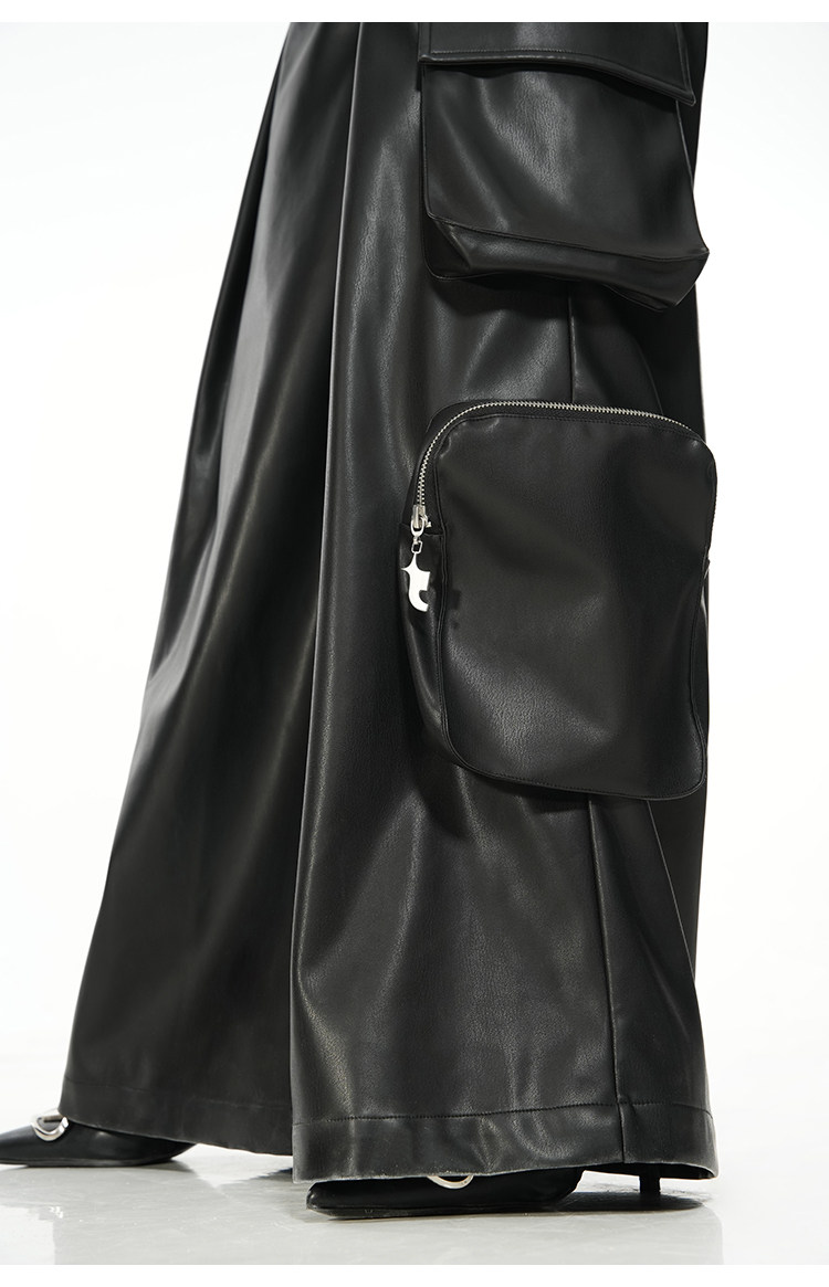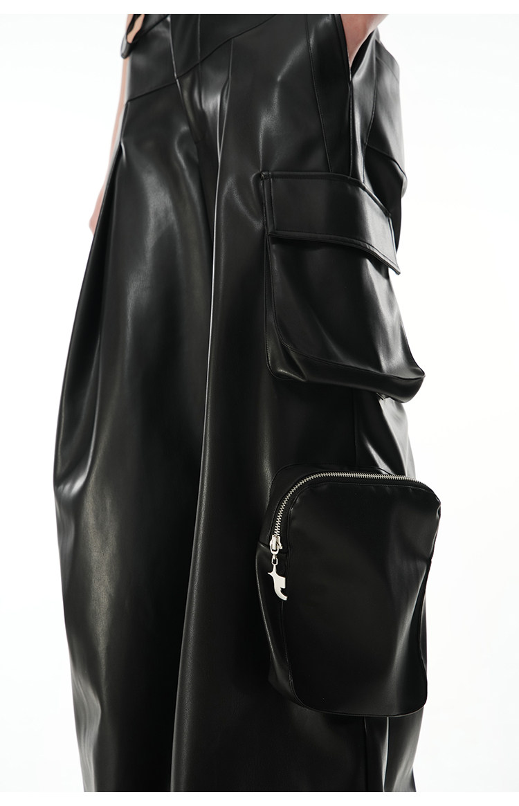 FTT Flythetruth 黑莓缪斯 多口袋工装皮裤女秋季宽松休闲阔腿裤