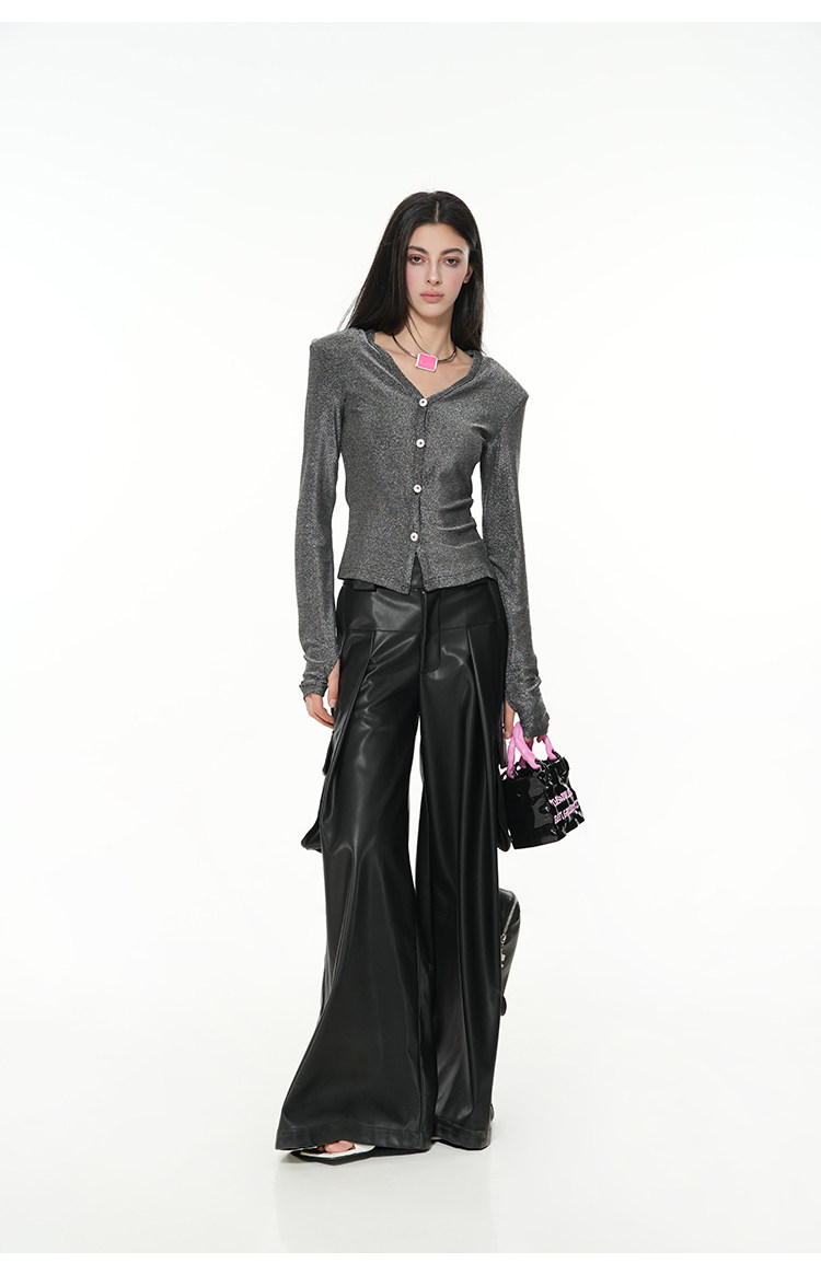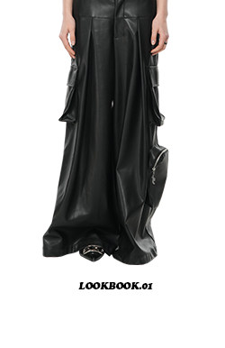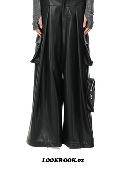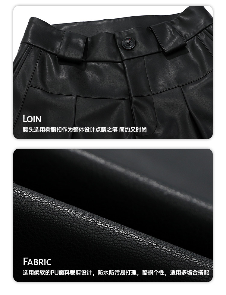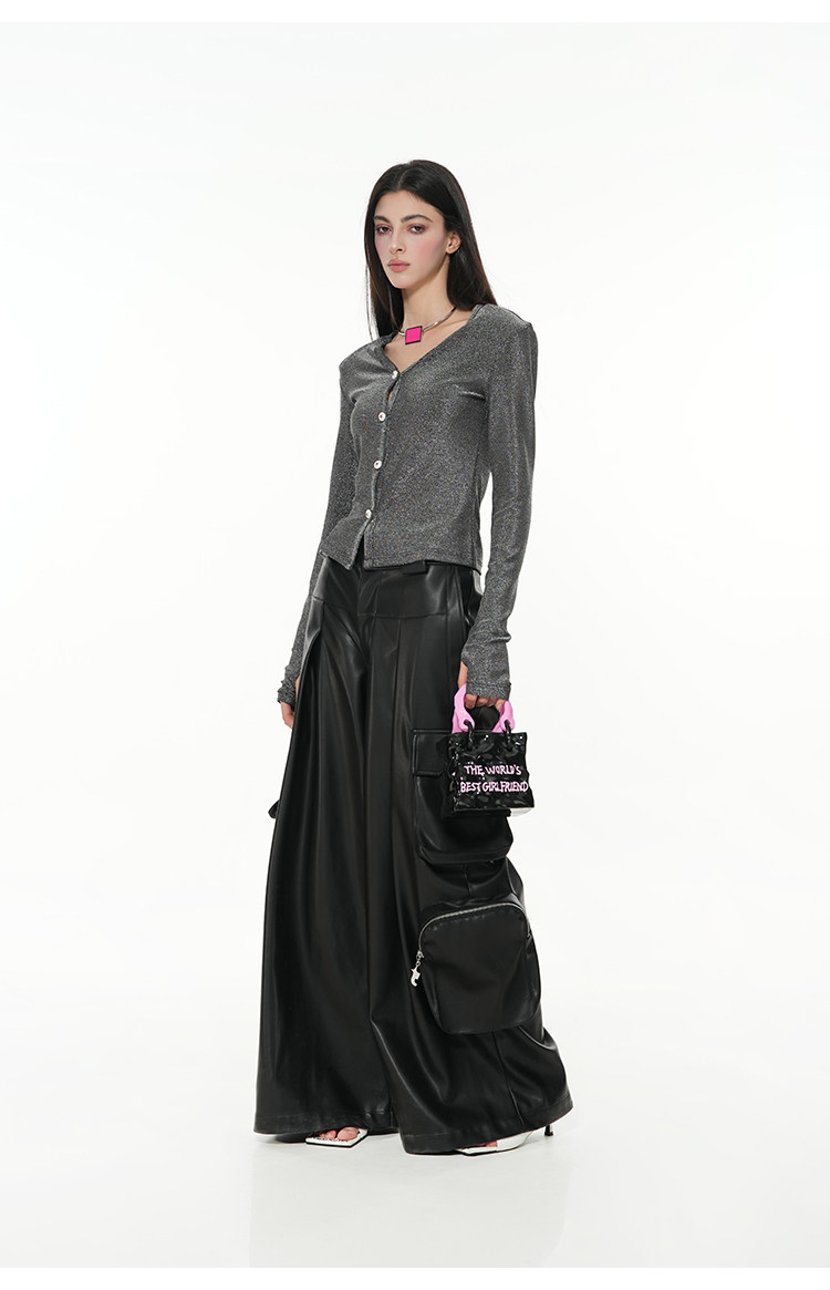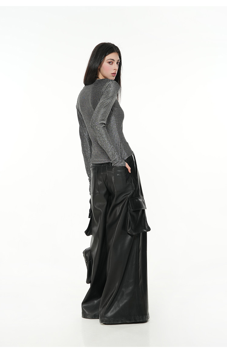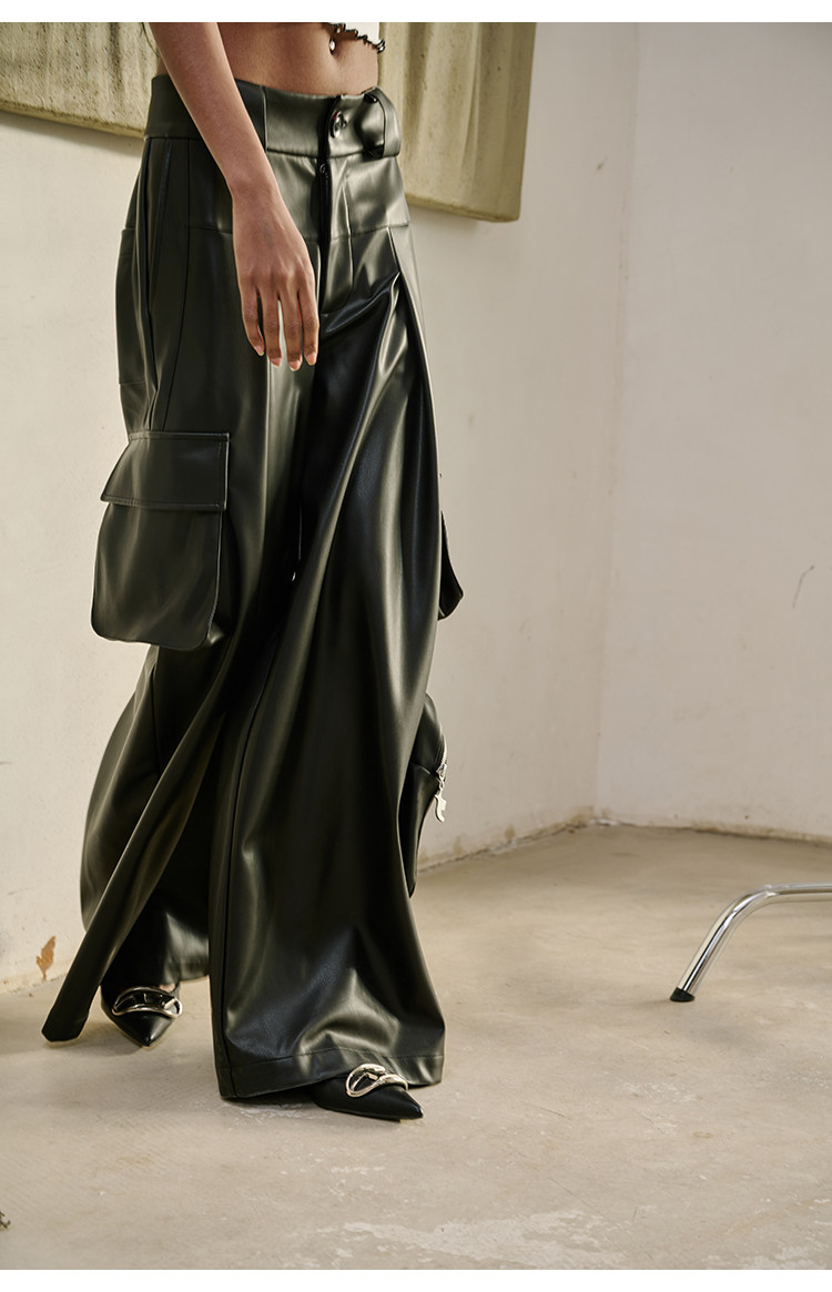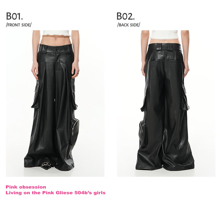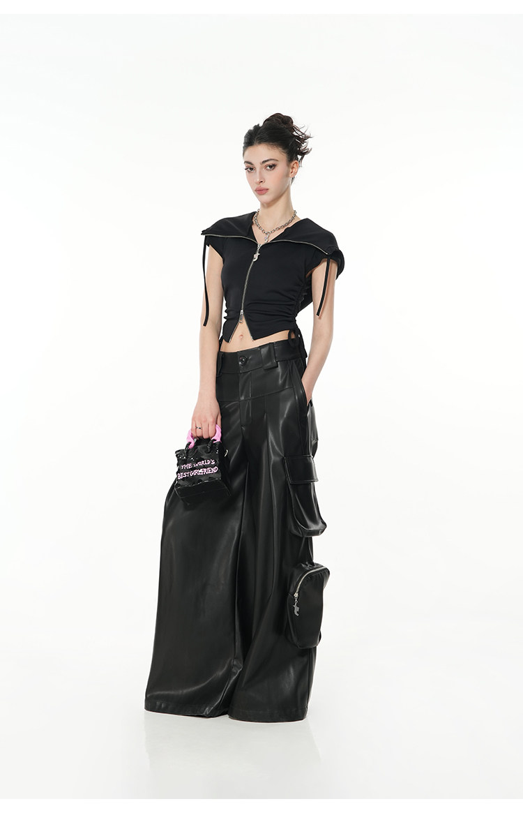 FTT Flythetruth 黑莓缪斯 多口袋工装皮裤女秋季宽松休闲阔腿裤