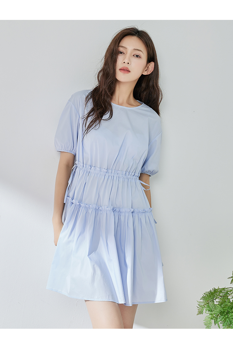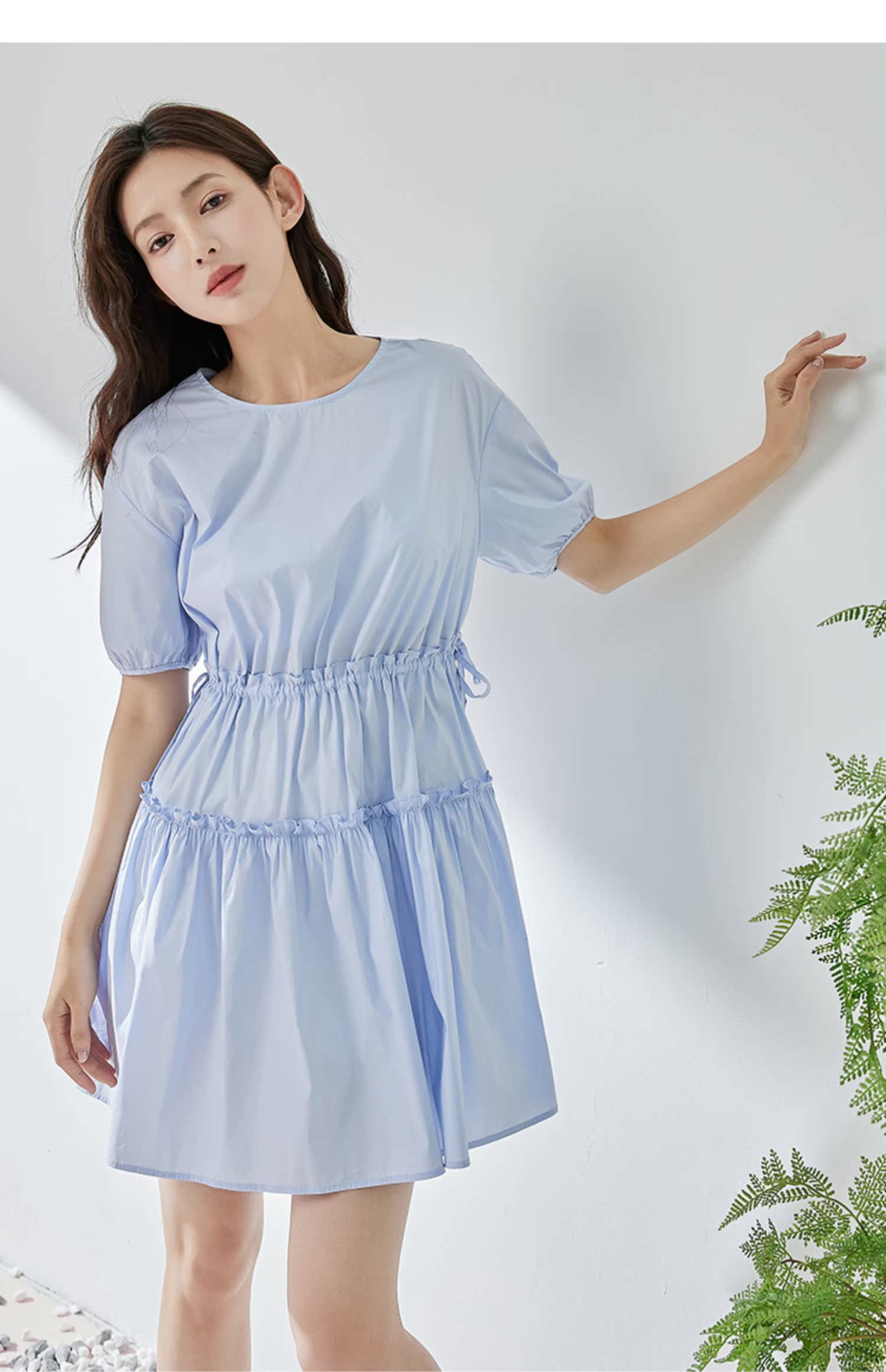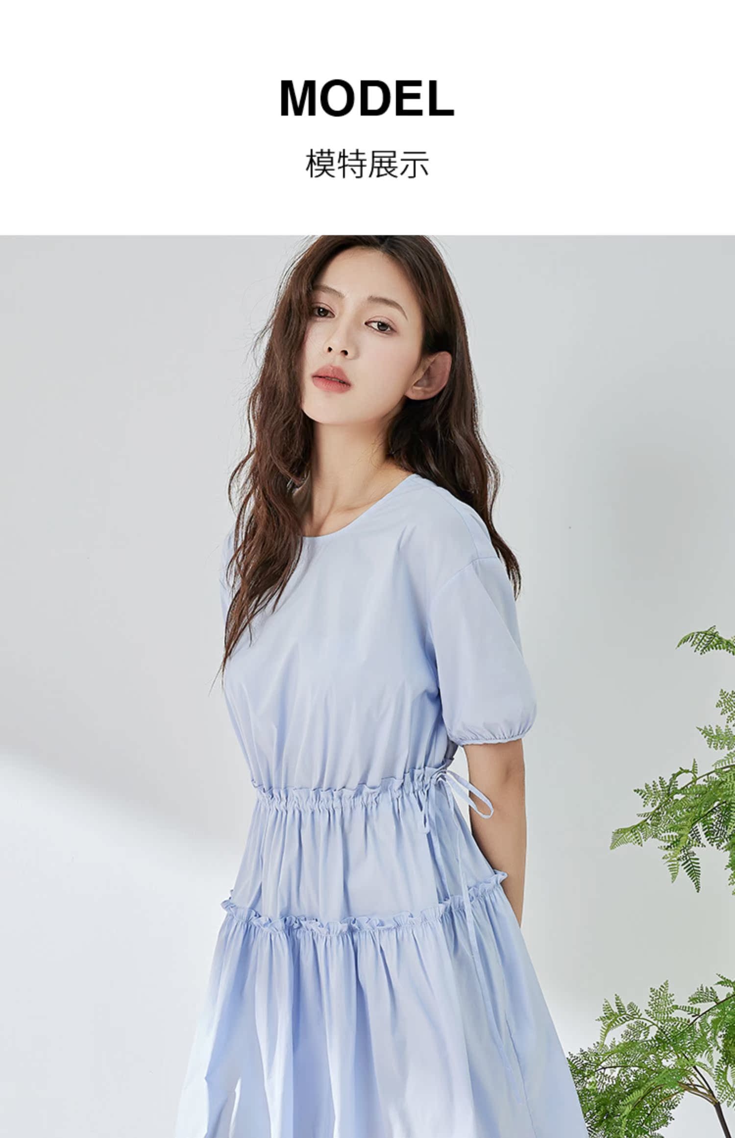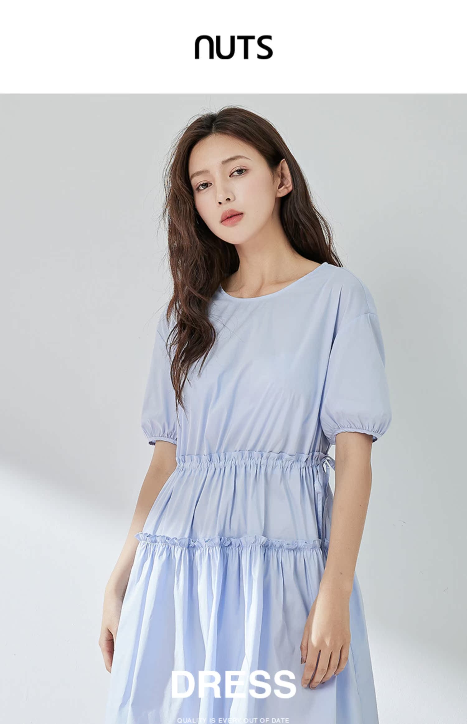 NUTS夏季新款甜美叠层圆领短袖女装连衣裙高腰显瘦324102005B