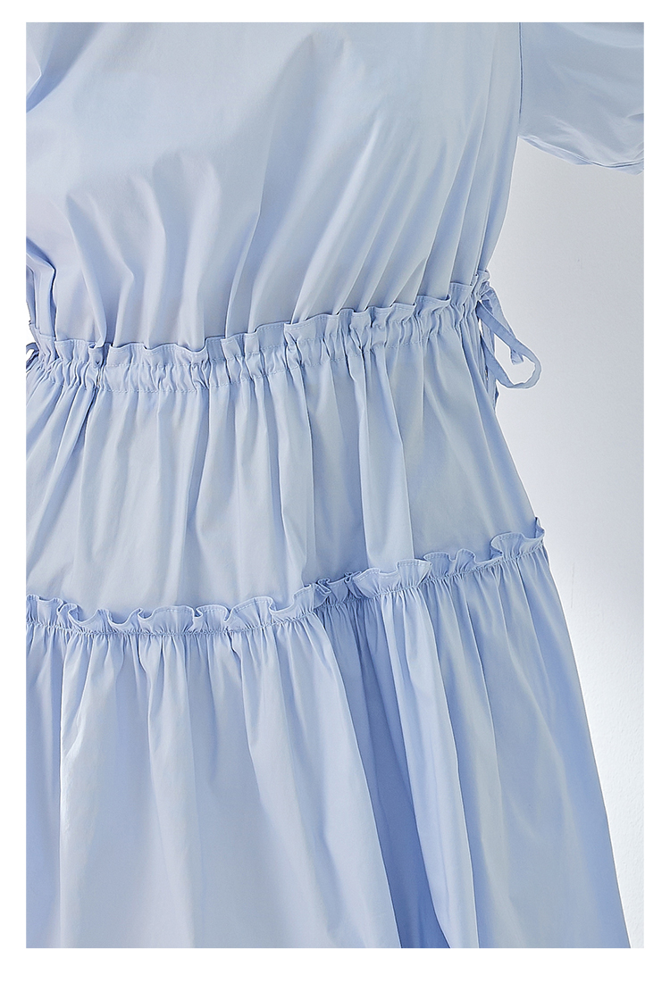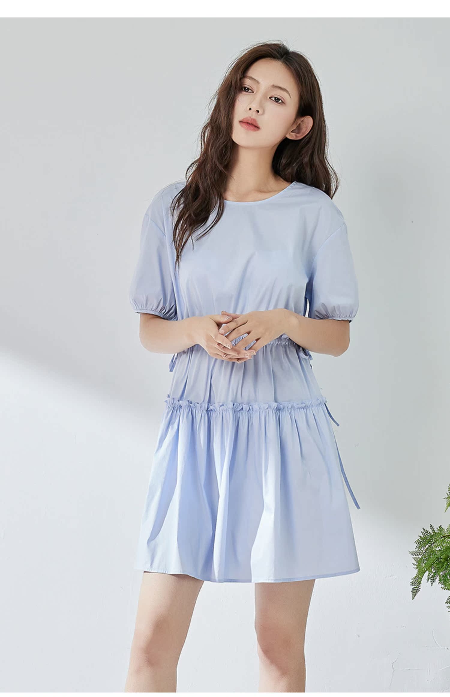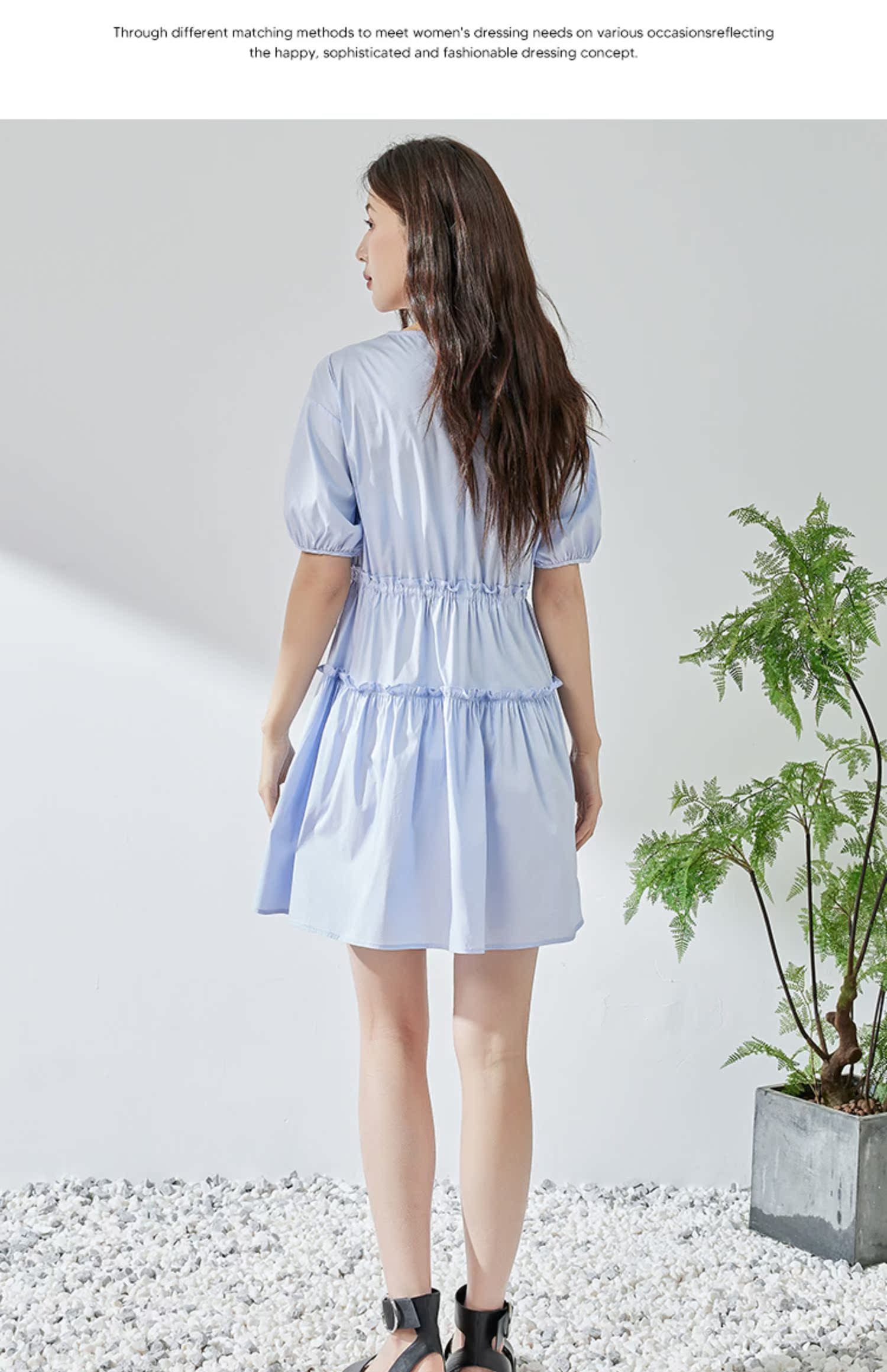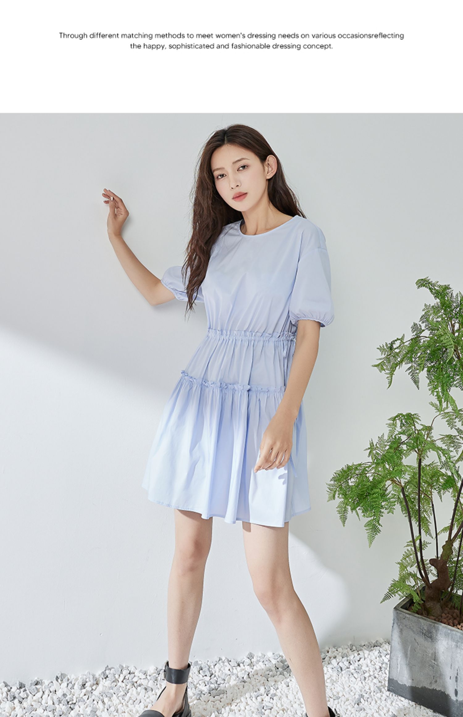 NUTS夏季新款甜美叠层圆领短袖女装连衣裙高腰显瘦324102005B