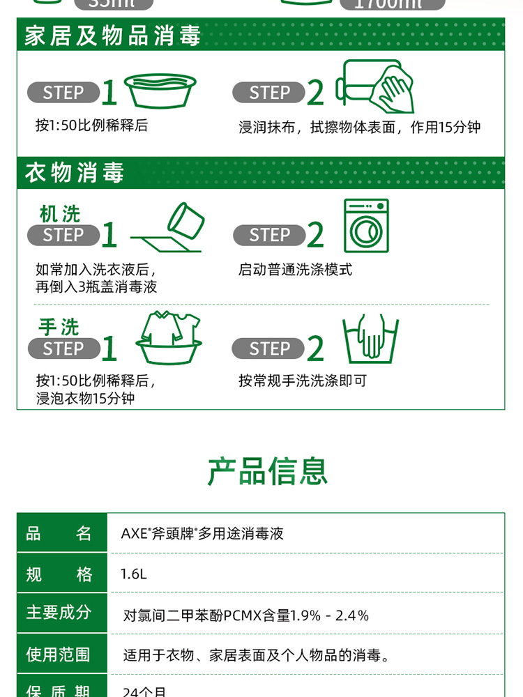 【分仓直发包邮】AXE斧头多用途消毒液1.6L