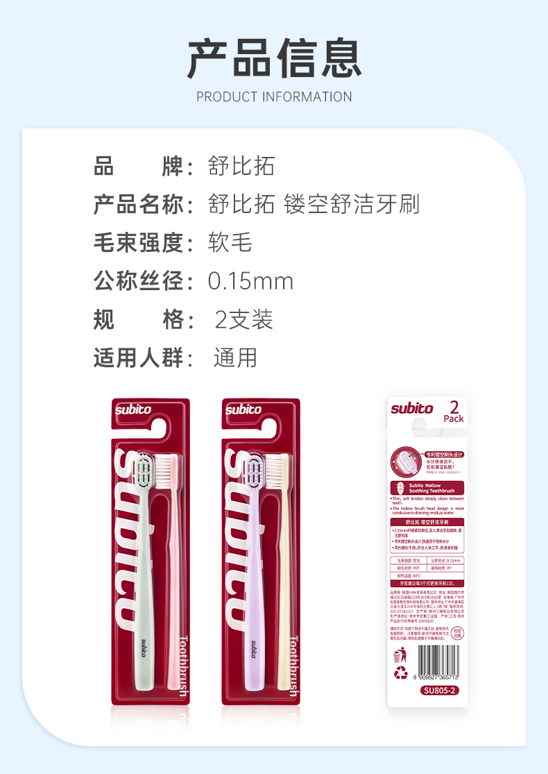 舒比拓镂空舒洁牙刷2支装-5713速干 细软 深洁 专属镂空设计不积水