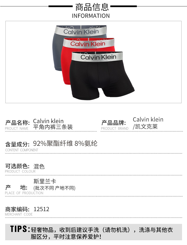 【超惠秒】Clavin Klein CK男士新晋款三件装弹力舒适内裤 12512
