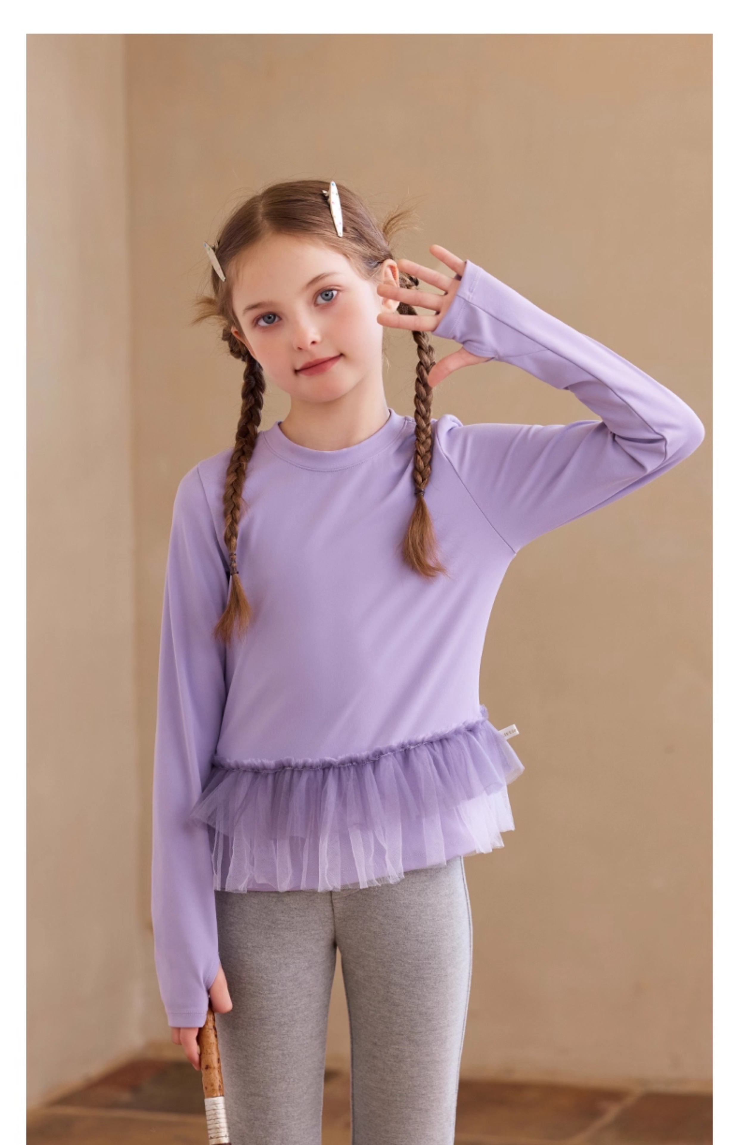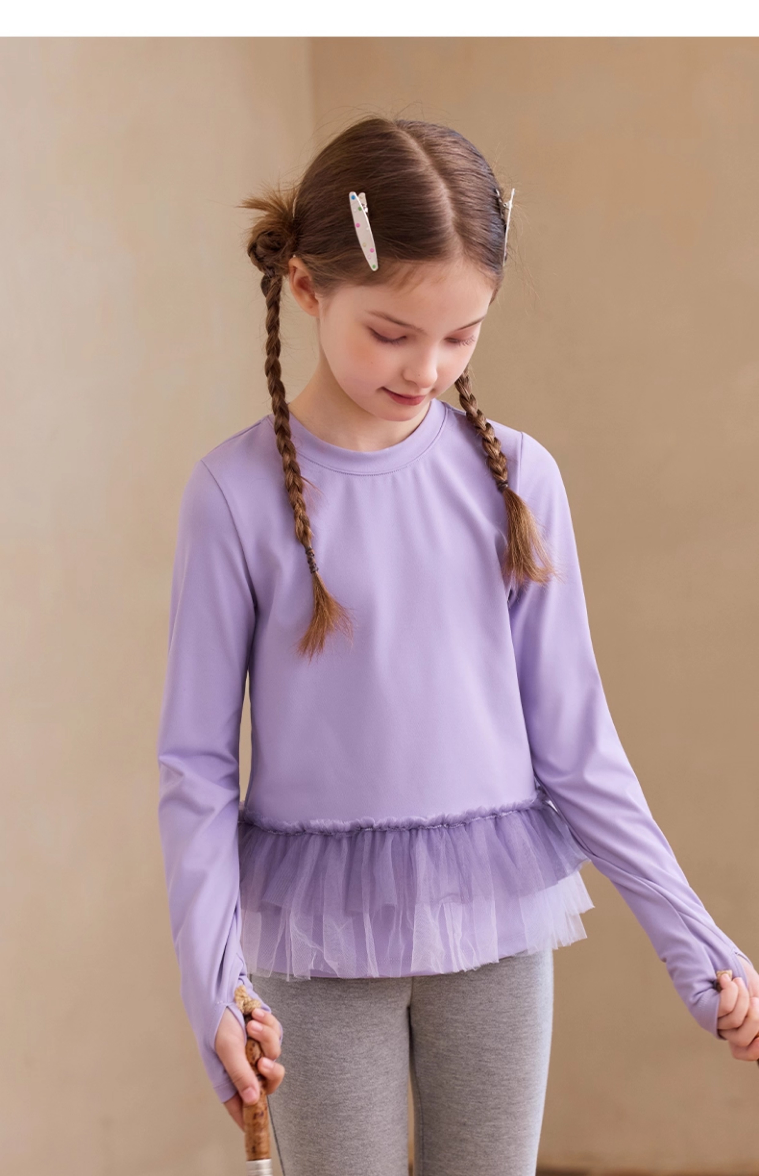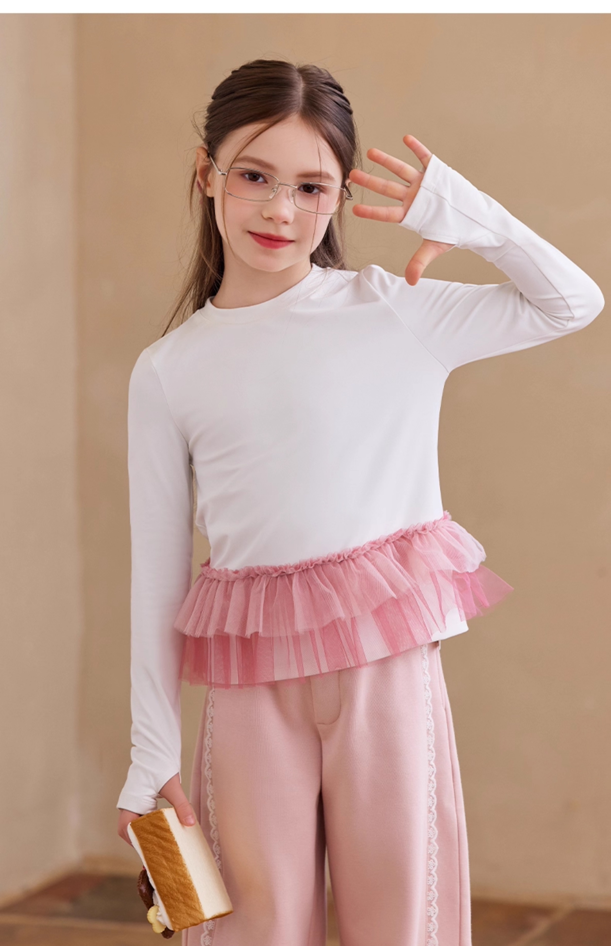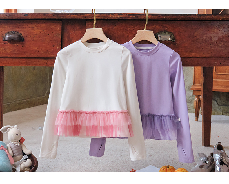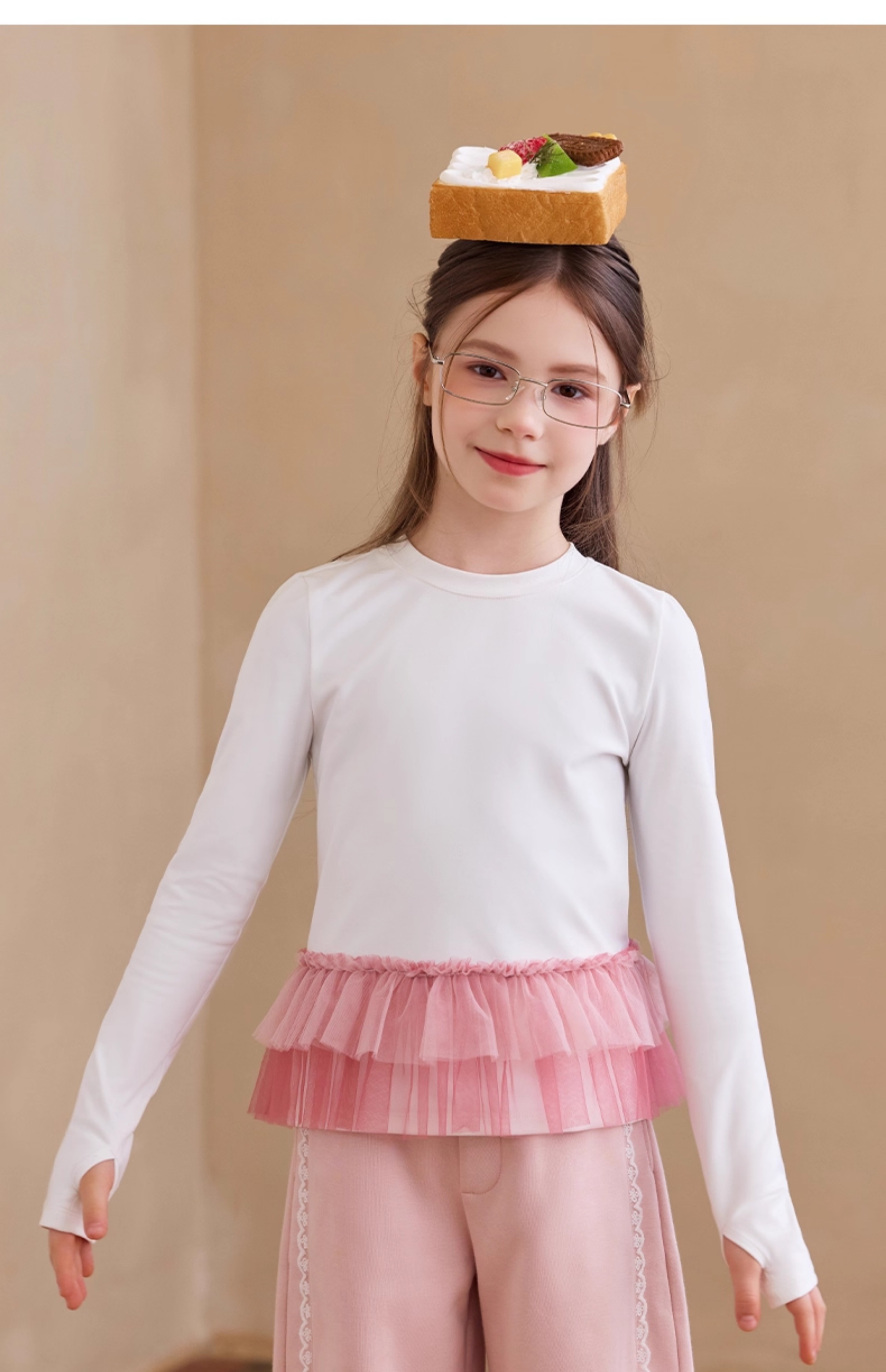 【云优选】Little Naive女童长袖T恤春秋新款拼接网纱甜美上衣儿童弹力T恤