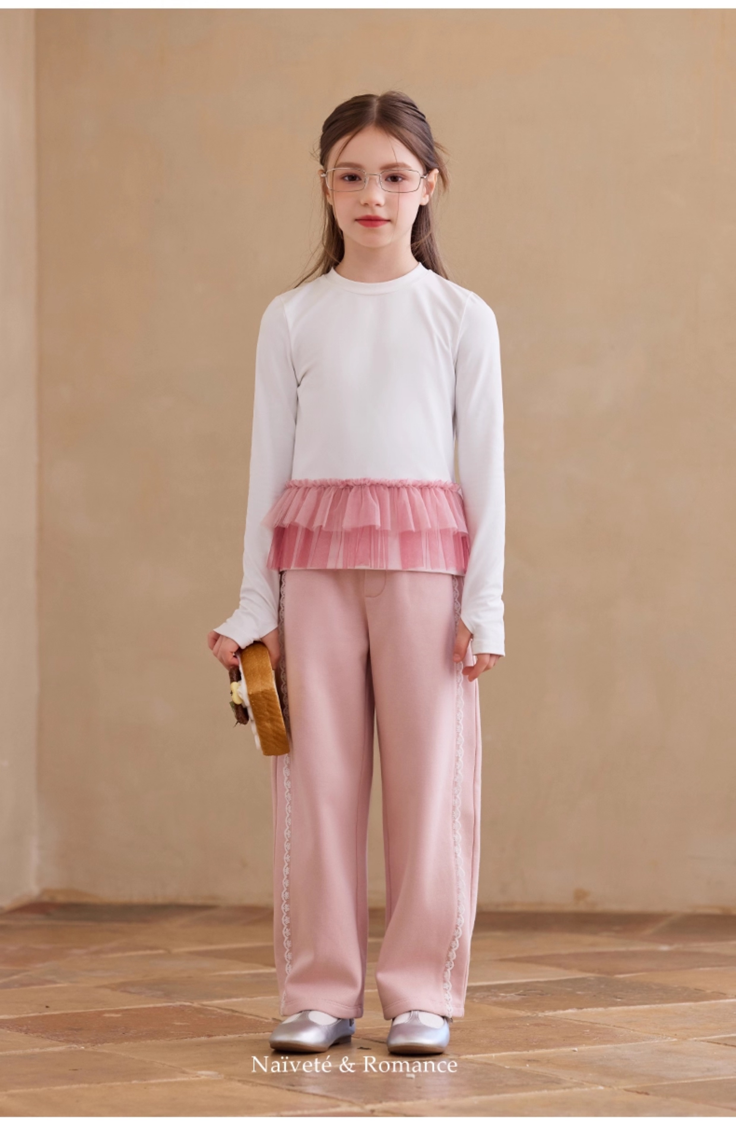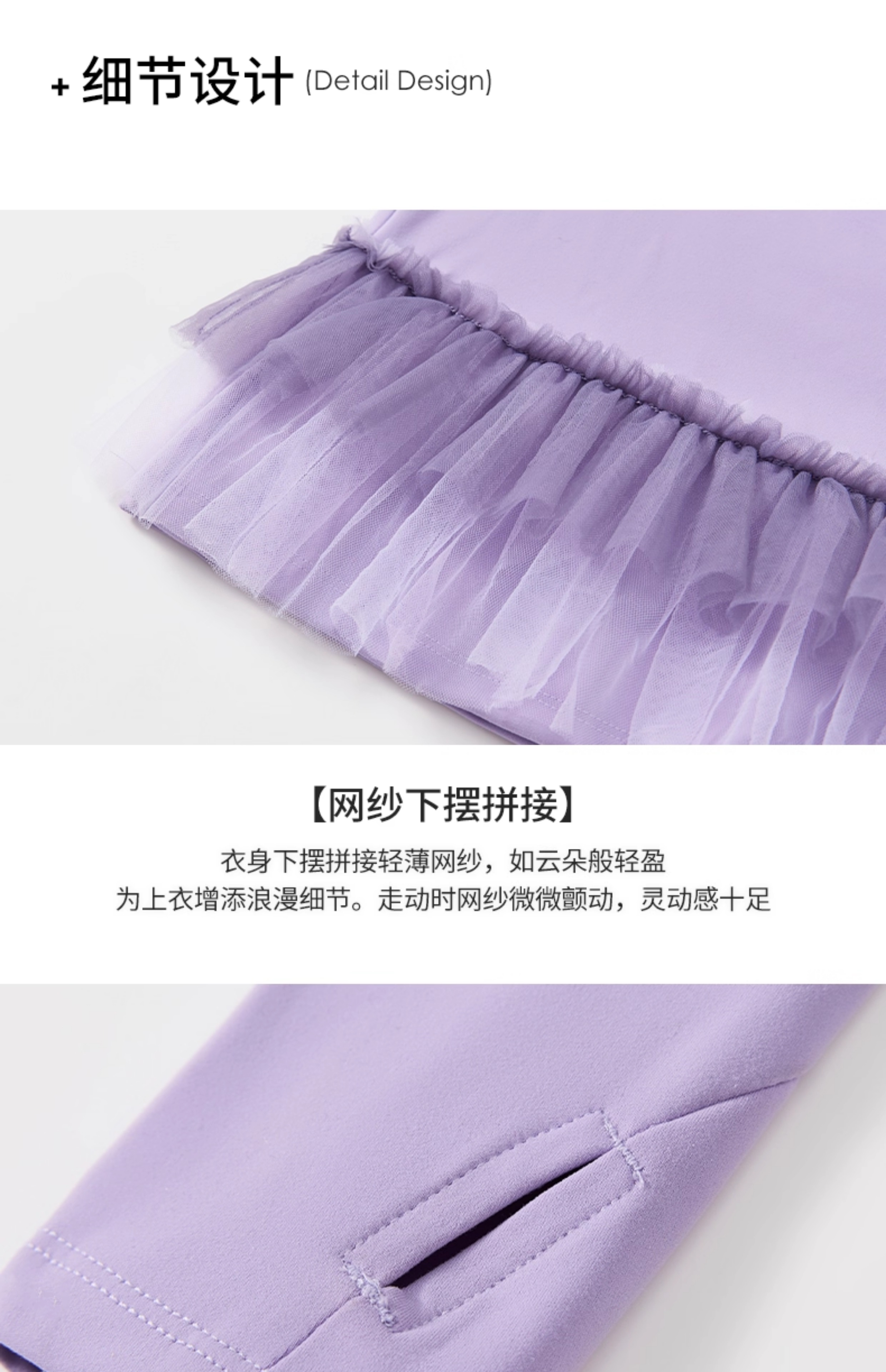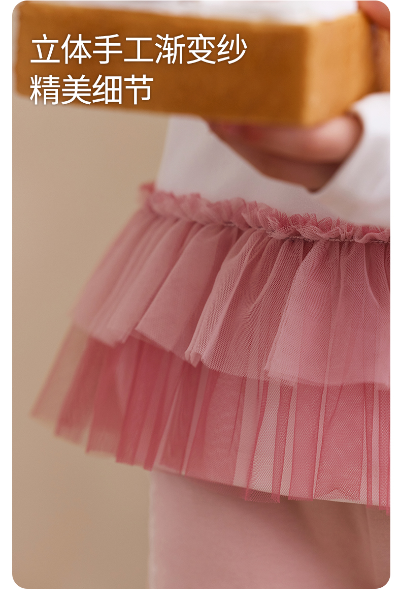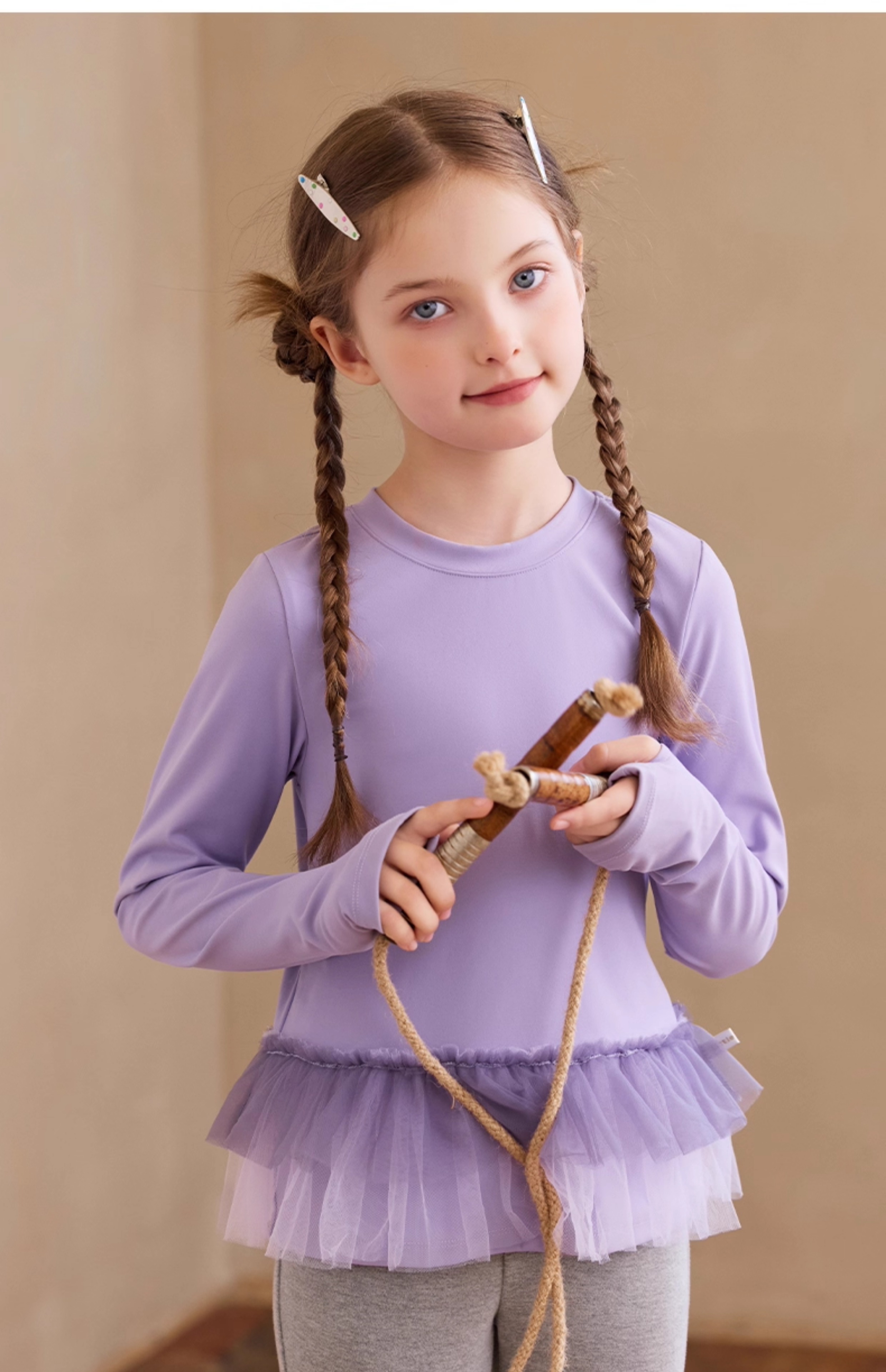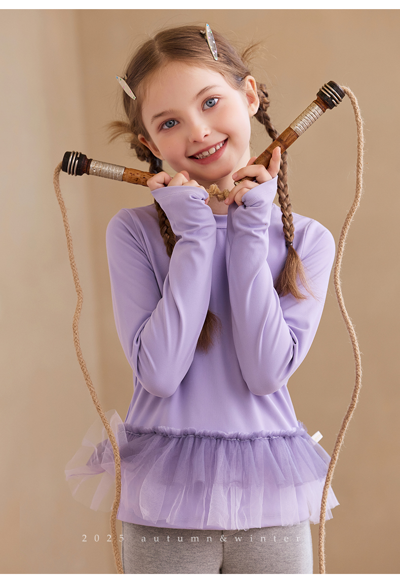 【云优选】Little Naive女童长袖T恤春秋新款拼接网纱甜美上衣儿童弹力T恤