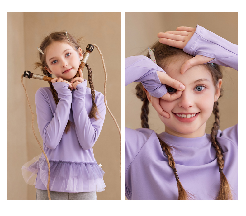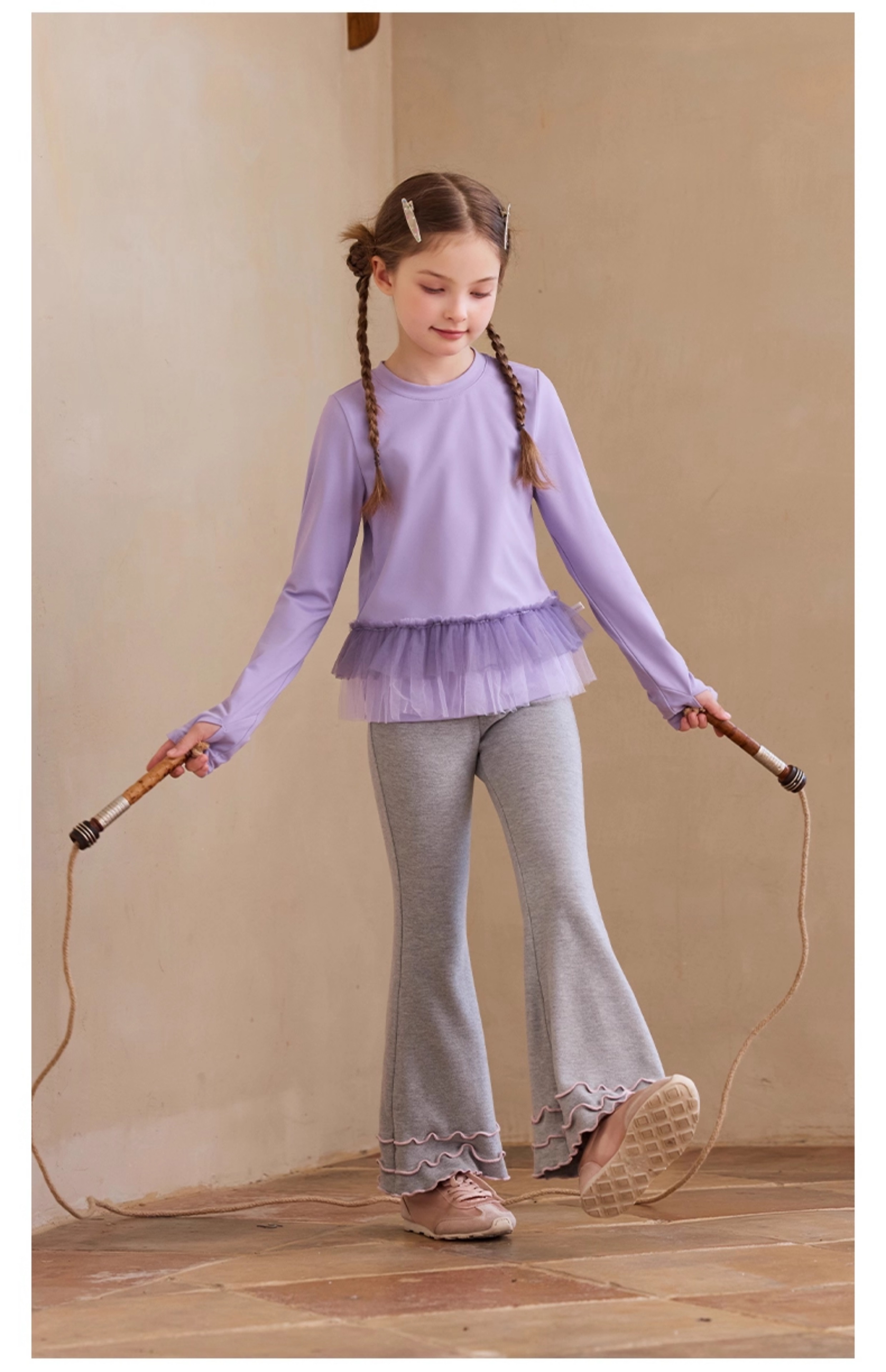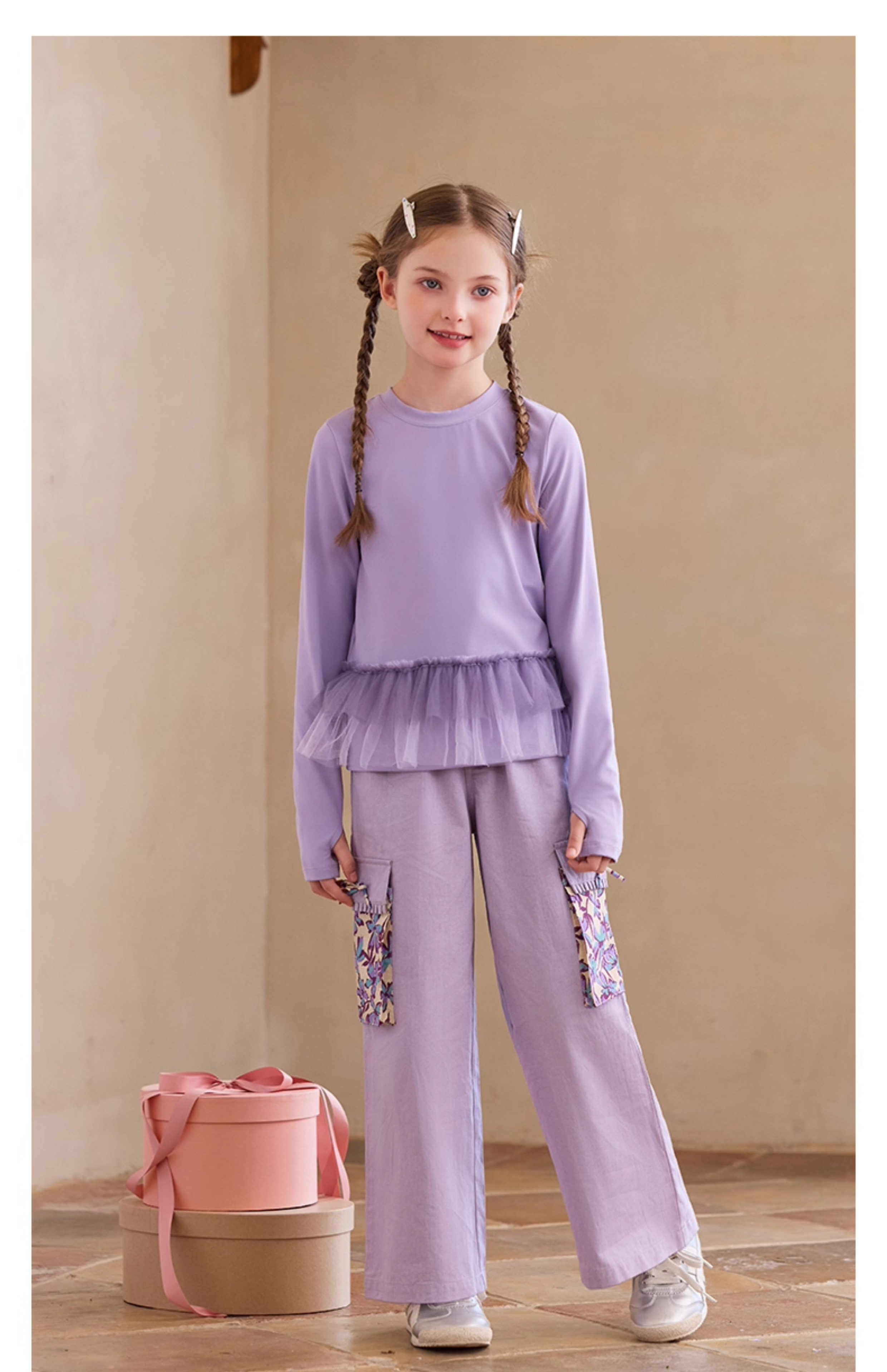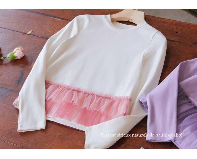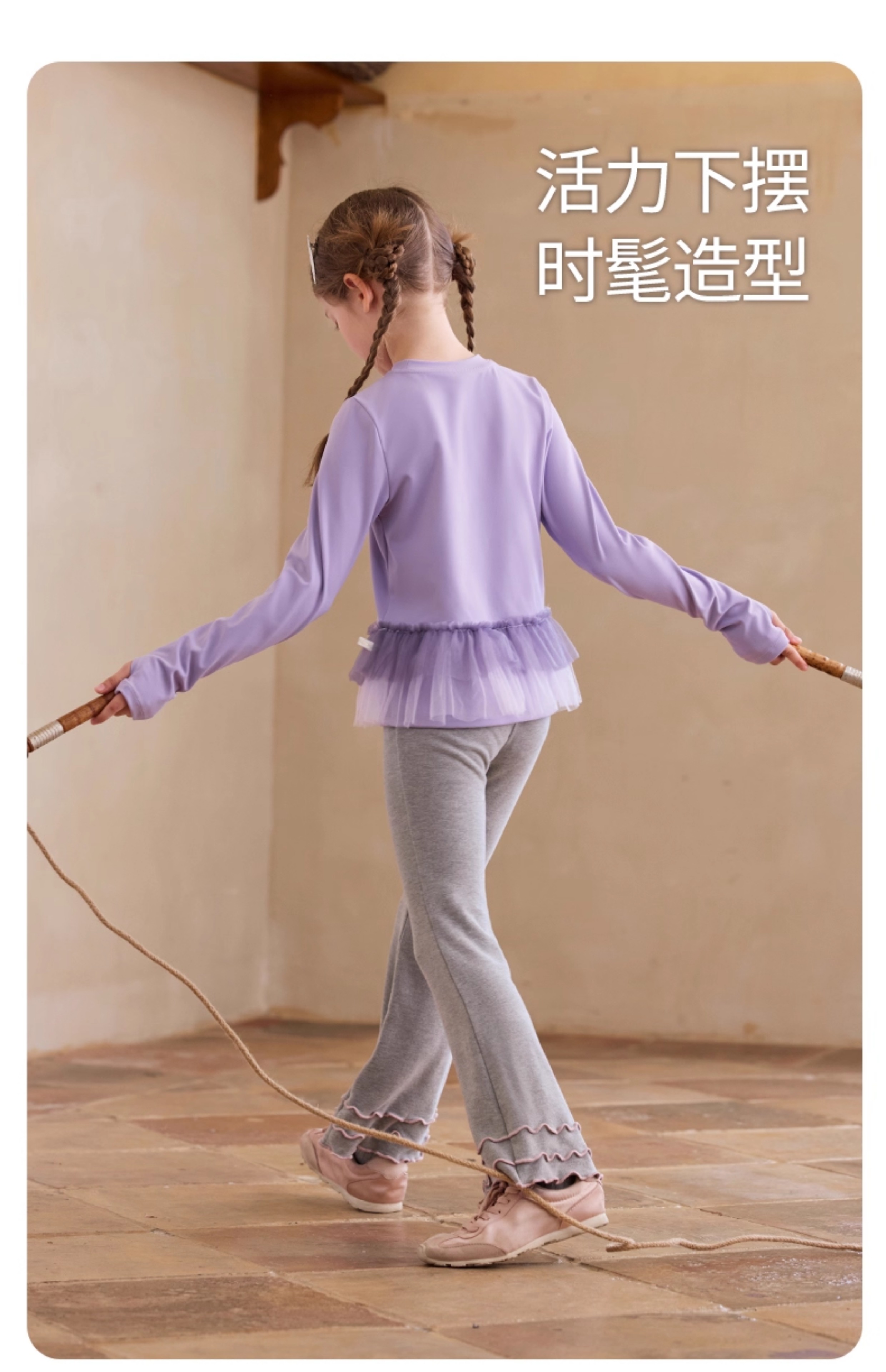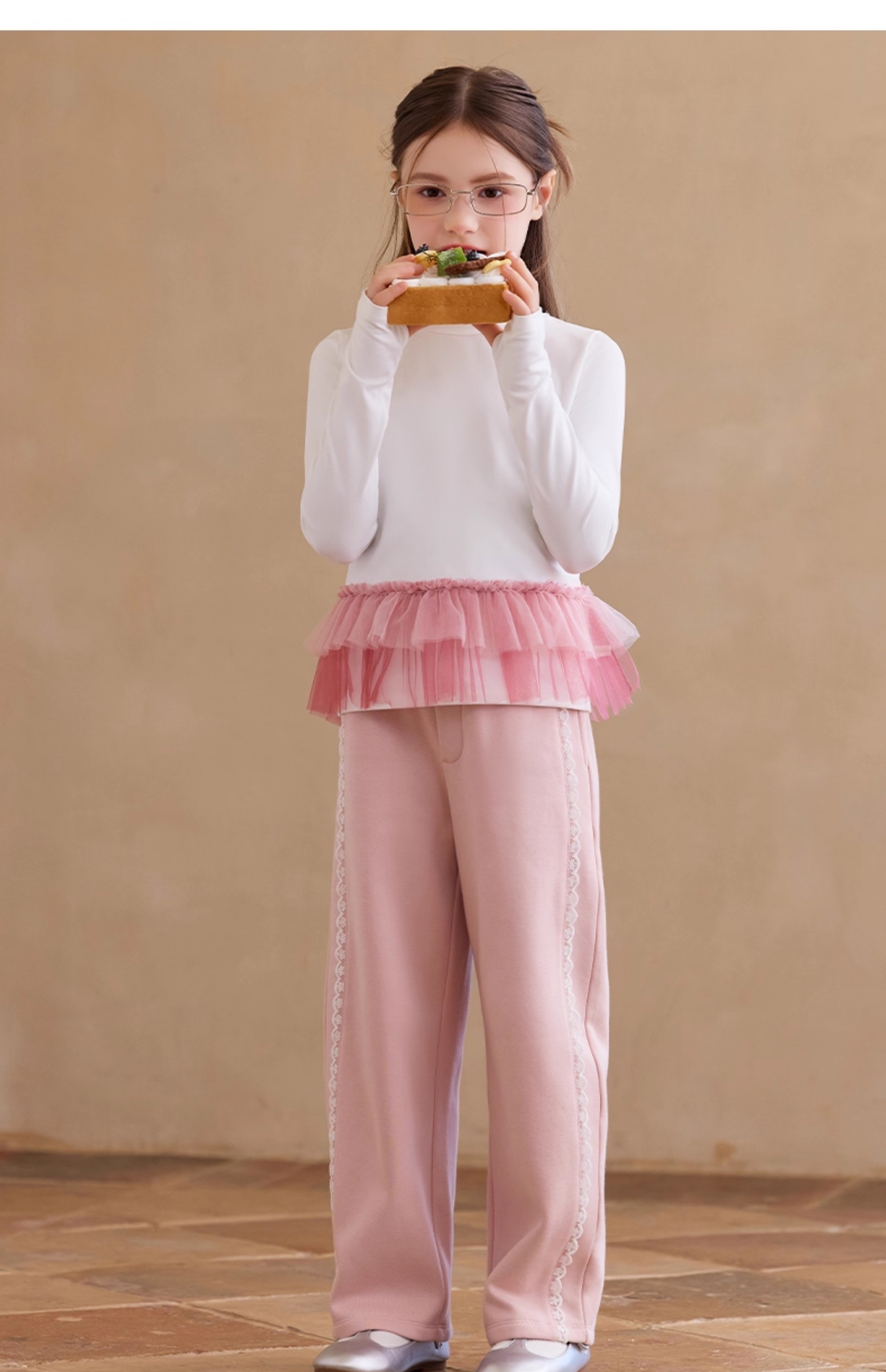 【云优选】Little Naive女童长袖T恤春秋新款拼接网纱甜美上衣儿童弹力T恤