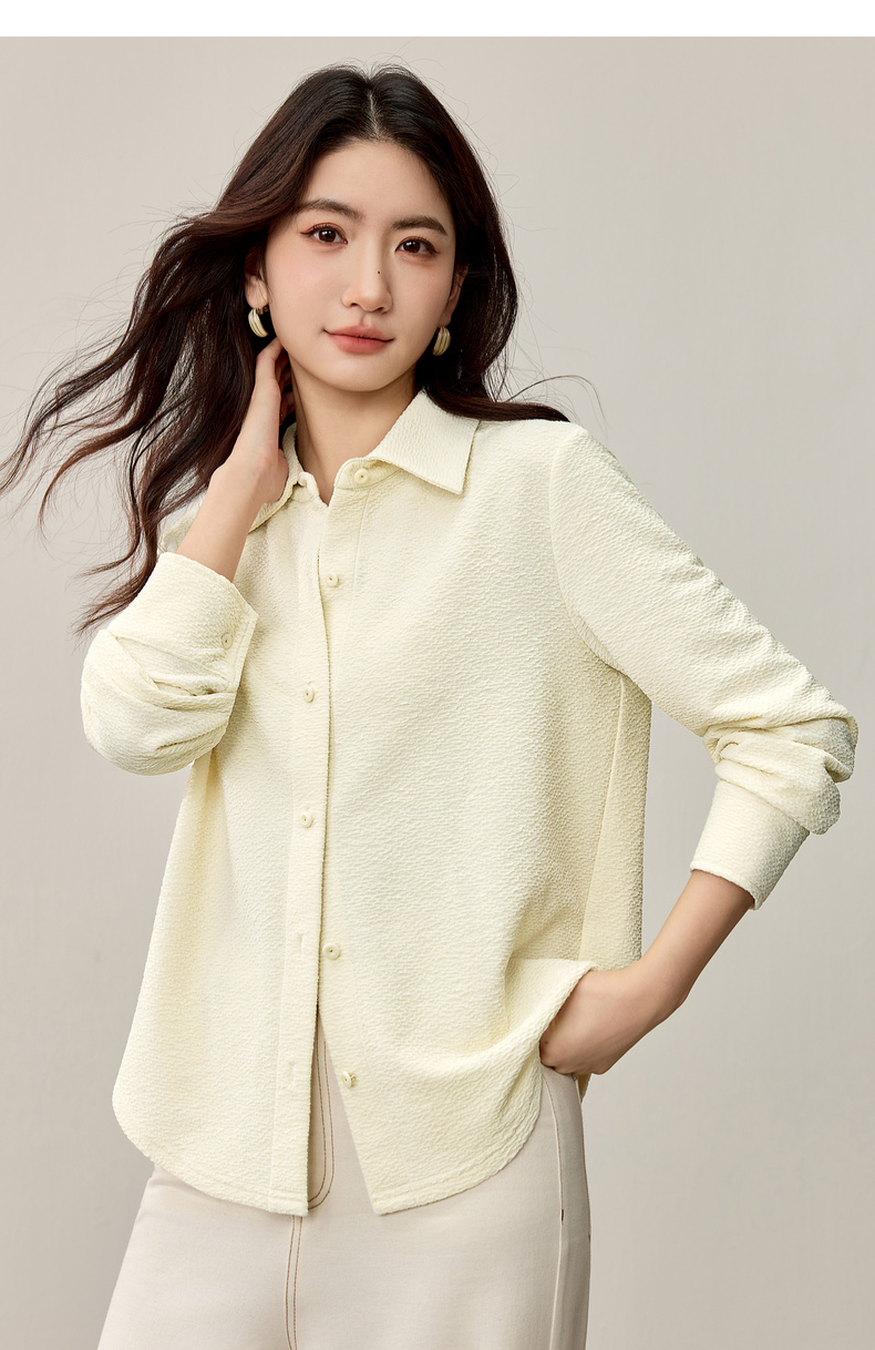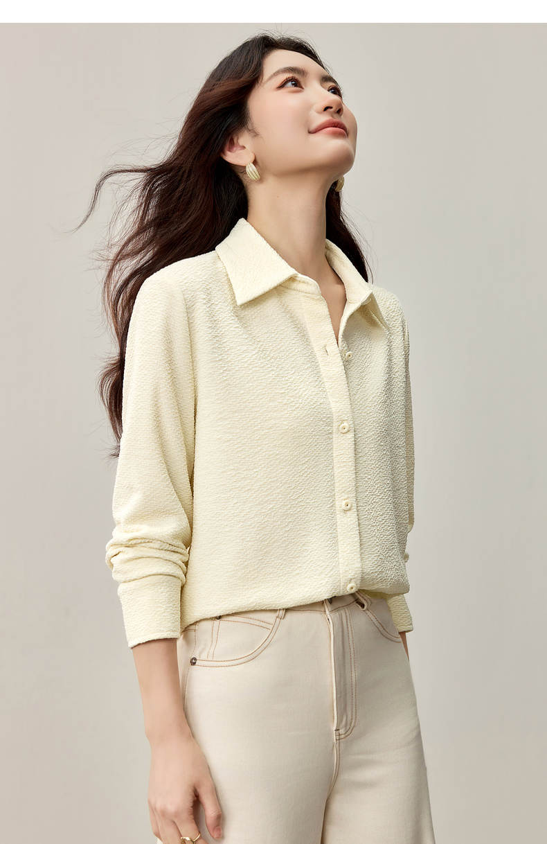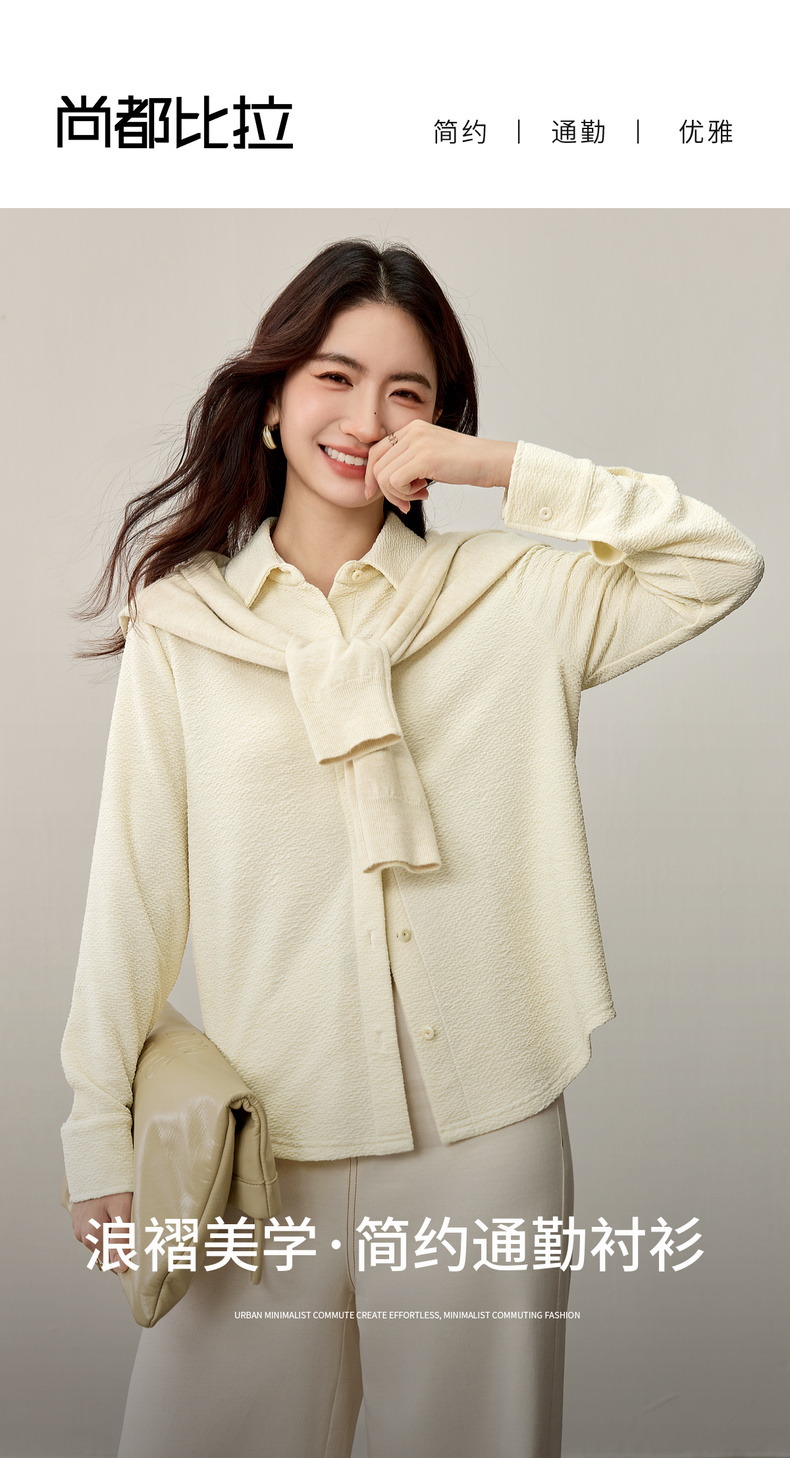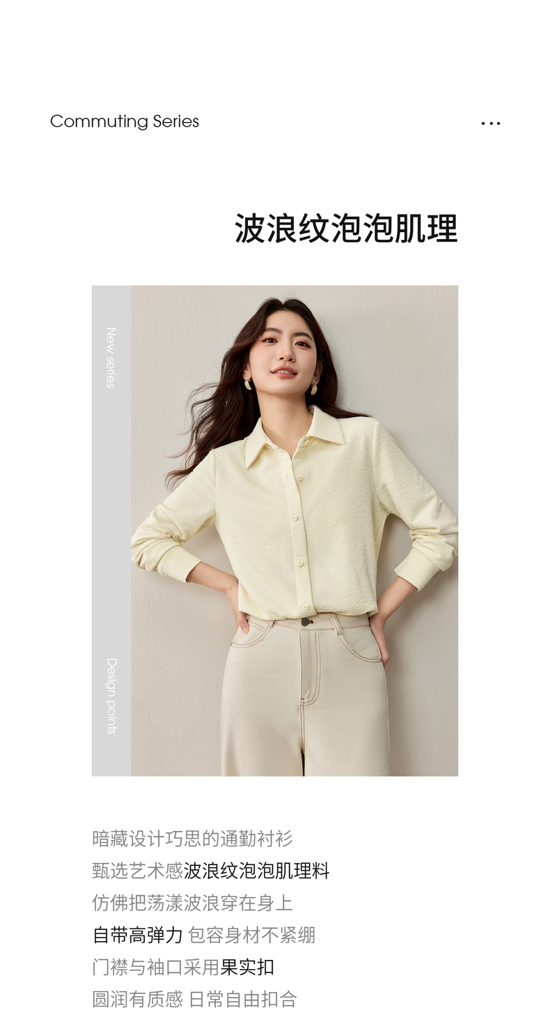 【内购】【浪褶美学】简约个性通勤翻领果实扣波浪纹泡泡肌理弹力长袖衬衫-153C80428