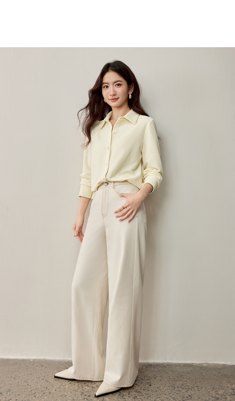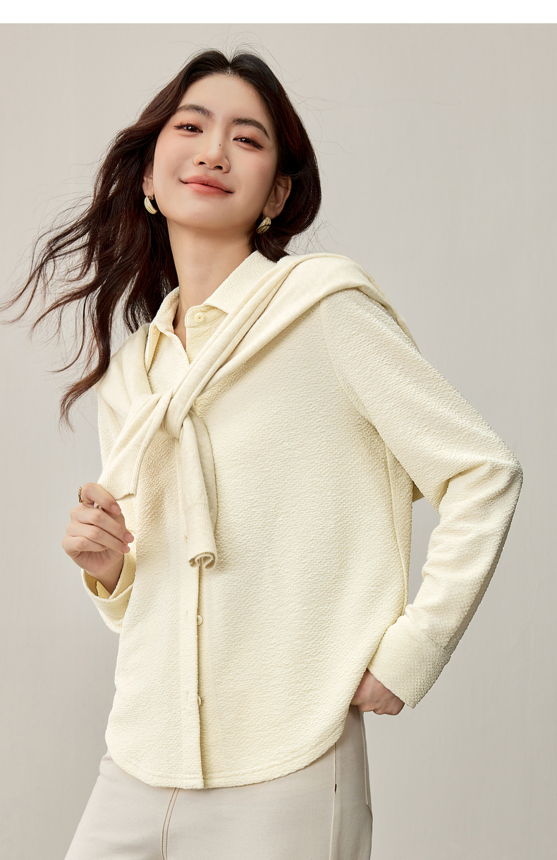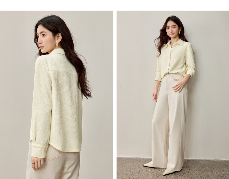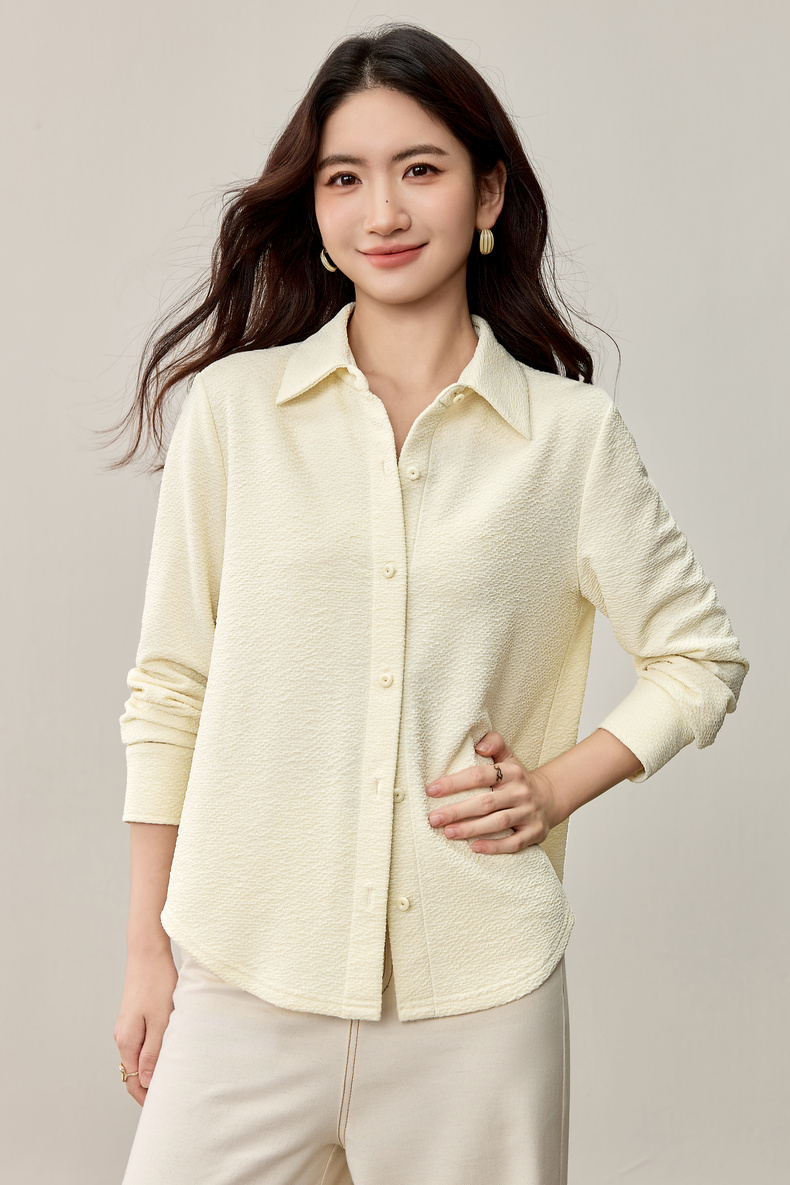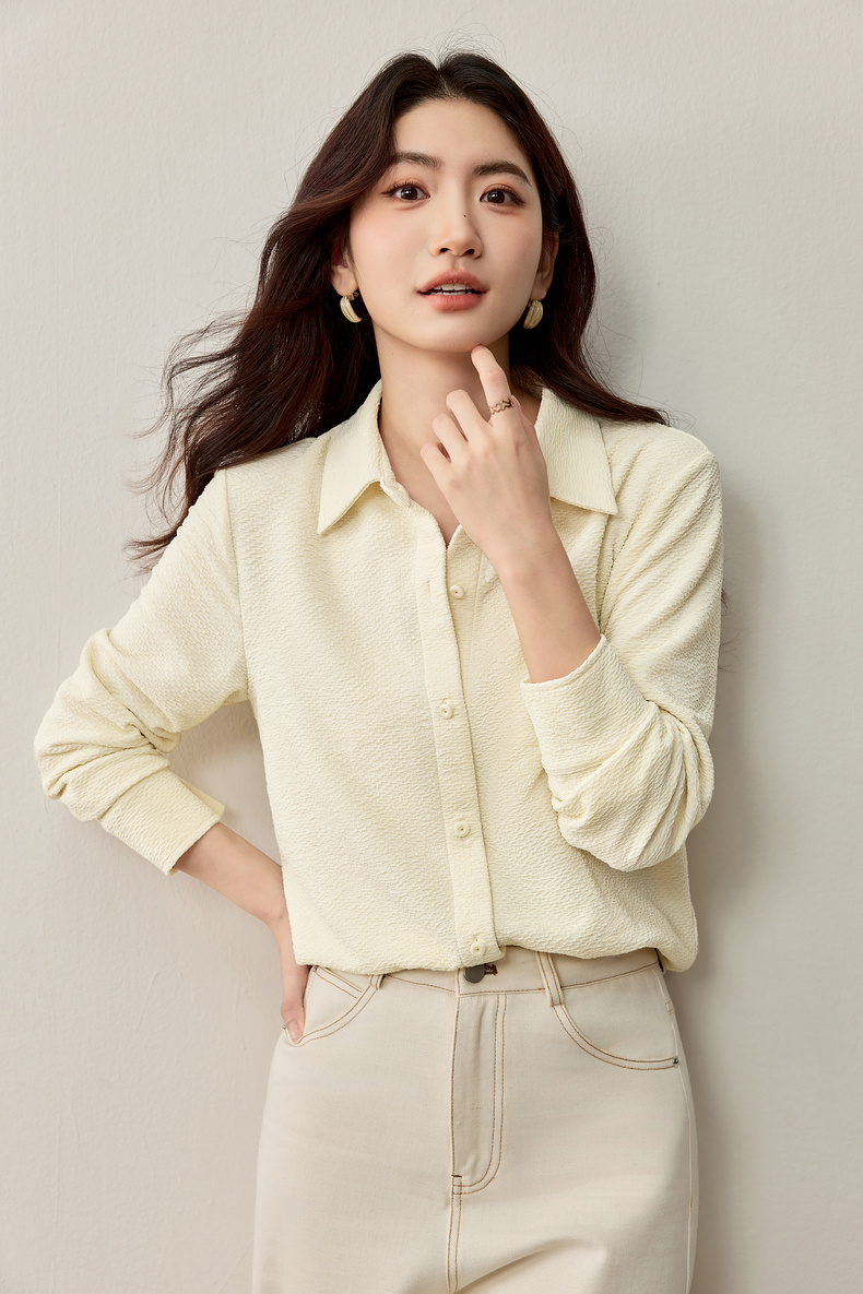 【内购】【浪褶美学】简约个性通勤翻领果实扣波浪纹泡泡肌理弹力长袖衬衫-153C80428