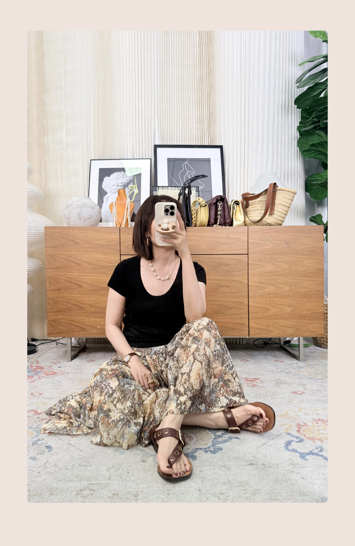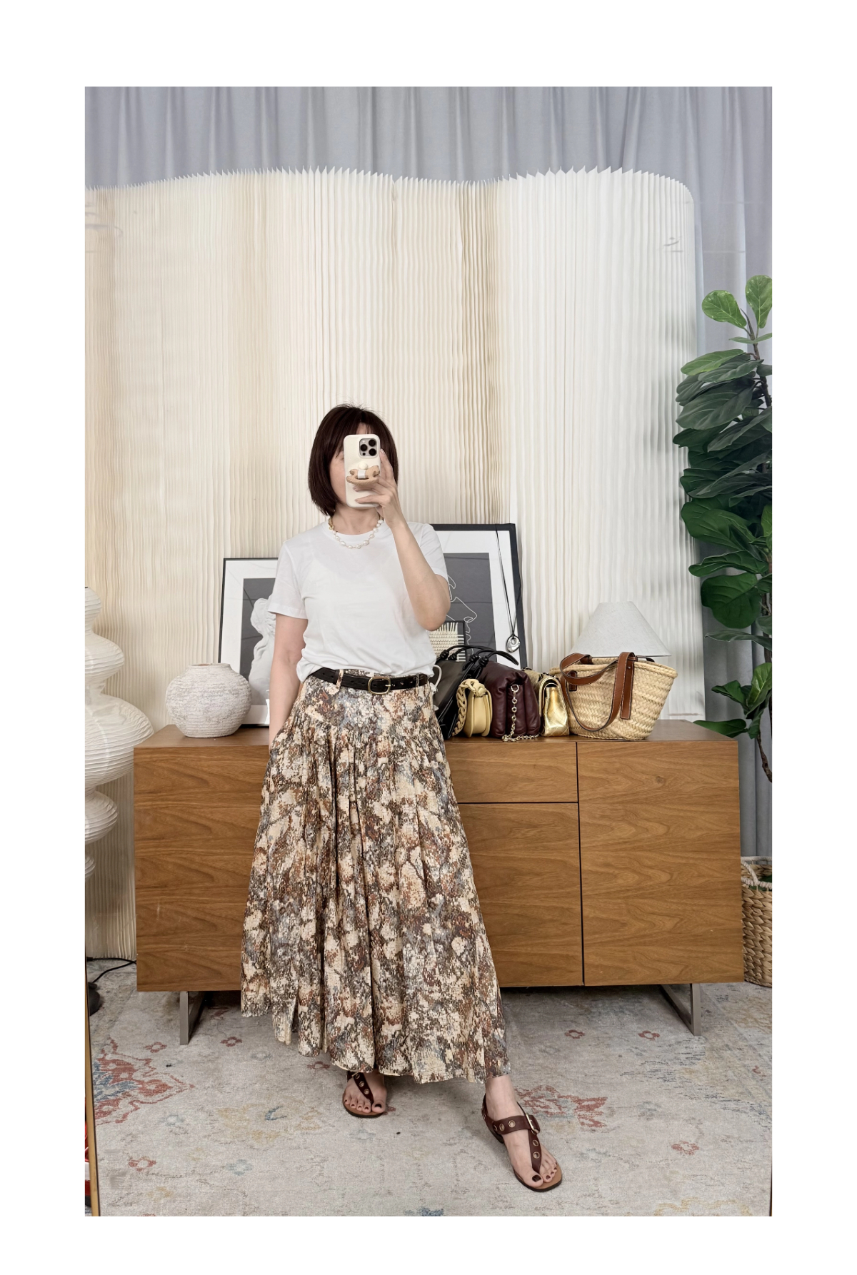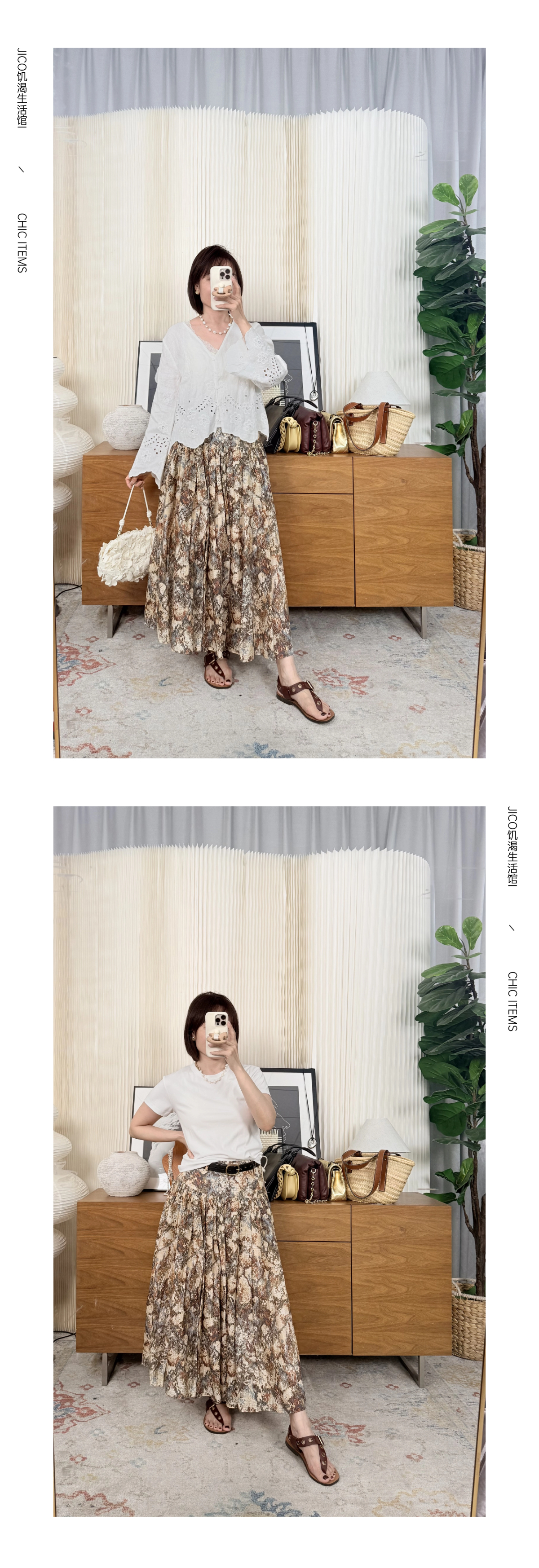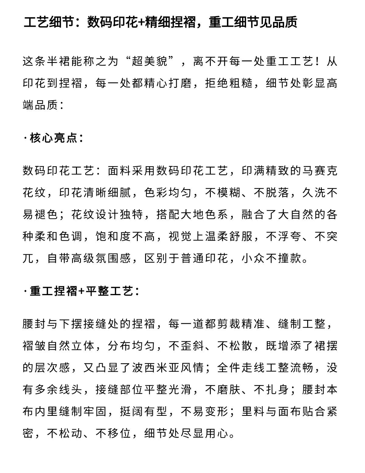 品位不趋同 波西米亚风丝棉半裙 大地色马赛克数码印花 重工超大摆亮 法式半裙