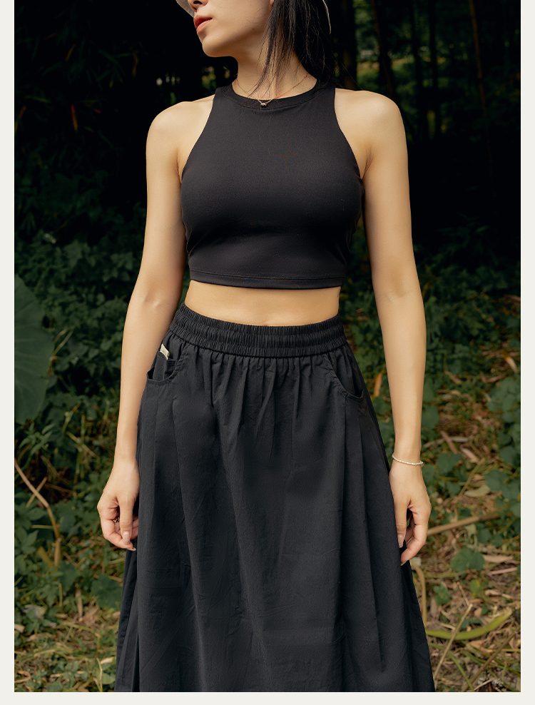 【肌理面料】一体式胸垫小圆领大露背运动背心-低强度