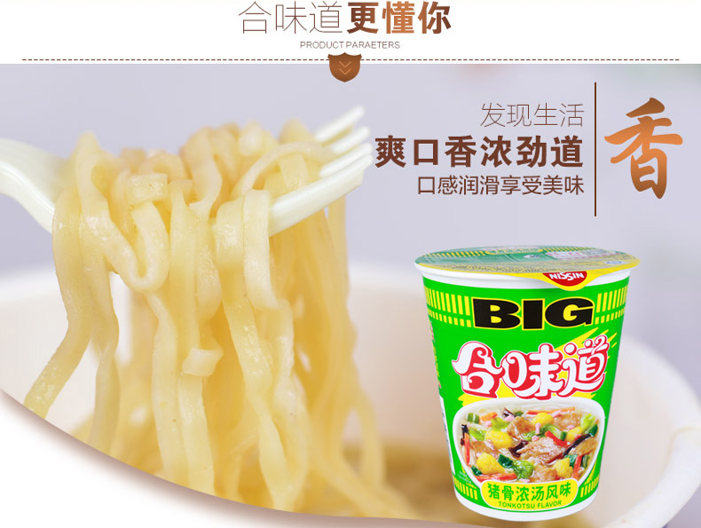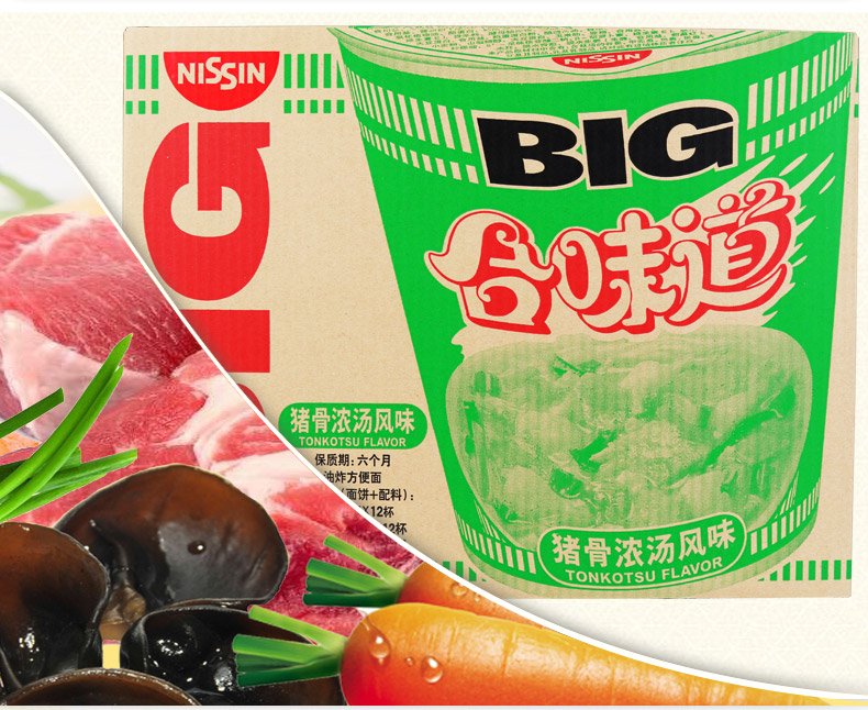 日清方便面 BIG合味道猪骨浓汤风味110g*12杯整箱装大杯日清面