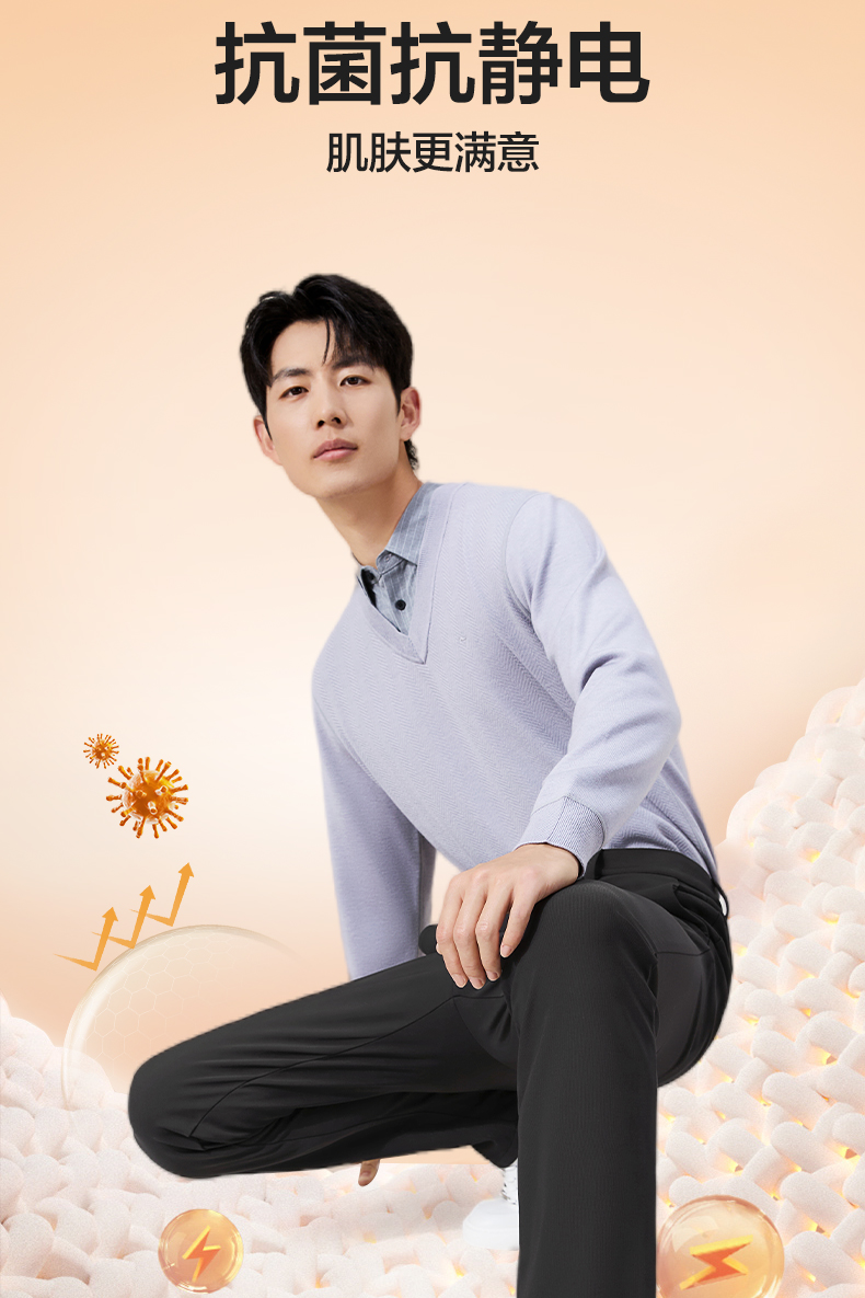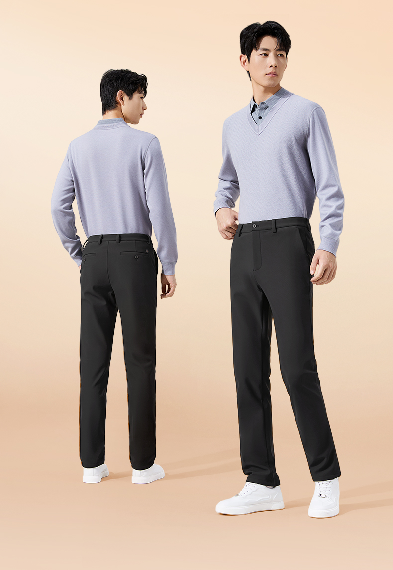 【石墨烯发热】柒牌高弹中腰直筒休闲长裤保暖抗皱针织磨毛长裤子129H70370