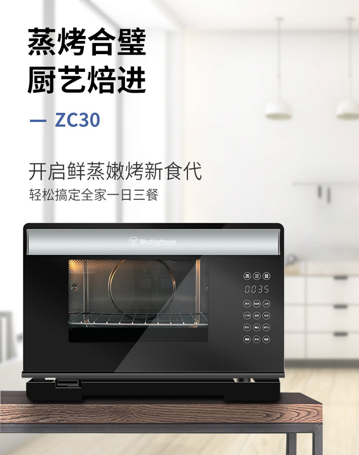 西屋WTO-ZC30蒸汽烤箱 蒸烤一体 独立温控,智能烹饪,30L大容量