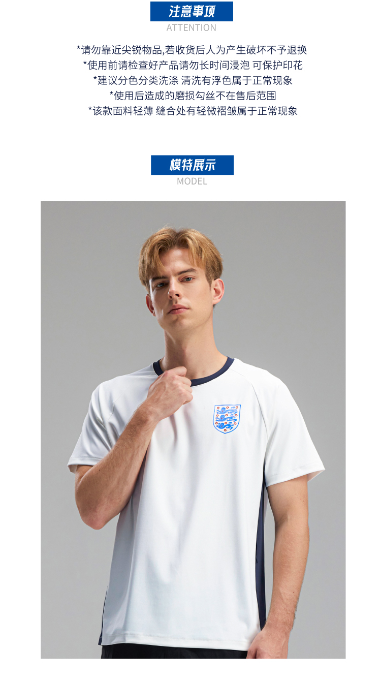 【官方正版】英格兰国家队 | 夏季白色速干T恤吸湿透气短袖男女款