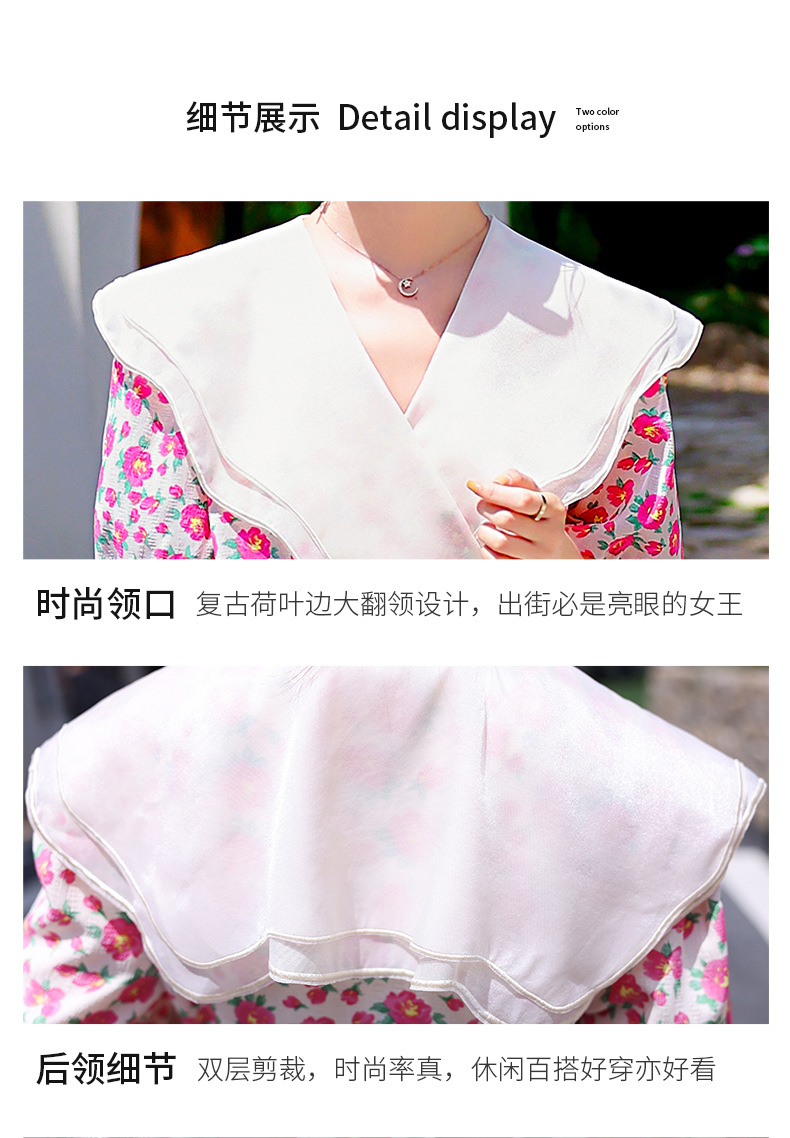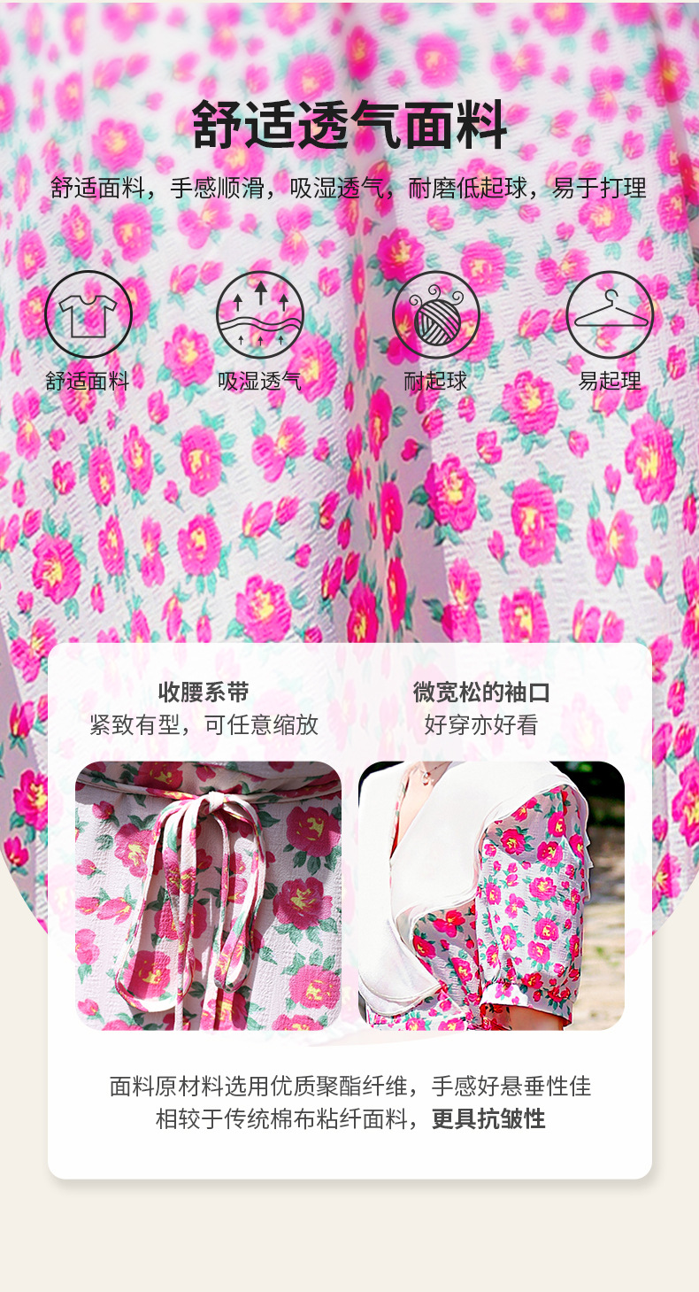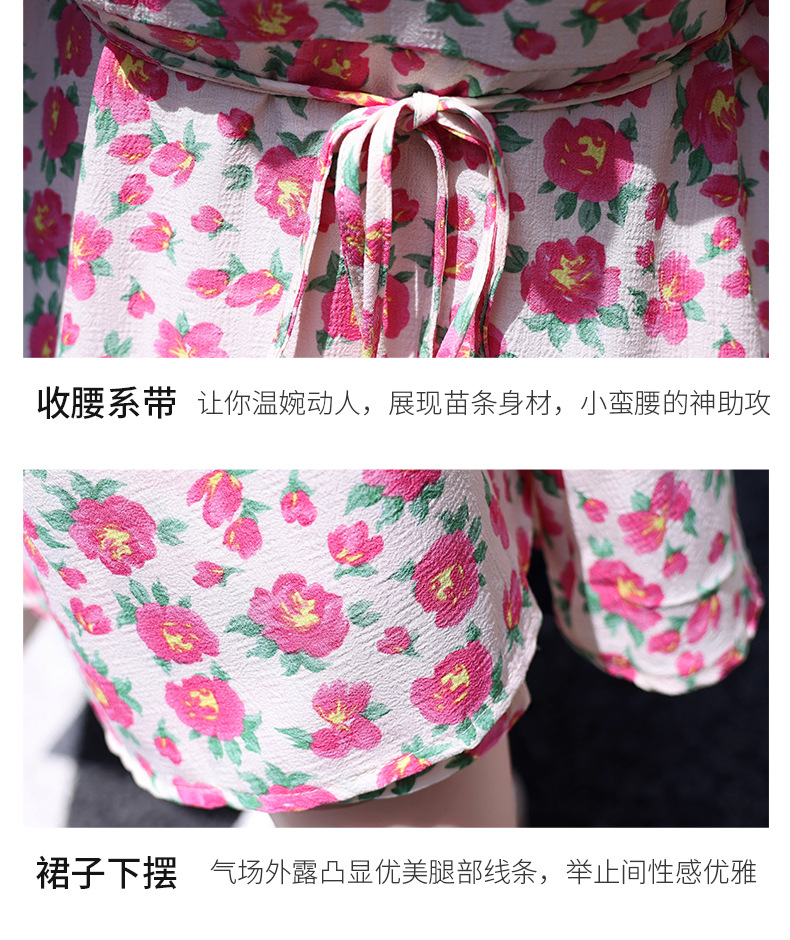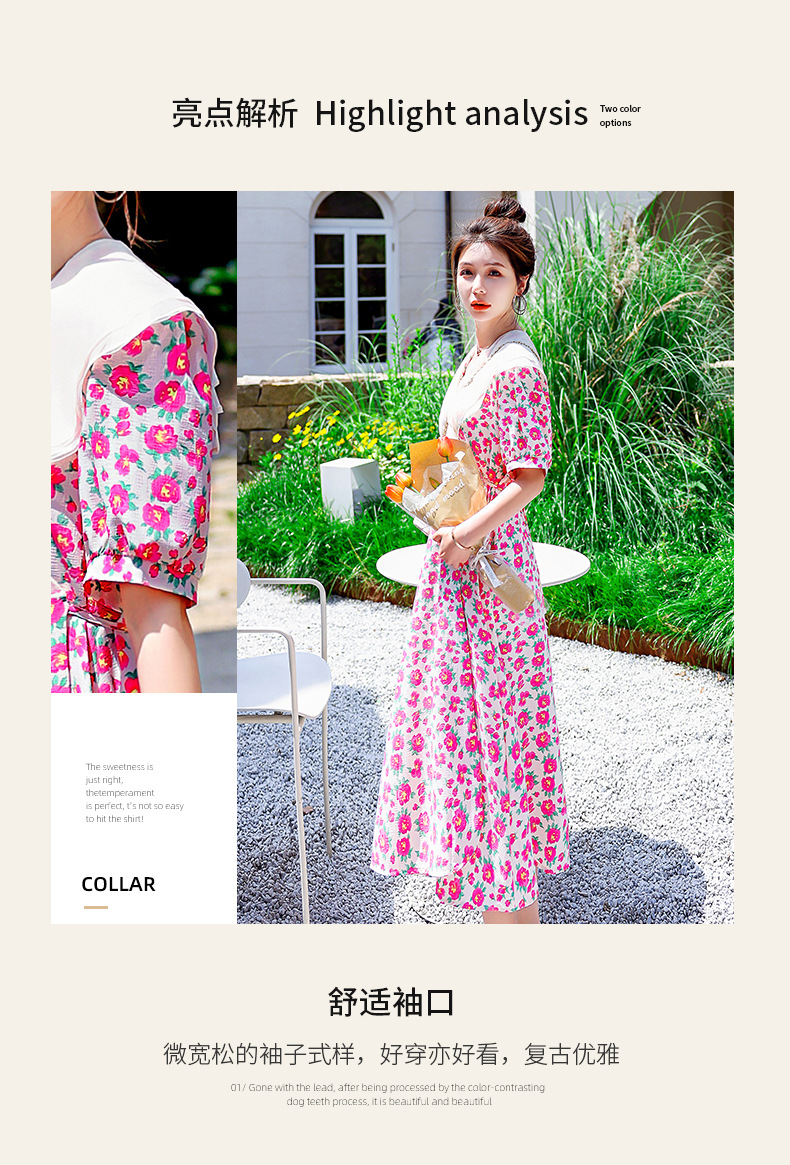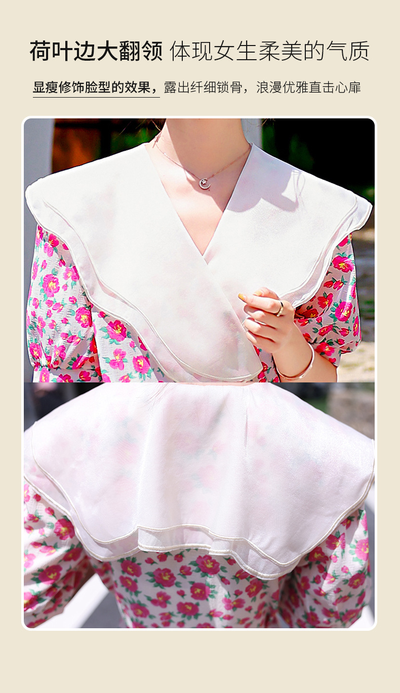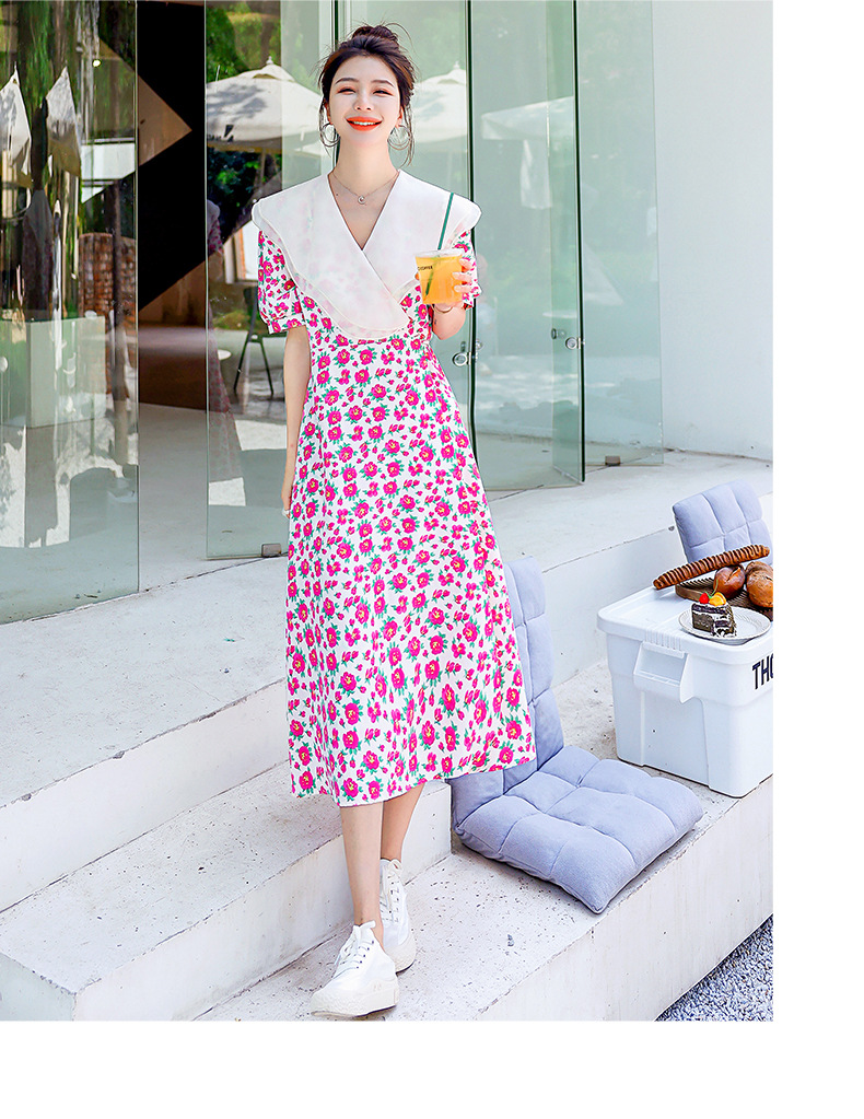 夏装花裙子女海军领短袖碎花系带中长显瘦连衣裙HR-WX95769