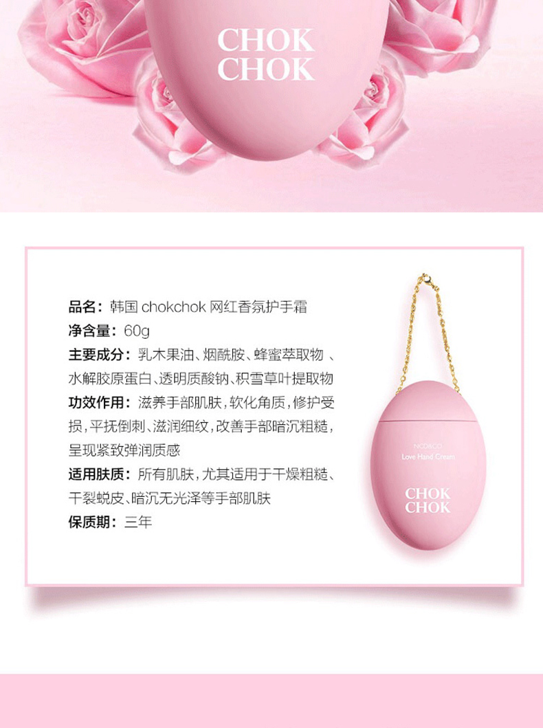 【现货】韩国chok chok网红香氛鹅卵石蛋蛋嫩白护手霜rain 滋润易携带挂链