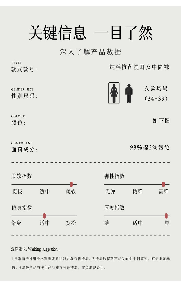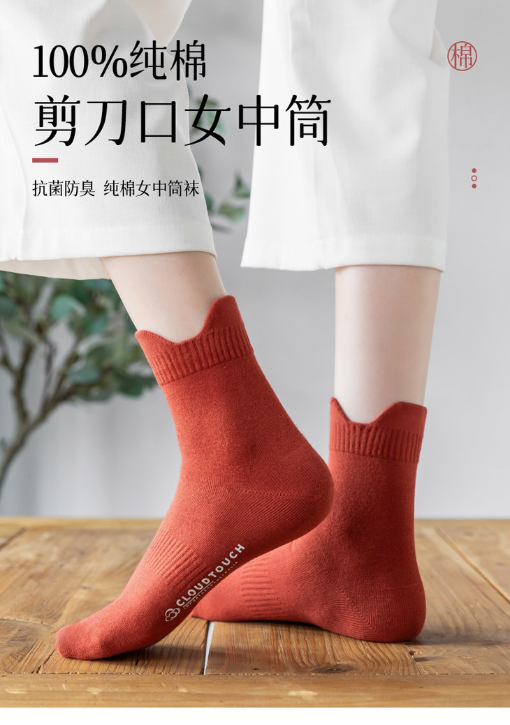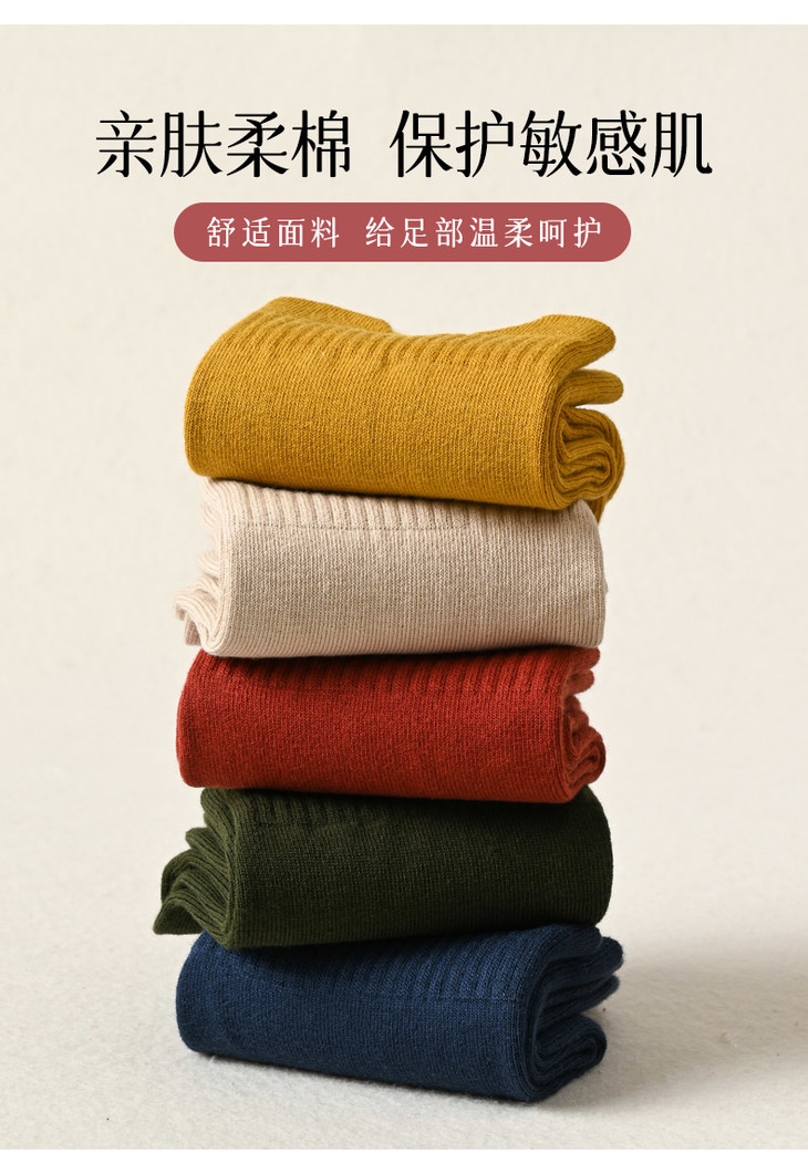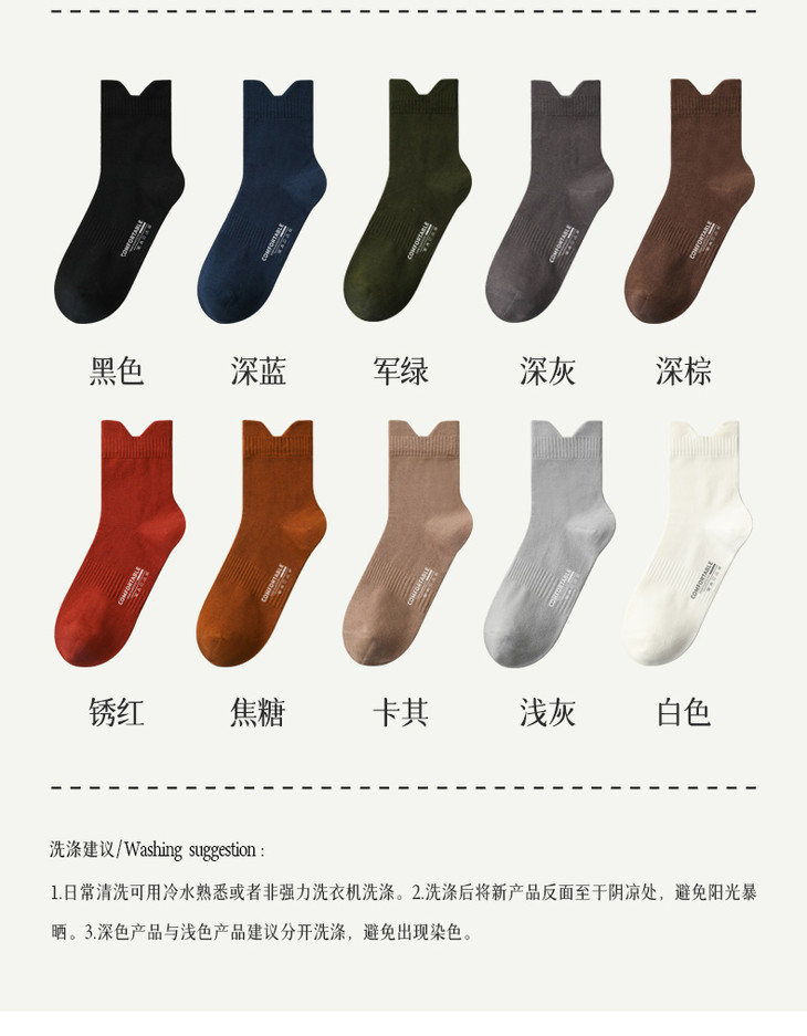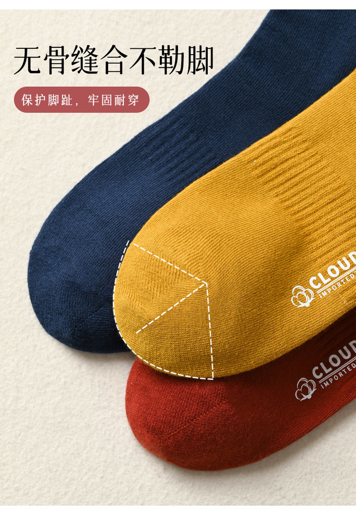 新疆长绒棉中筒袜防臭纯棉男女同款 情侣袜子 提耳设计 透气吸汗纯色袜子